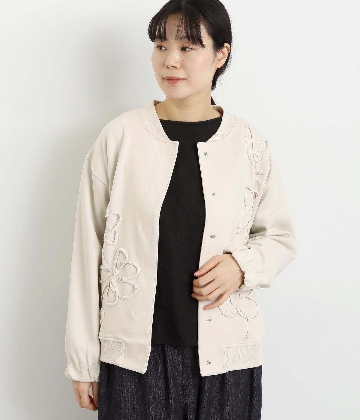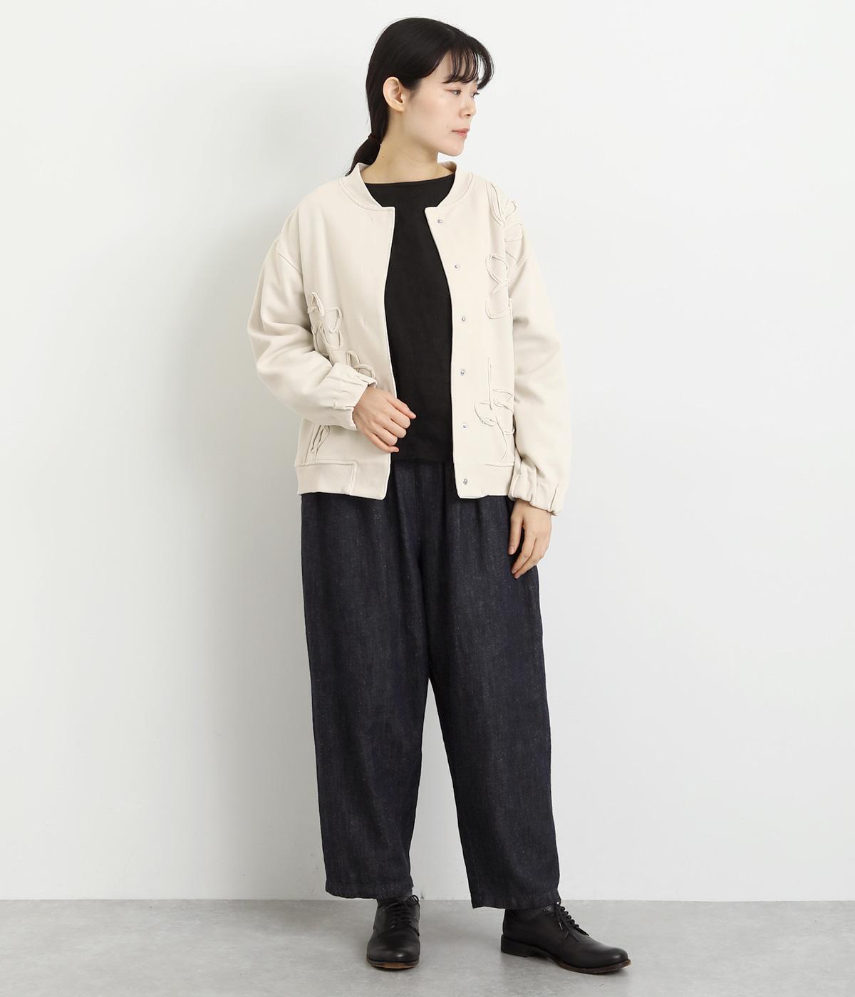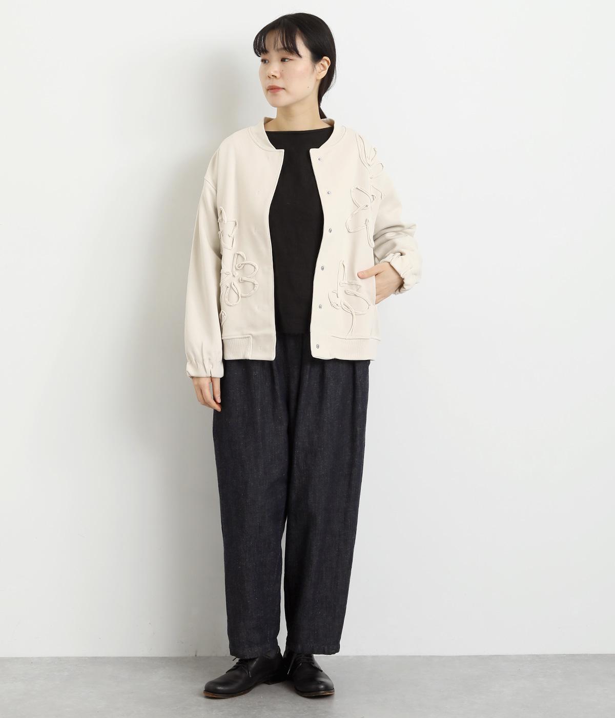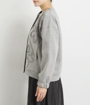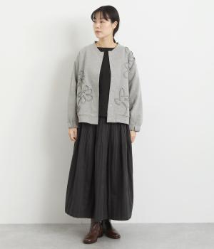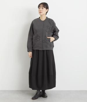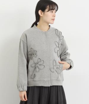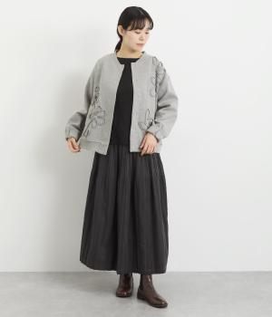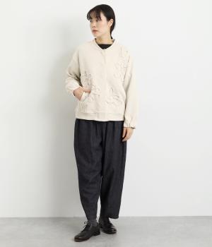 ブレード刺しゅうが目を惹く、ブルゾン感覚でカジュアルにもきれいめにも着られるカーディガン。スナップボタン仕様で前を閉めたときにすっきりと品良くまとまります。袖口ゴム入りで手仕事時のたくし上げもイージー。