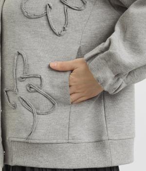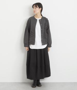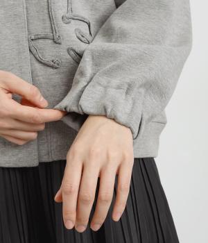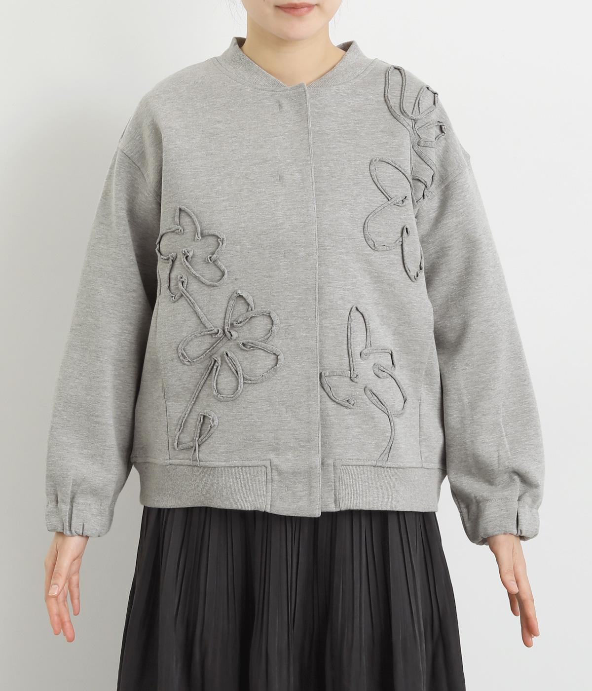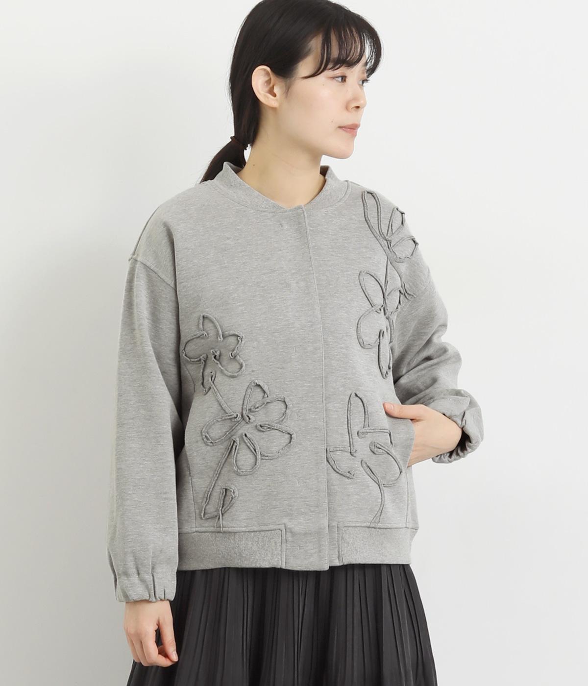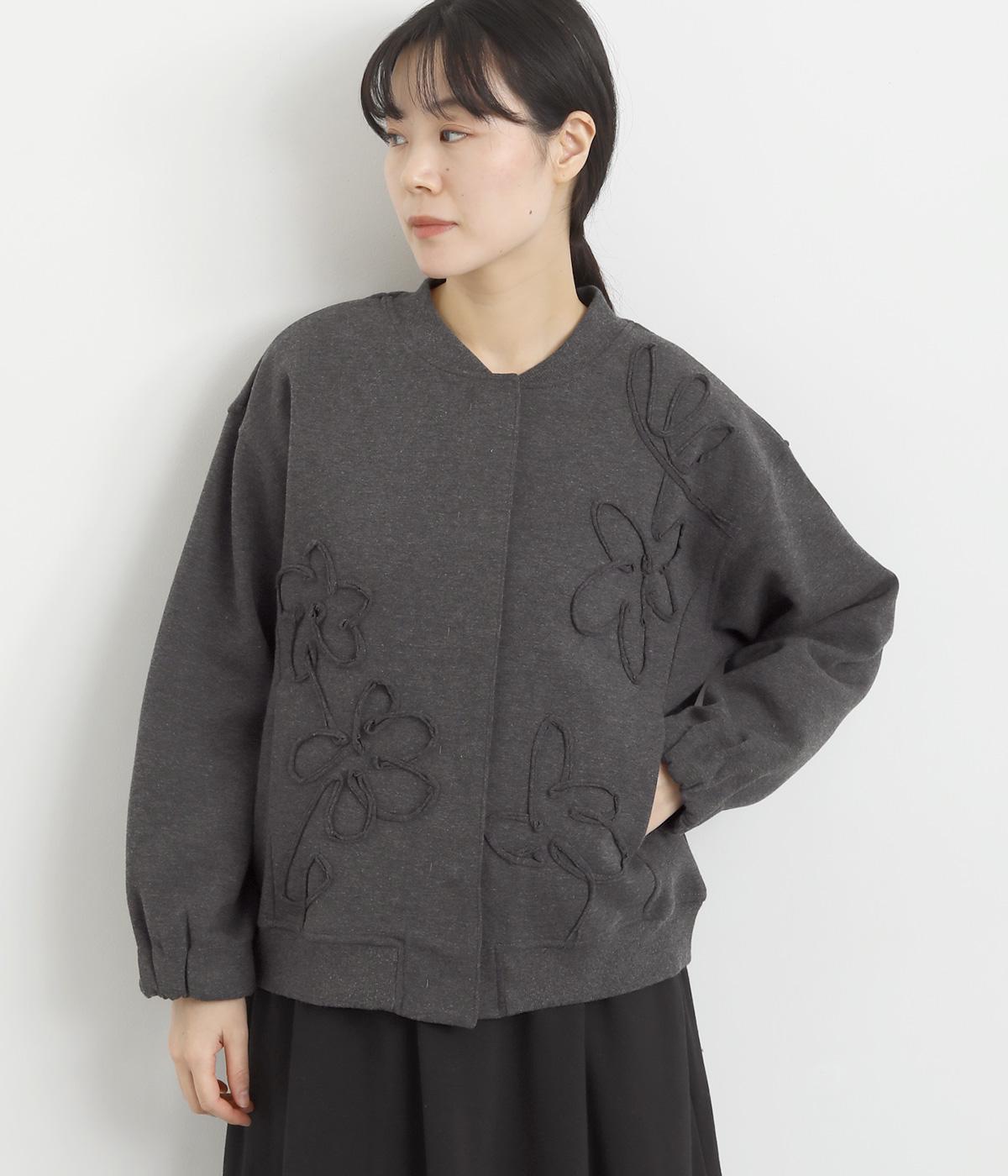 ブレード刺しゅうが目を惹く、ブルゾン感覚でカジュアルにもきれいめにも着られるカーディガン。スナップボタン仕様で前を閉めたときにすっきりと品良くまとまります。袖口ゴム入りで手仕事時のたくし上げもイージー。