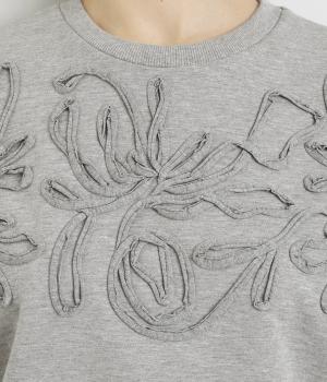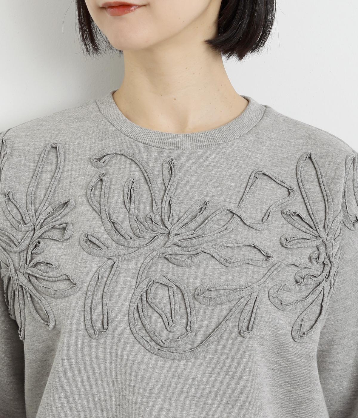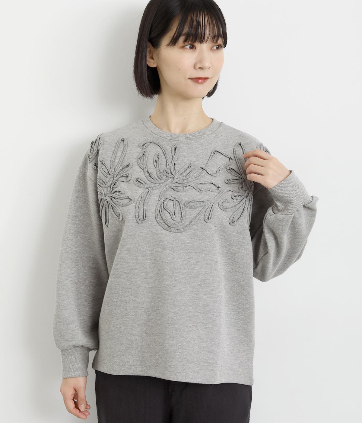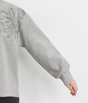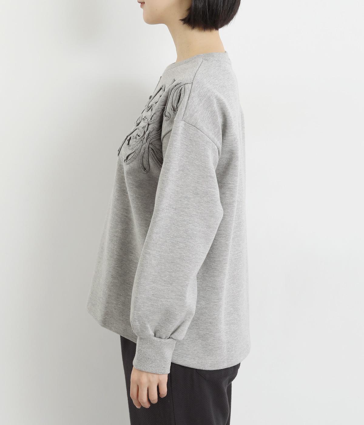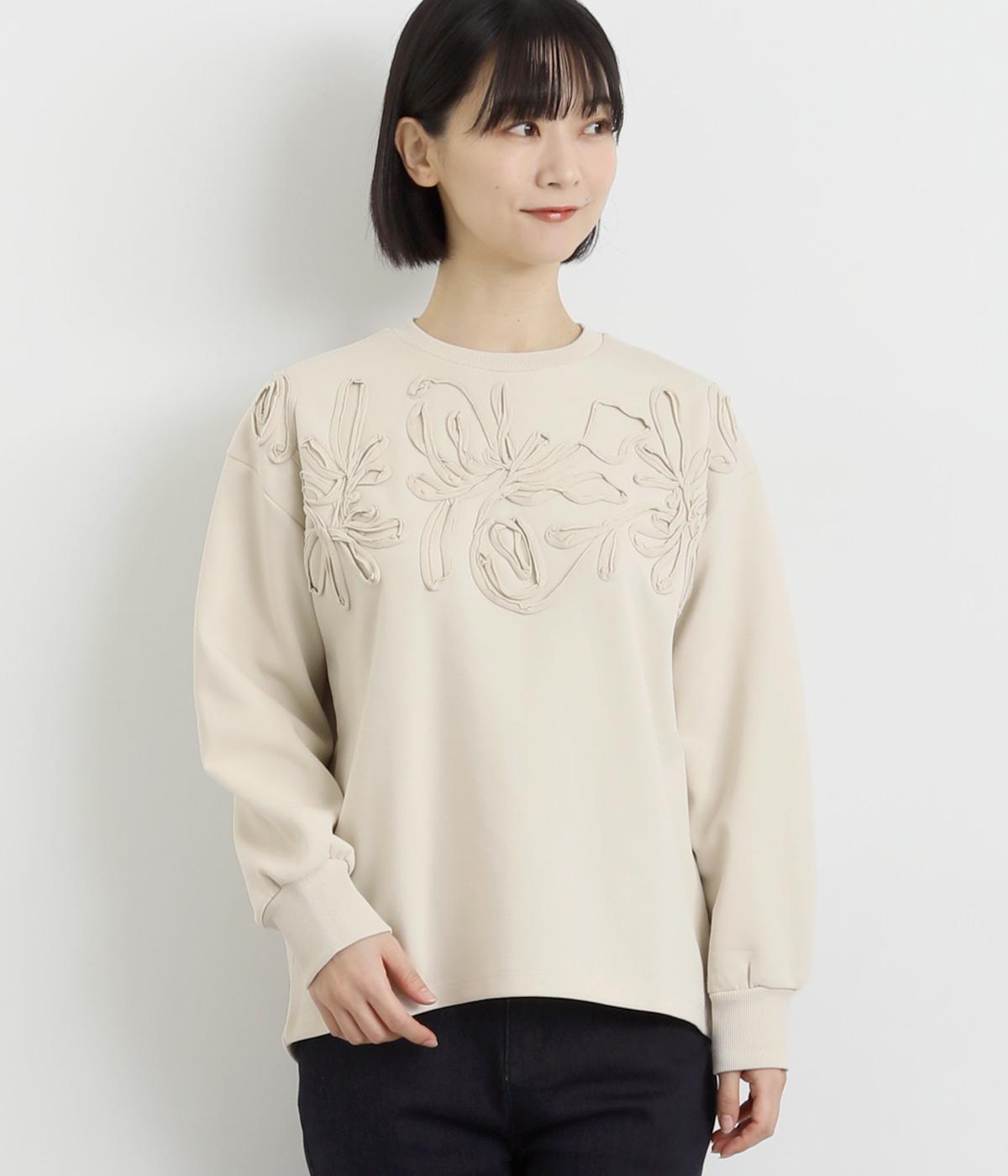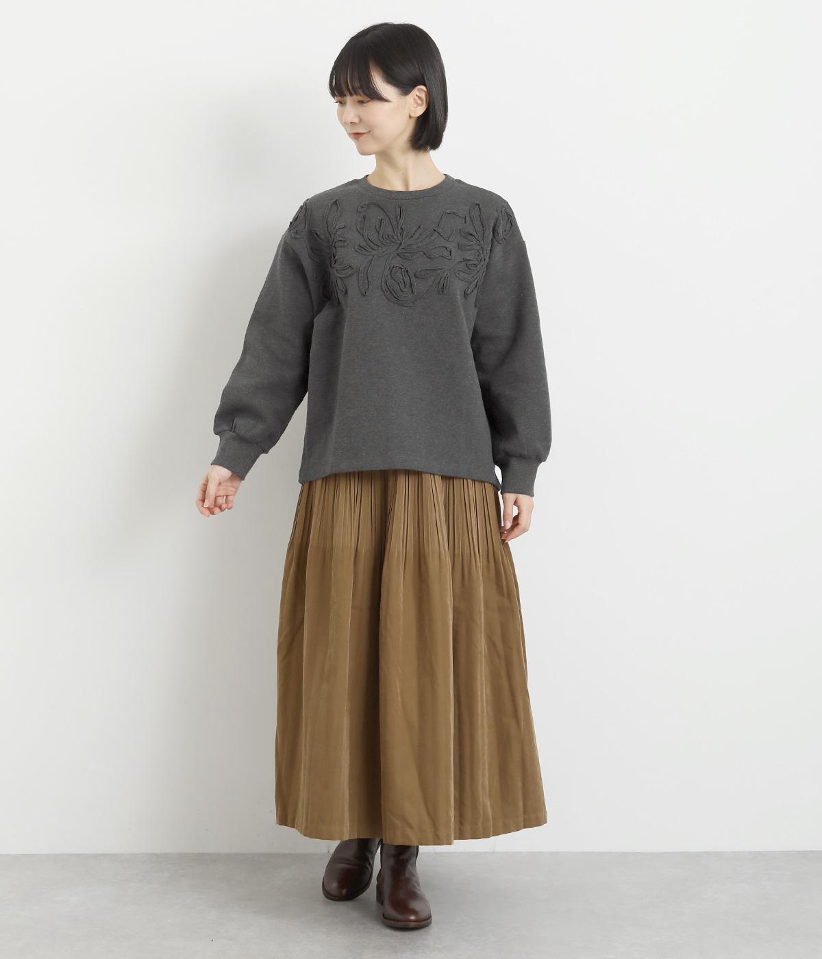 胸元にほどこされたブレード刺しゅうがさり気なく華やかさを添えるプルオーバー。長めのリブで袖口に適度なふくらみを持たせてやわらかなシルエットに。品のいいまとまりのある印象で、柄ボトムとも好相性です。