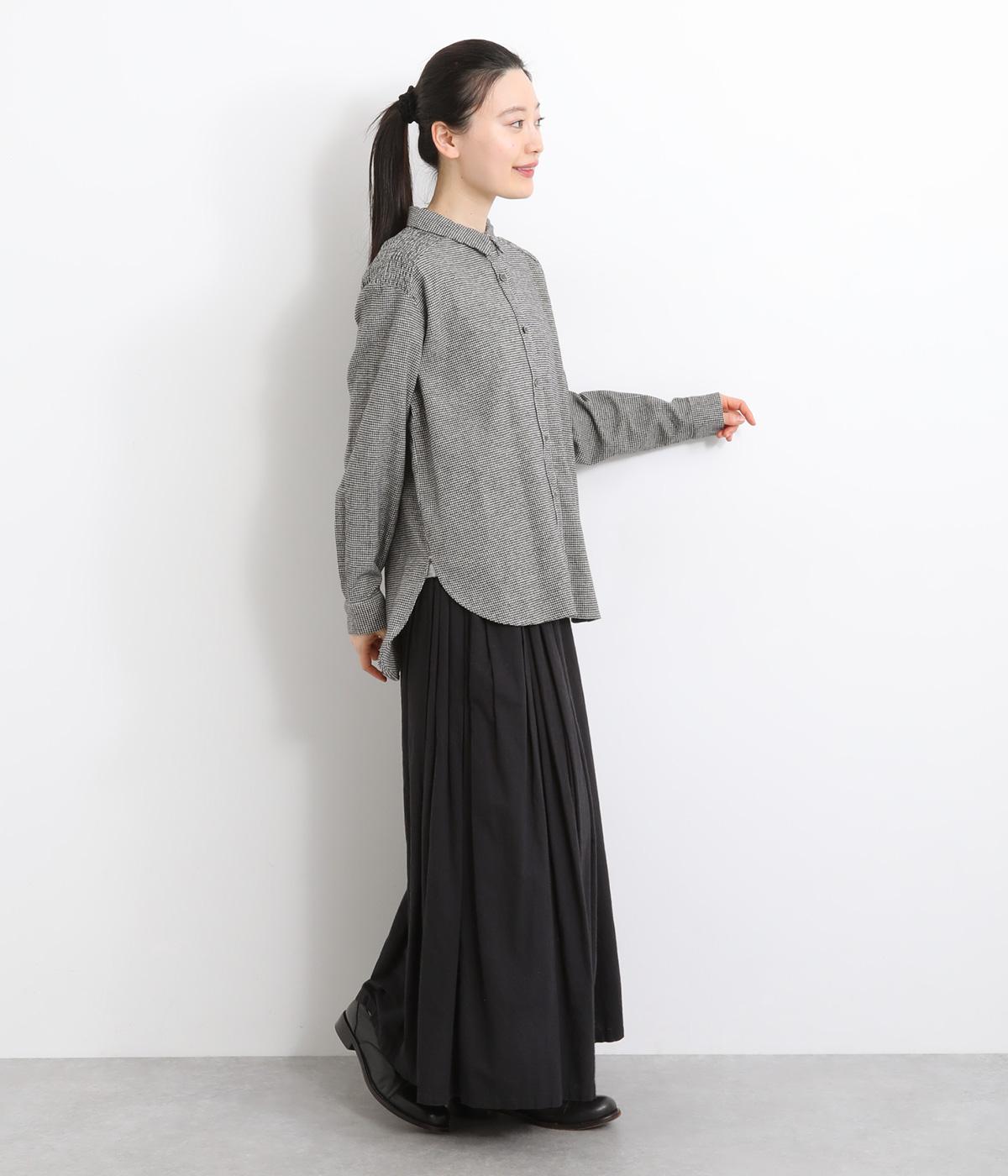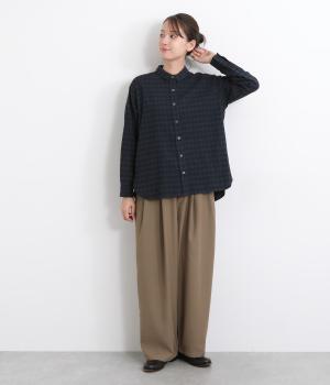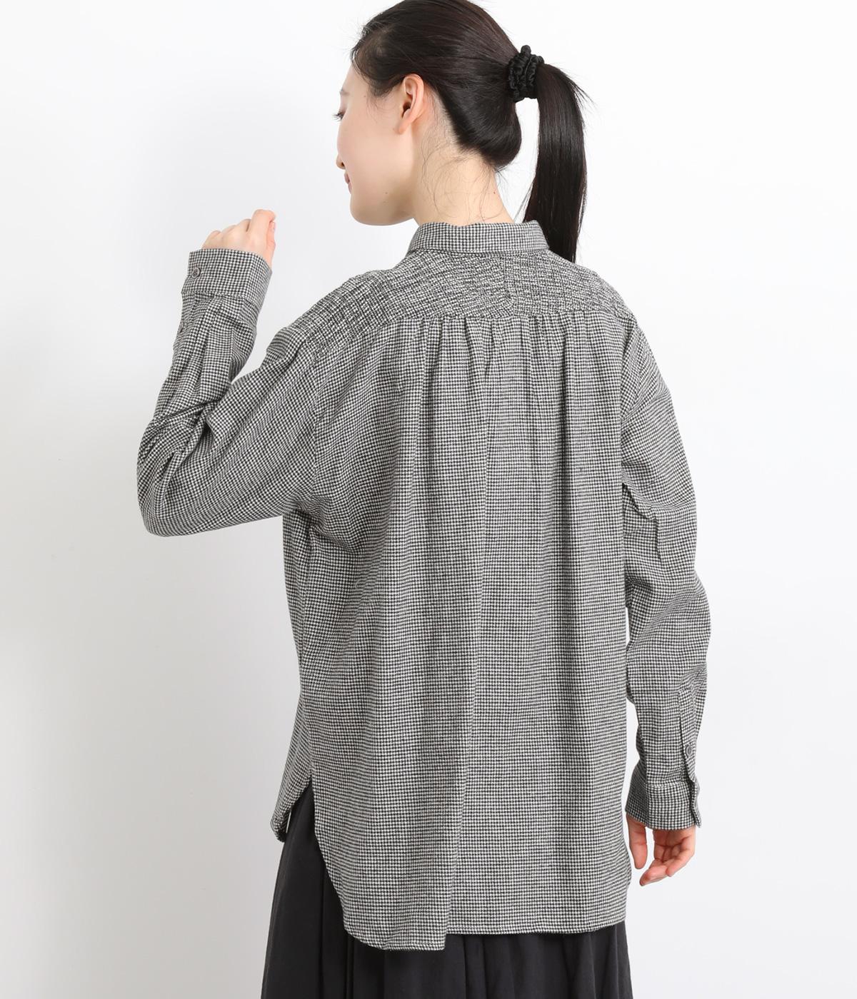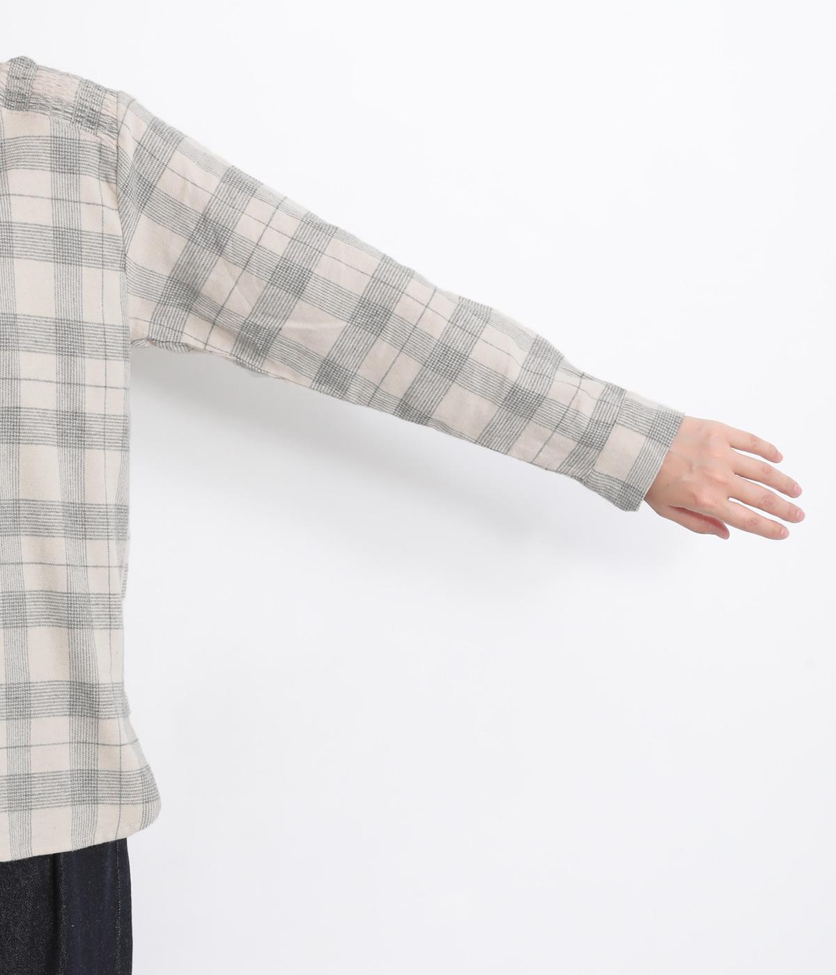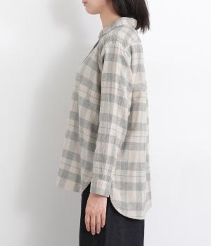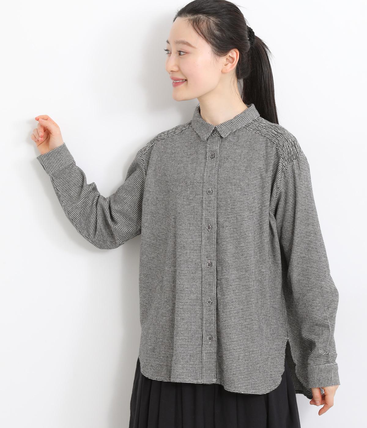 肩から後ろにかけたヨーク部分のシャーリングが特徴的な一枚。カジュアルスタイルの定番チェック柄も、いつもより表情豊かに見えます。ややゆとりのあるシルエットでリラックス感があり、季節の変わり目には羽織り使いもおすすめ。
