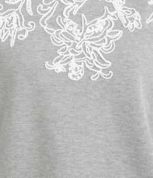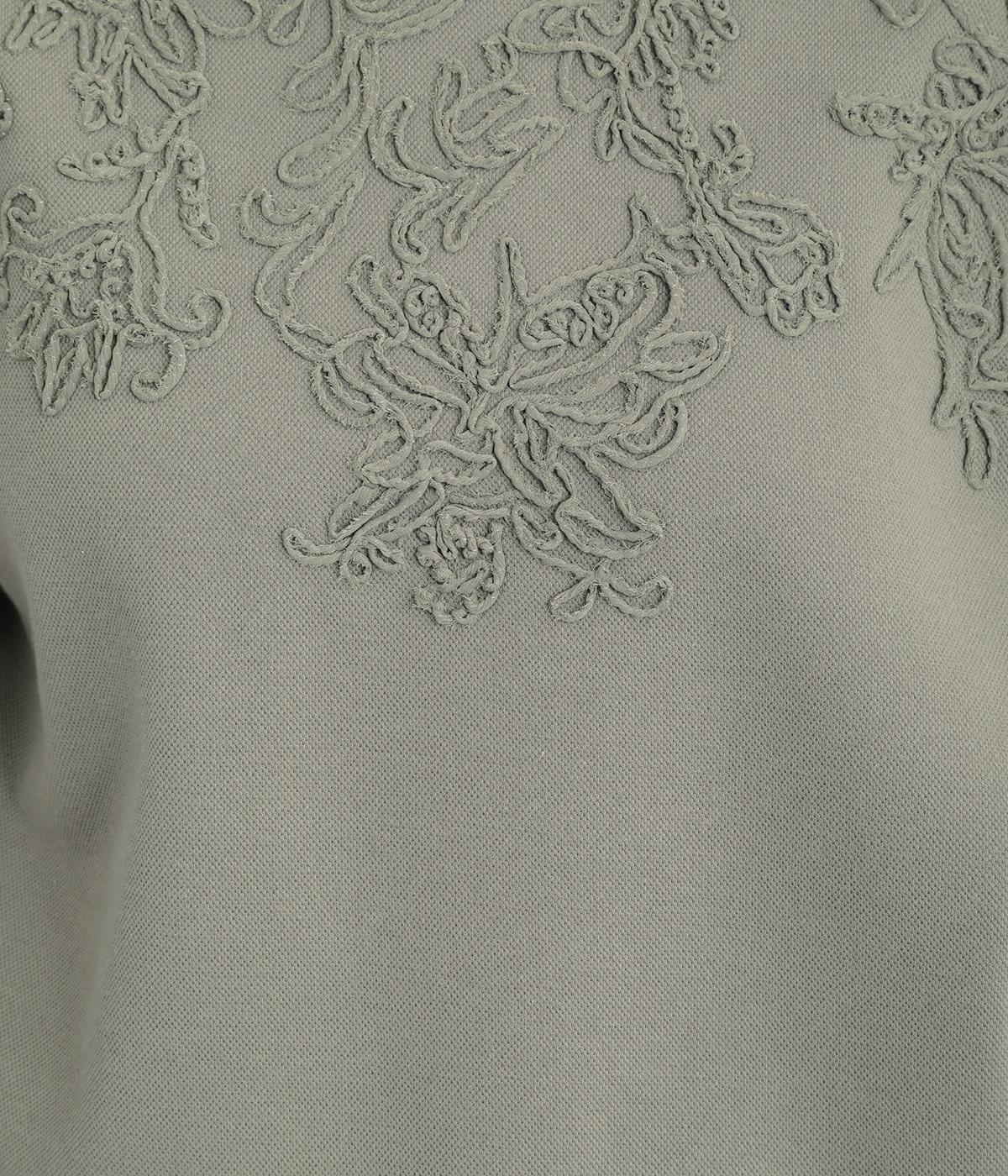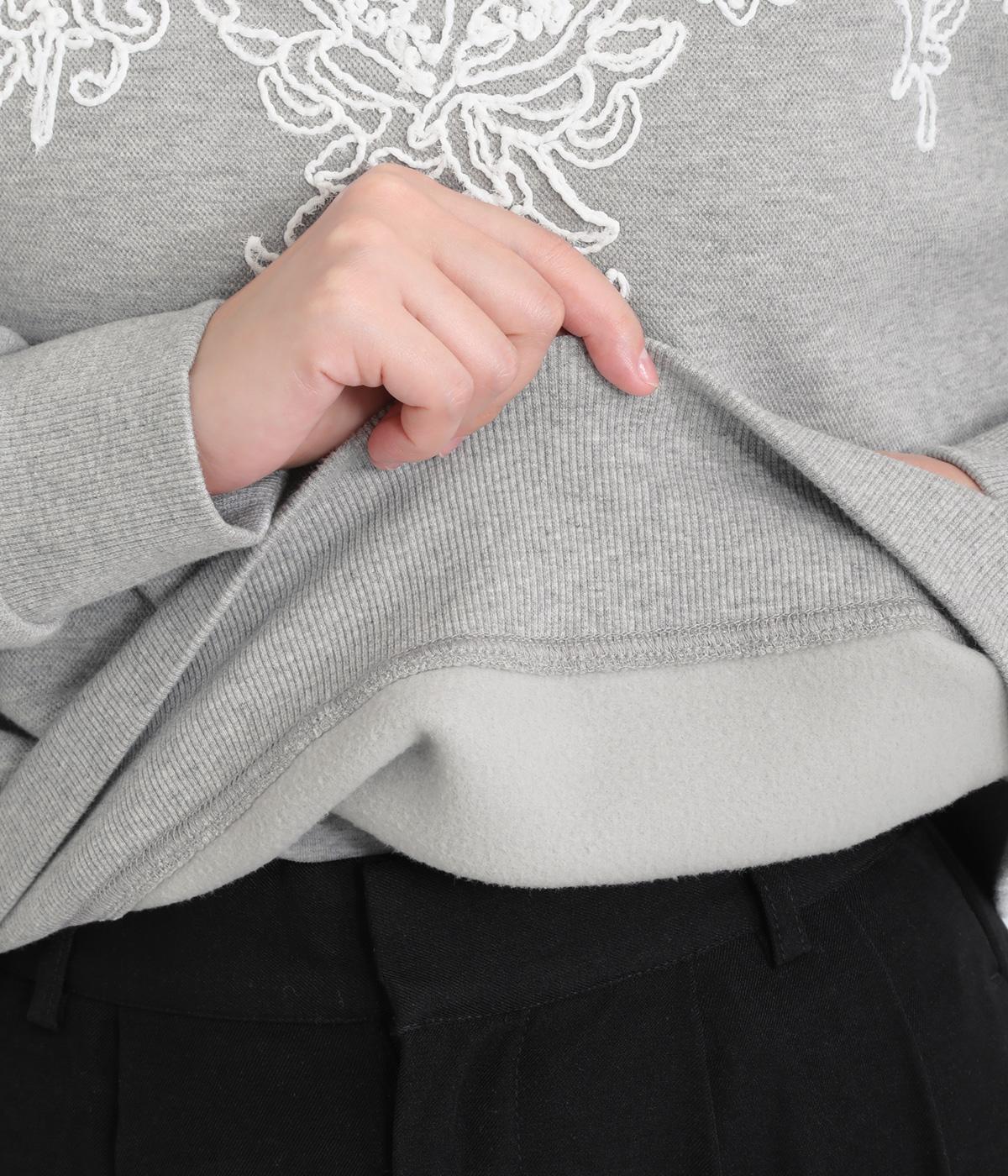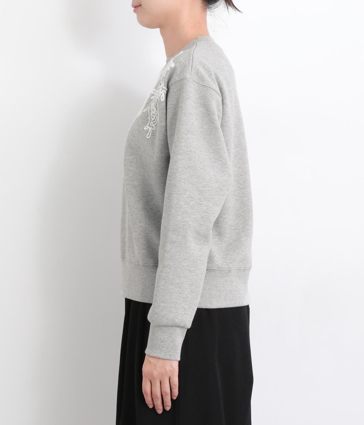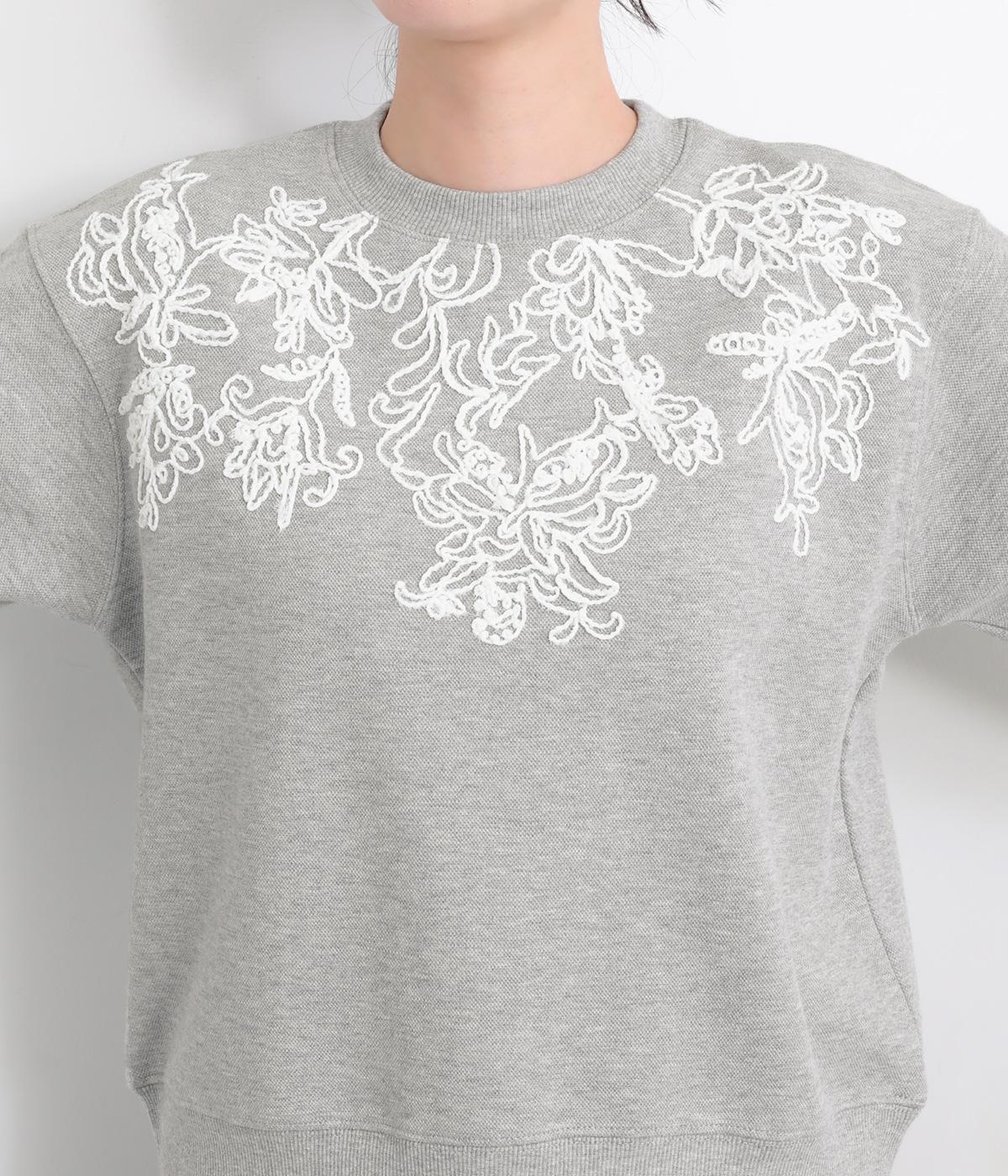 エンブロイダリー刺しゅうで顔まわりを華やかに魅せてプルオーバー。スウェット感覚でカジュアルに着やすく、手抜きに見えないお洒落感も両立。ルーズ見えを回避したシルエットもポイントで、ラフだけどすっきりしたスタイリングに。