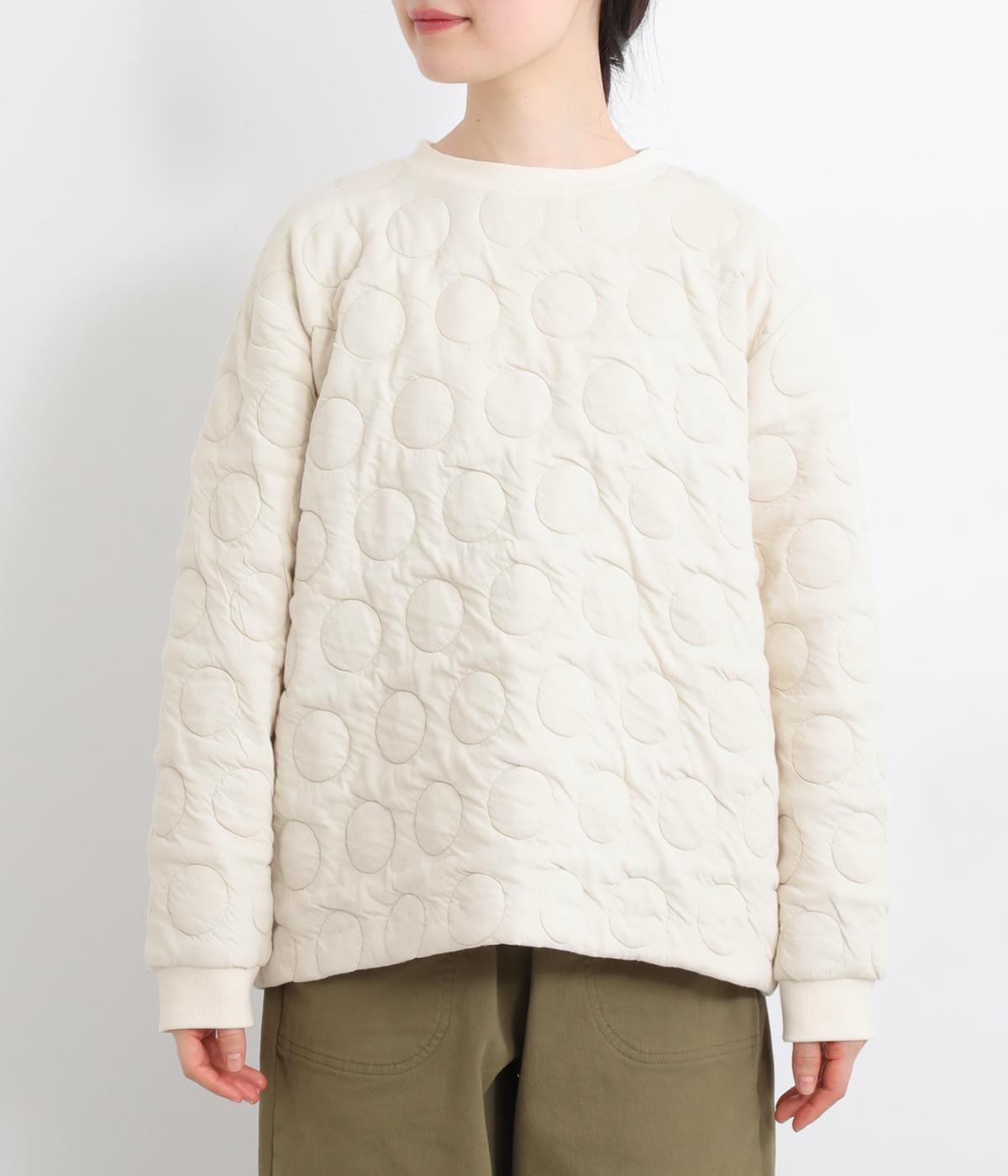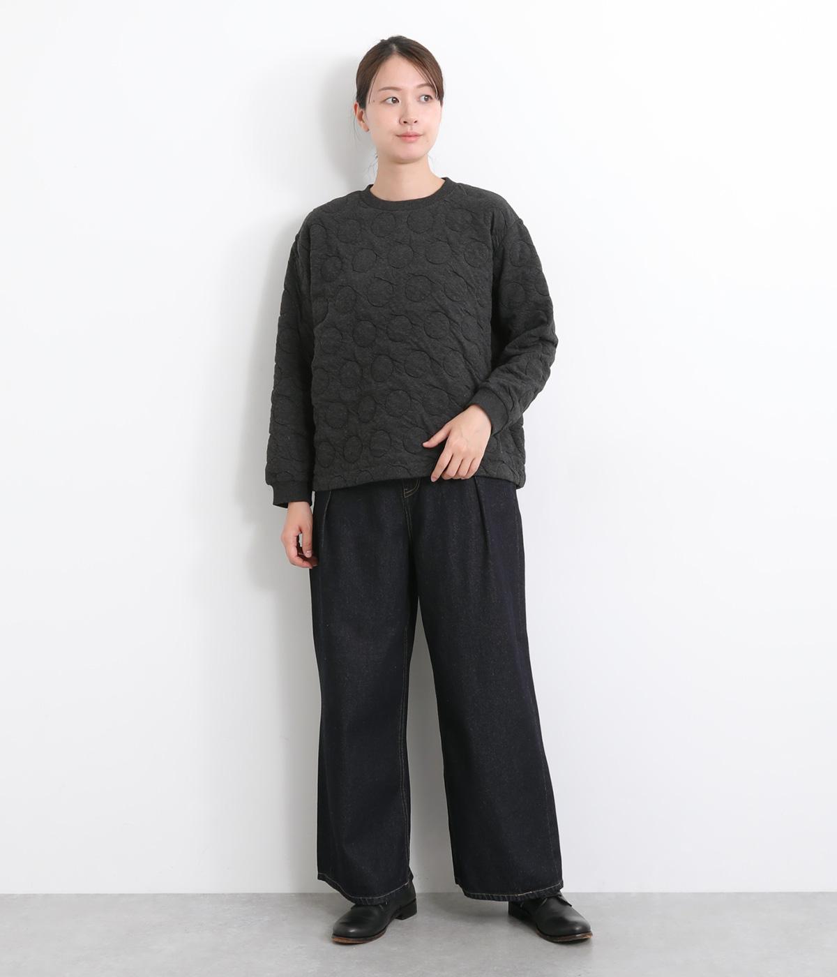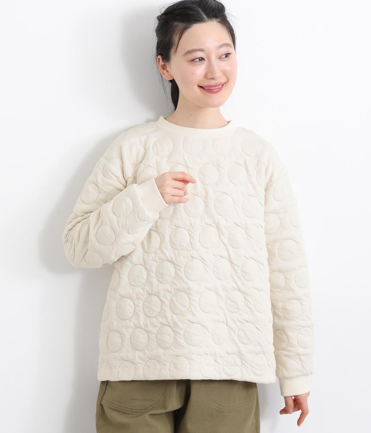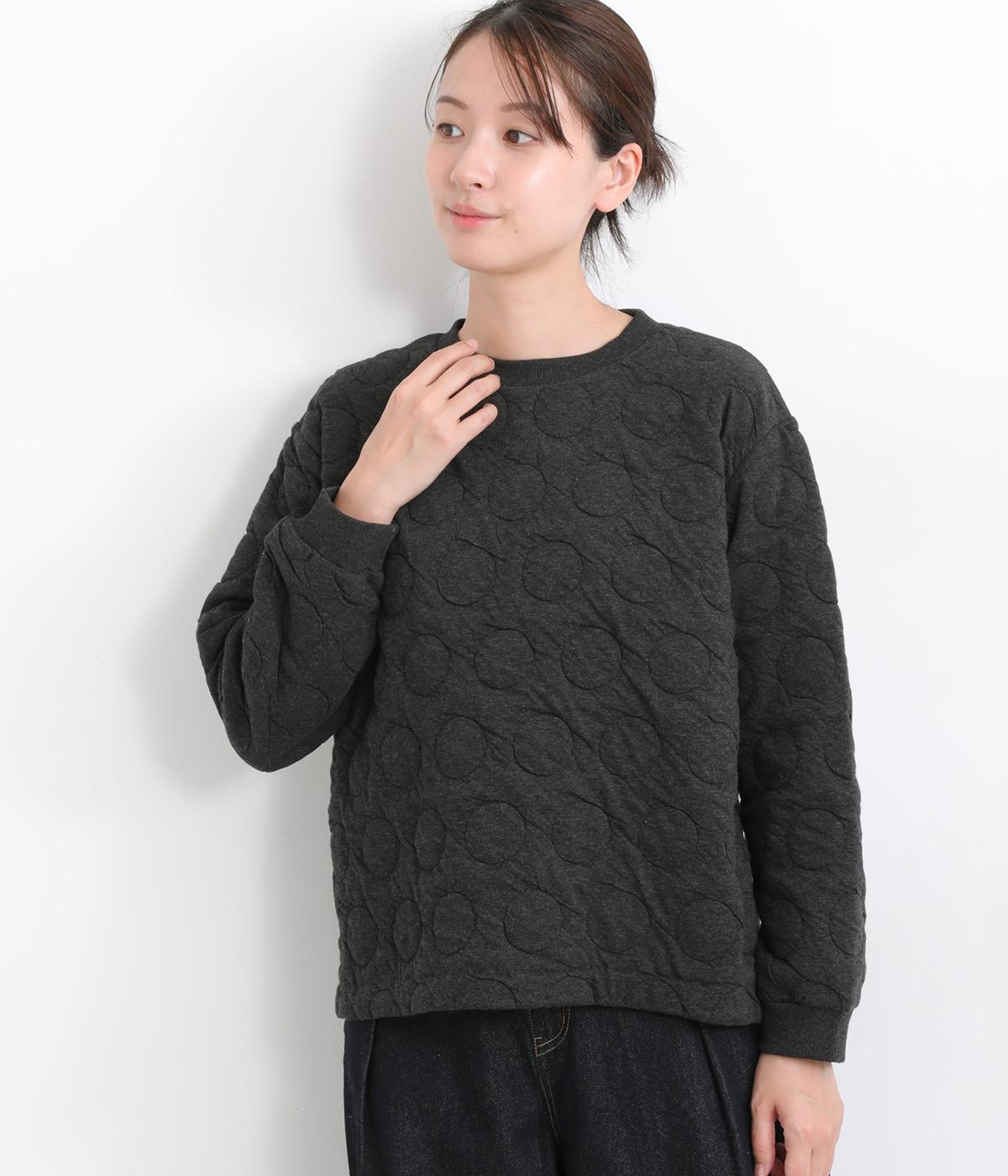ぽこぽこと立体感のあるドット柄がさり気なくもアイキャッチになるプルオーバー。リブ使いでカジュアルにまとめながらもどこかやさしい雰囲気がひろがります。ベーシックなシルエットでデイリースタイルに取り入れやすい一枚。