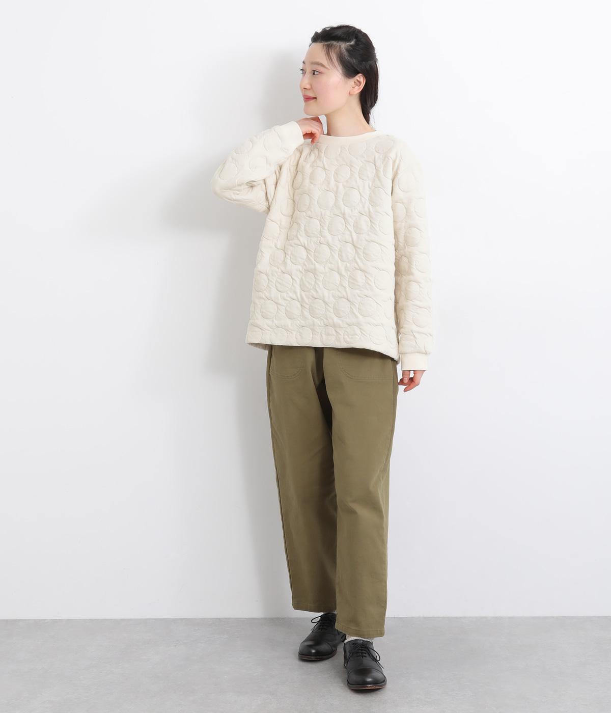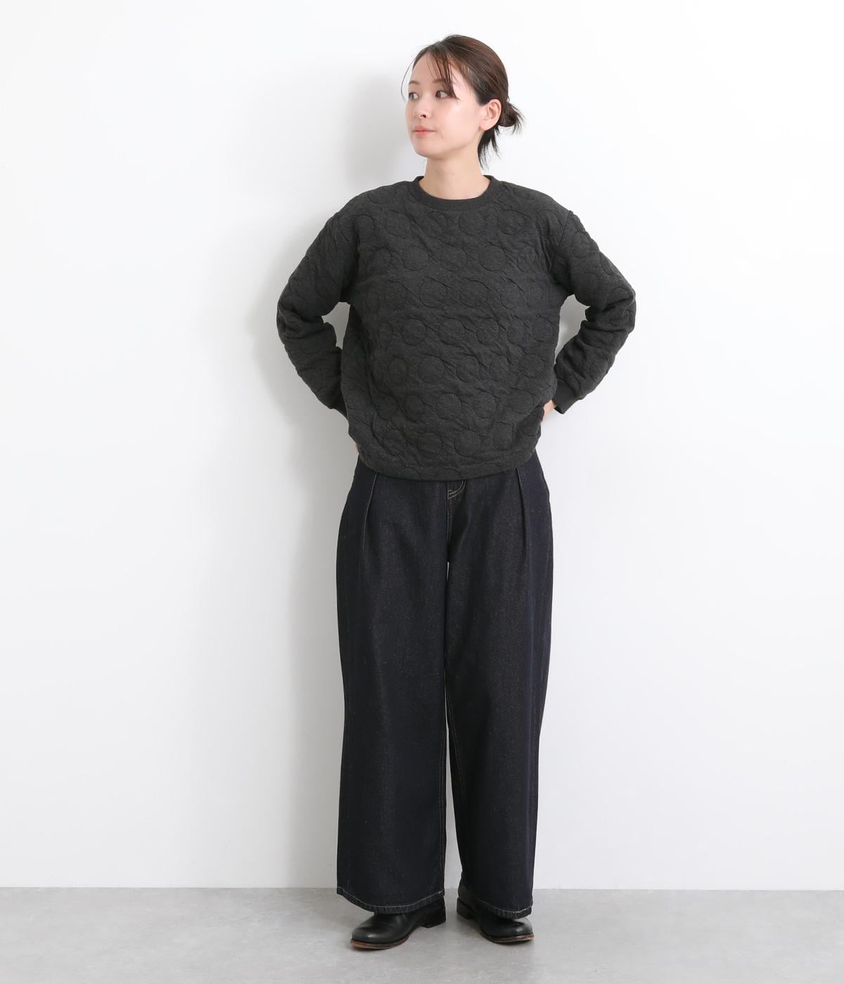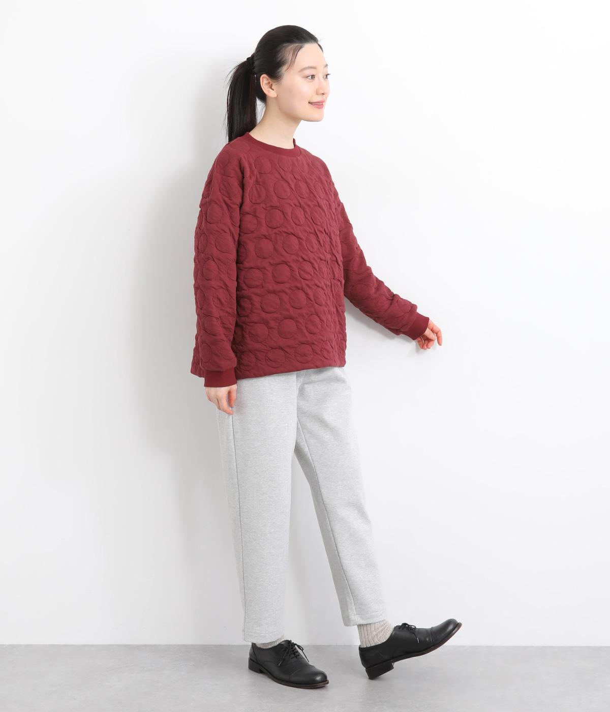 ぽこぽこと立体感のあるドット柄がさり気なくもアイキャッチになるプルオーバー。リブ使いでカジュアルにまとめながらもどこかやさしい雰囲気がひろがります。ベーシックなシルエットでデイリースタイルに取り入れやすい一枚。
