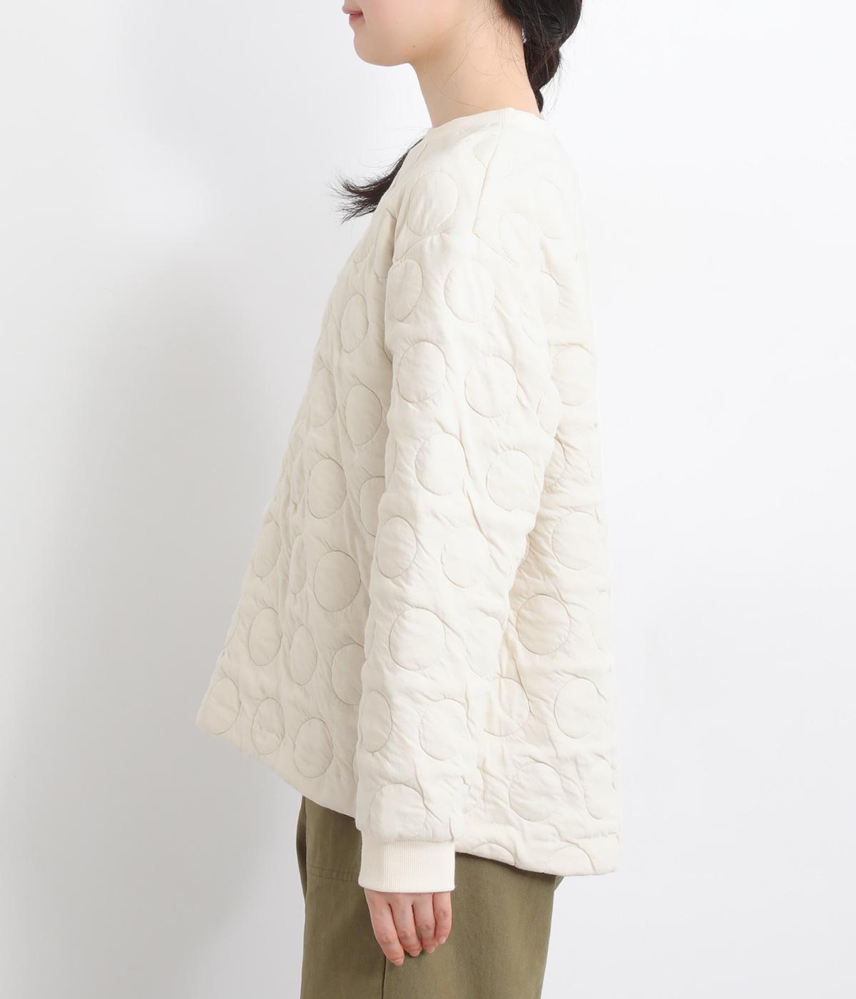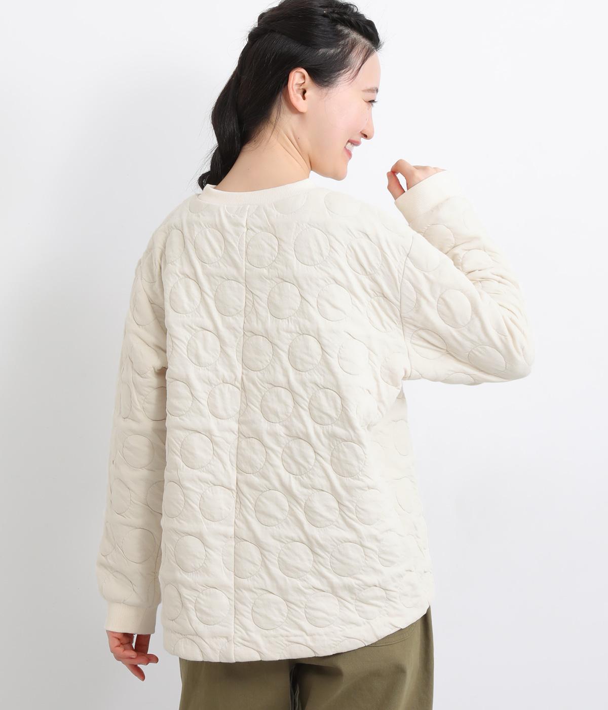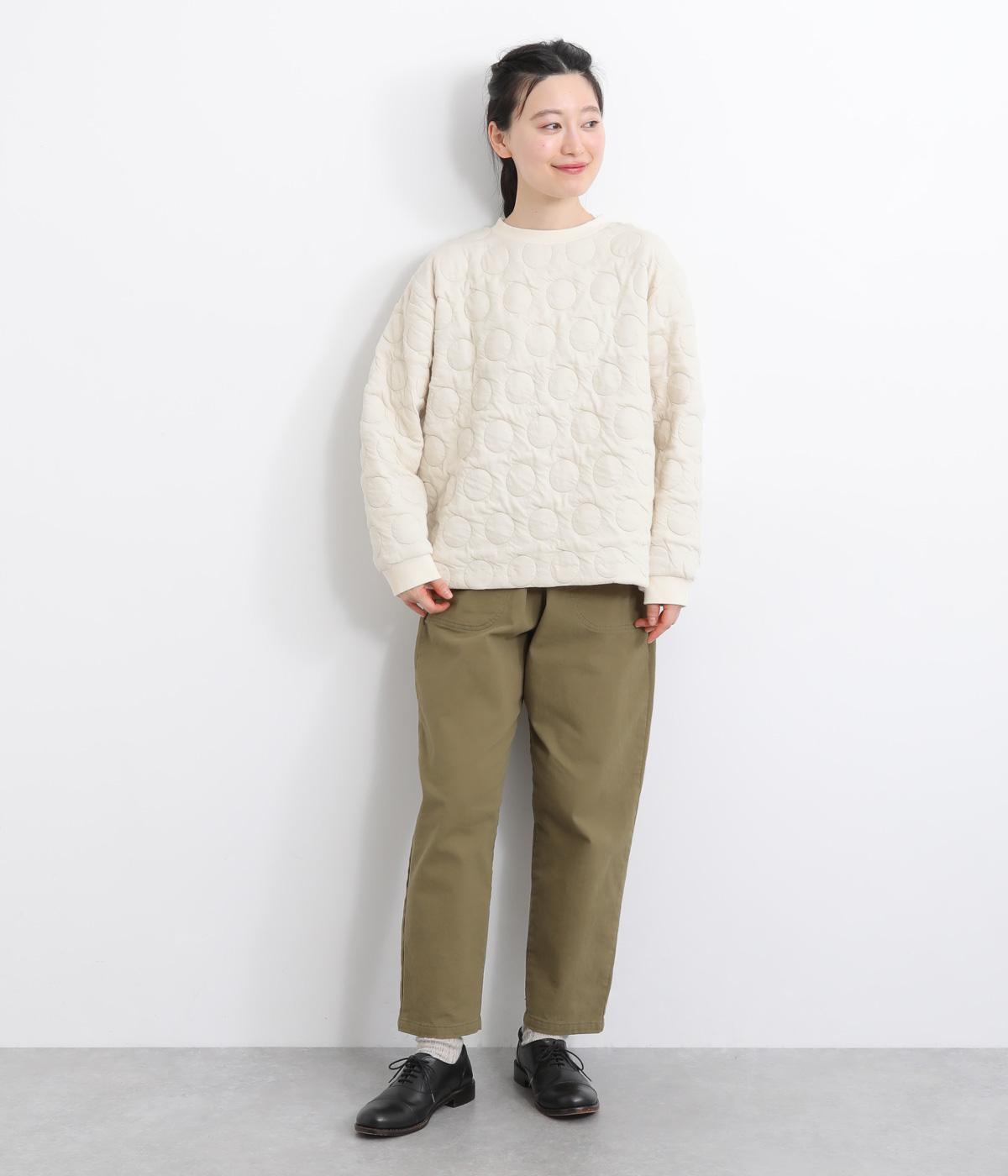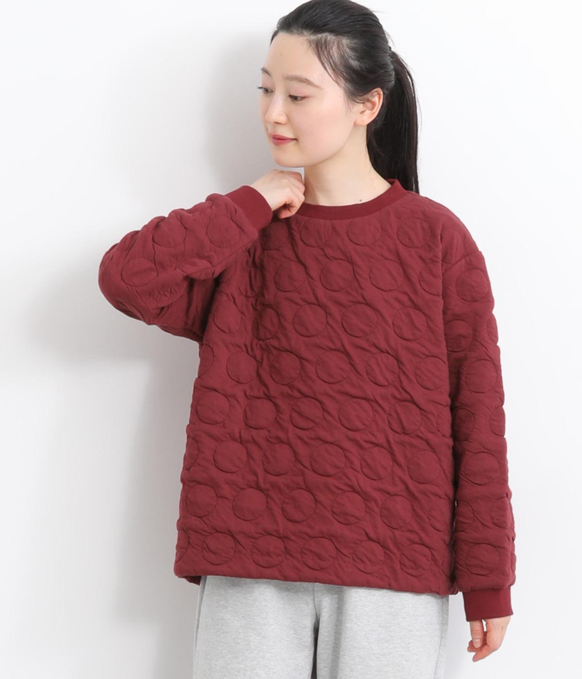 ぽこぽこと立体感のあるドット柄がさり気なくもアイキャッチになるプルオーバー。リブ使いでカジュアルにまとめながらもどこかやさしい雰囲気がひろがります。ベーシックなシルエットでデイリースタイルに取り入れやすい一枚。