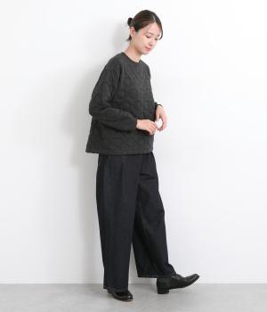 ほわっとしたふくらみが特徴的で、あたたかみとやさしい印象を与える混紡生地を使用。肌あたりもソフトで適度に肉感のある素材です。