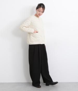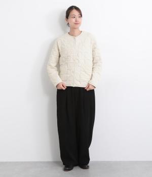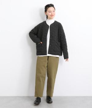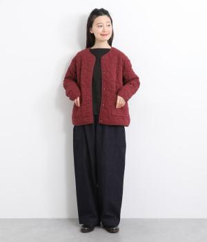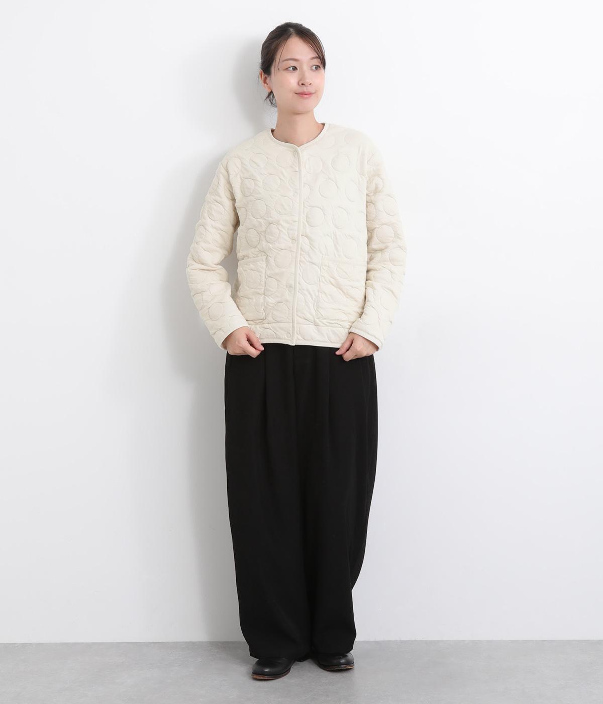 ほわっとしたふくらみが特徴的で、あたたかみとやさしい印象を与える混紡生地を使用。肌あたりもソフトで適度に肉感のある素材です。