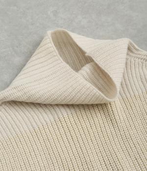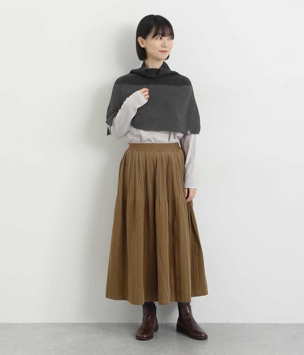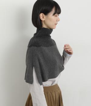 タートルネックが新鮮なスヌードです。肩まですっぽり覆うポンチョのようなデザインで、アウターはいらないけど肌寒い季節の変わり目にも活躍。オーバーニットなどの中に重ねれば、つけ襟のようなワンポイント使いにも。