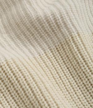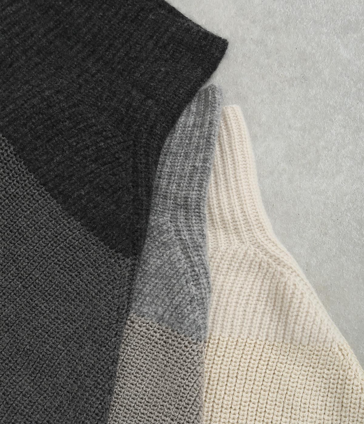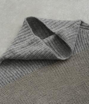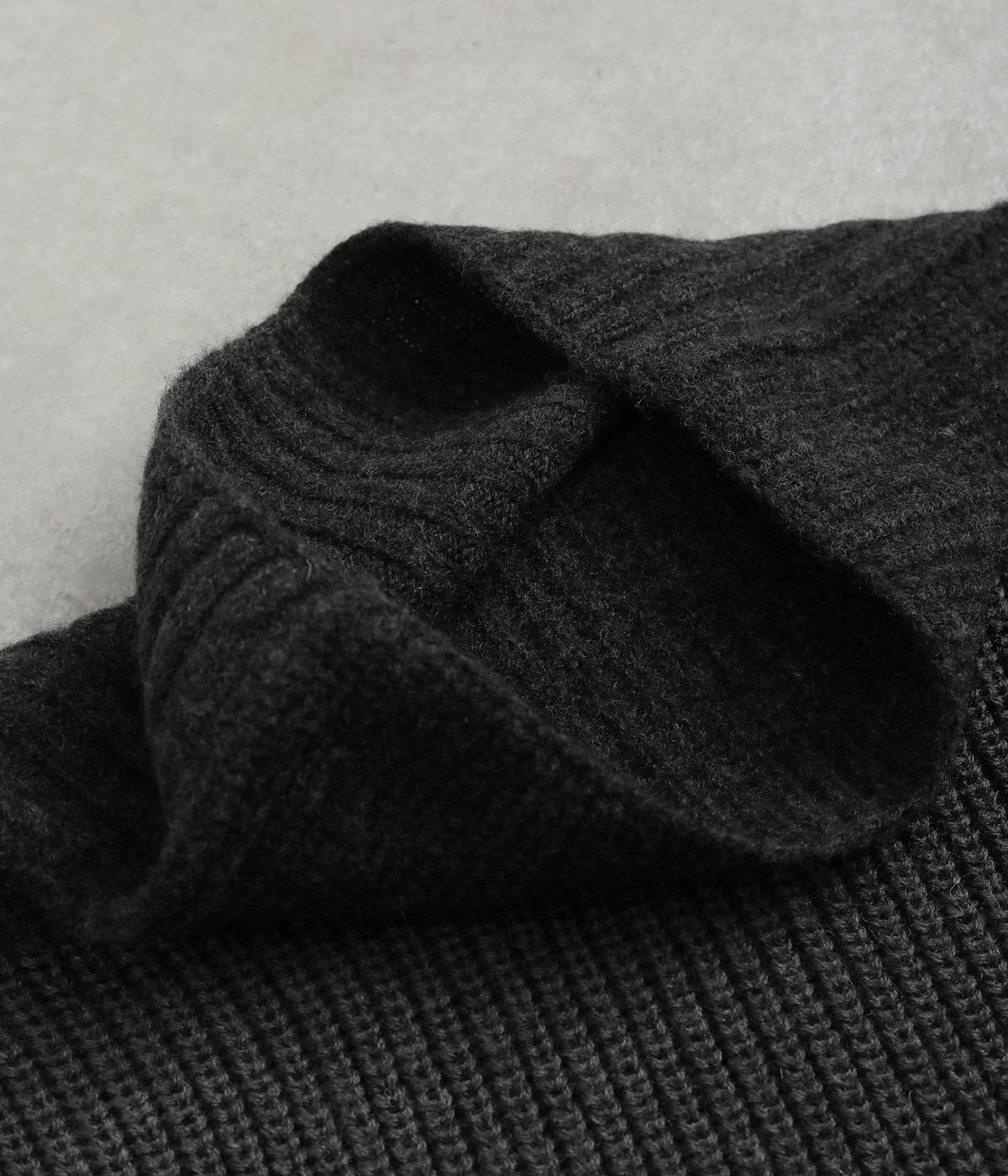 襟部分はウールとカシミヤ糸で編み上げた最高品質のニットを使用し、あたたかくやわらかな肌触りに。身頃部分はポリエステルなどをベースに軽やかに編み上げました。