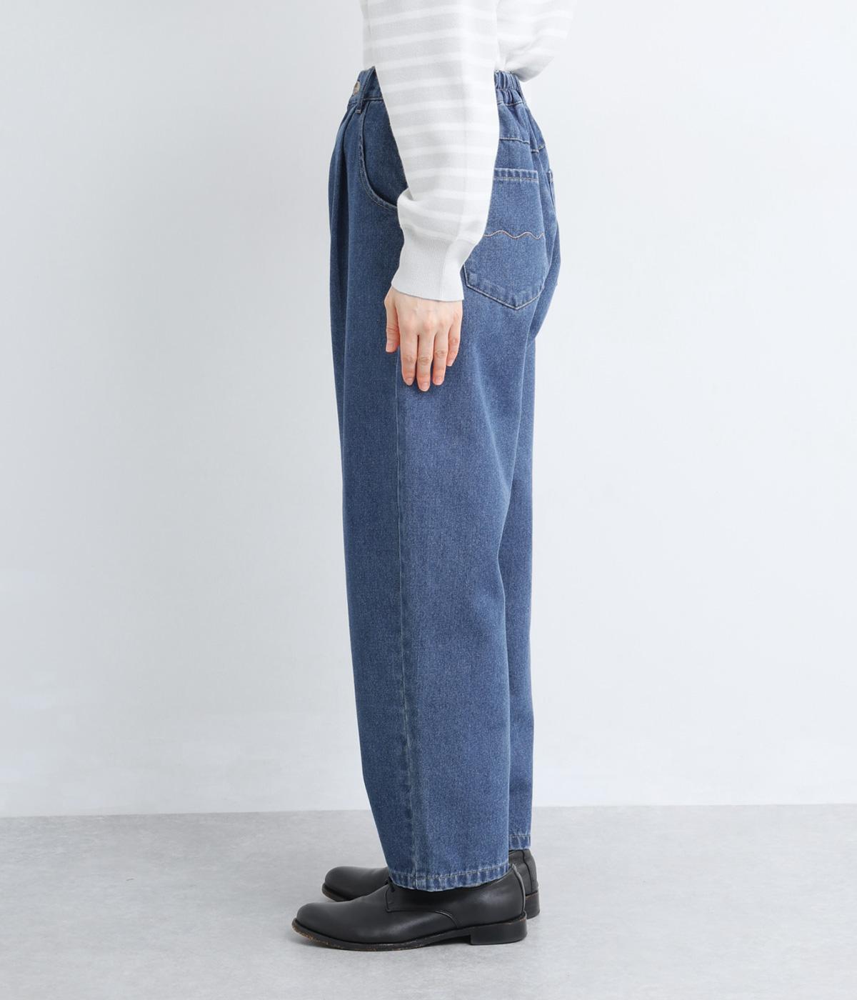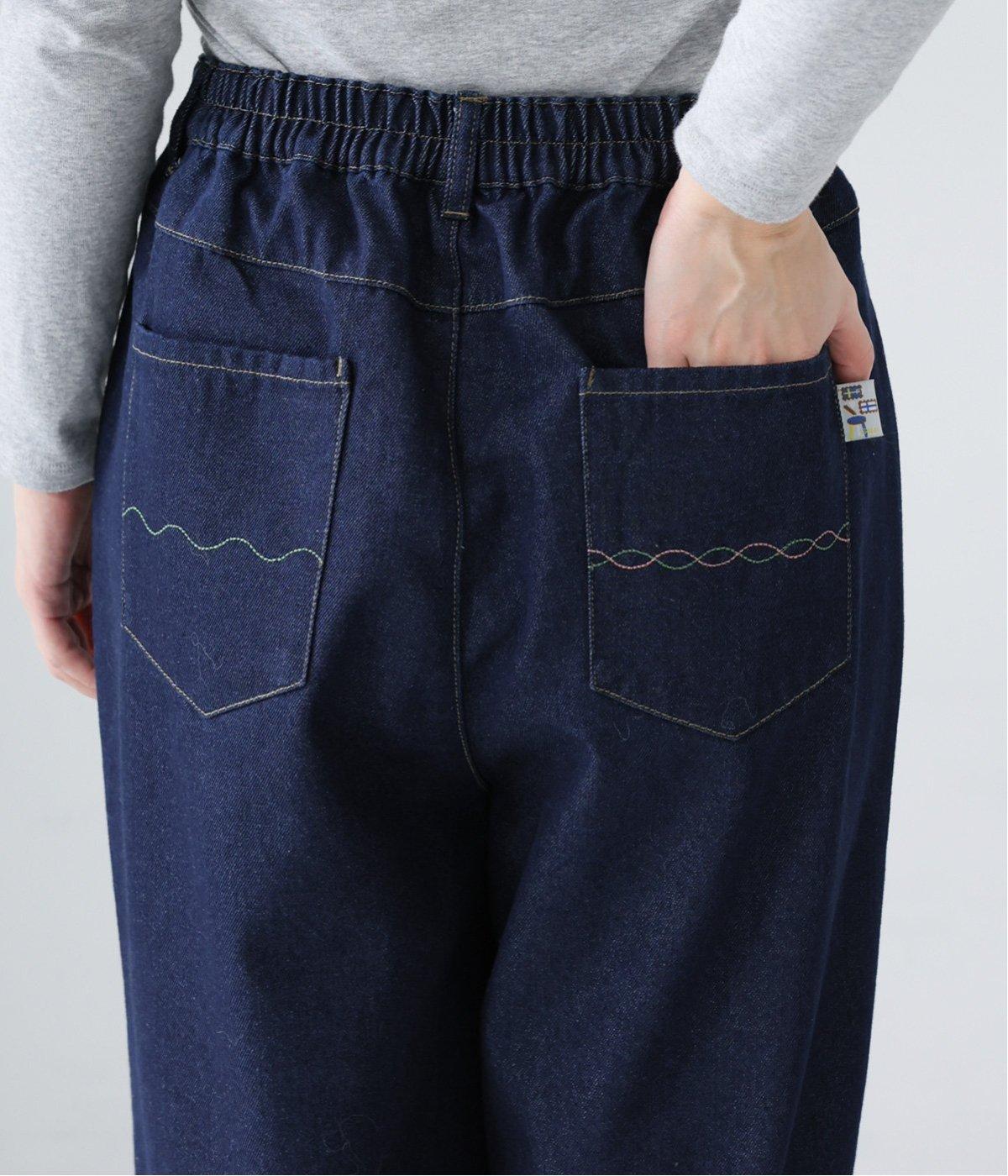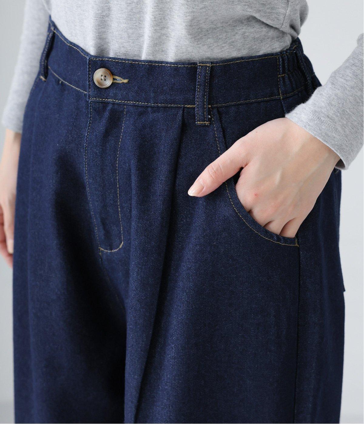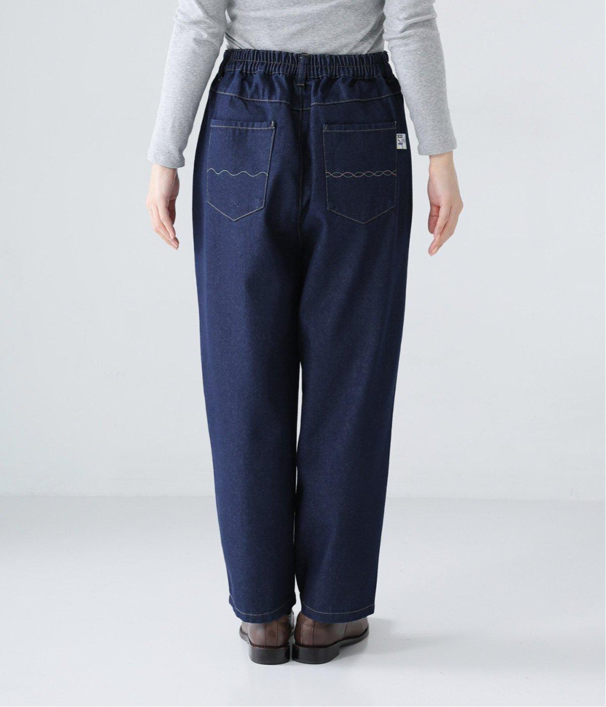 ごわつきの少ないやわらかな風合いのコットン混デニム生地。軽さも加わり、ストレスフリーなはき心地を叶えてくれます。季節を問わず、デイリーに着用可能です。