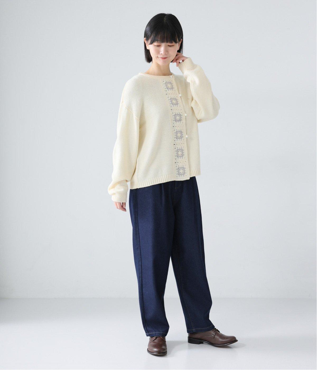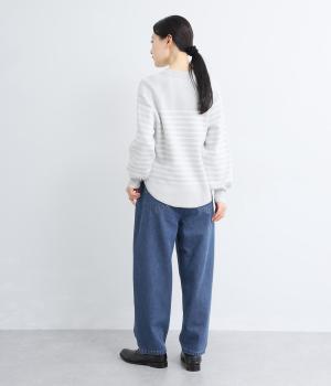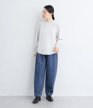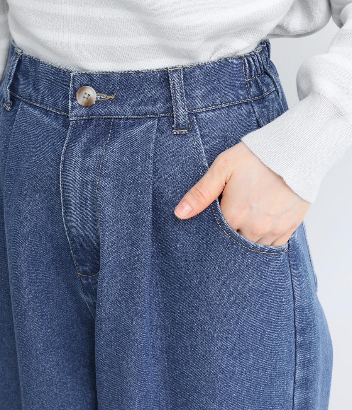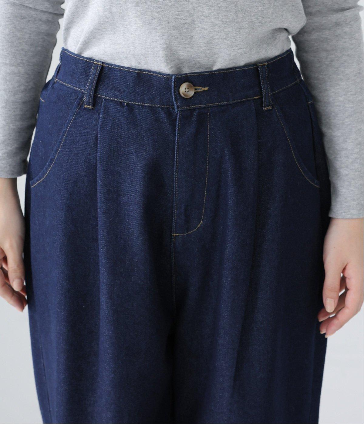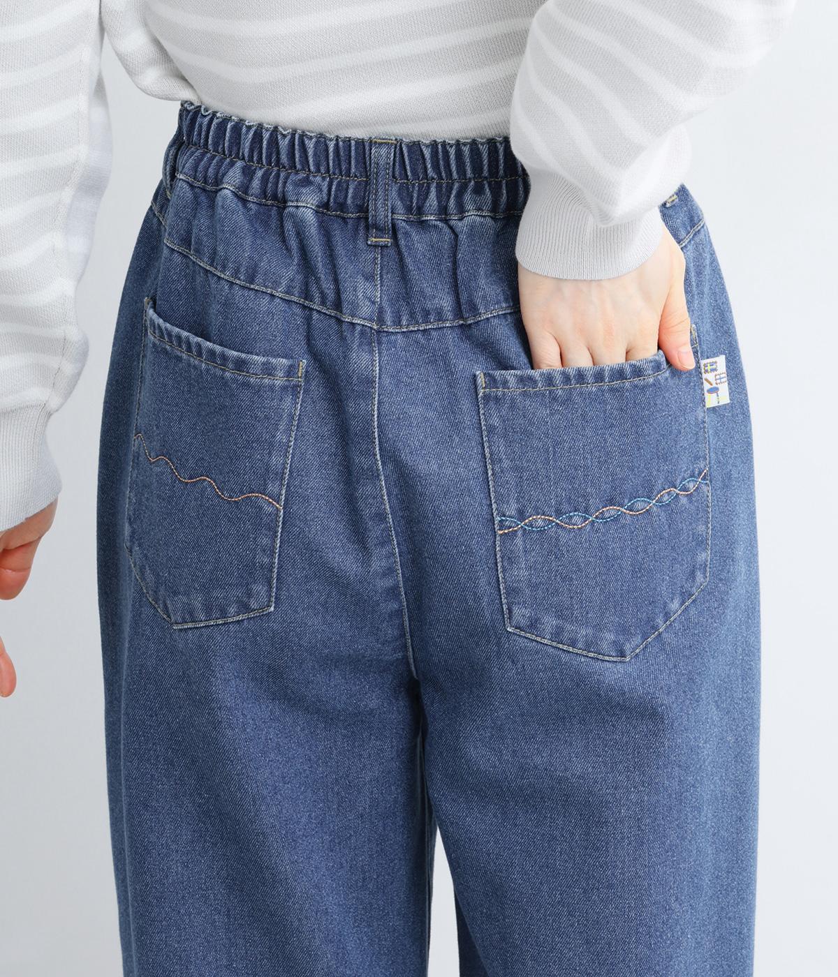 ごわつきの少ないやわらかな風合いのコットン混デニム生地。軽さも加わり、ストレスフリーなはき心地を叶えてくれます。季節を問わず、デイリーに着用可能です。