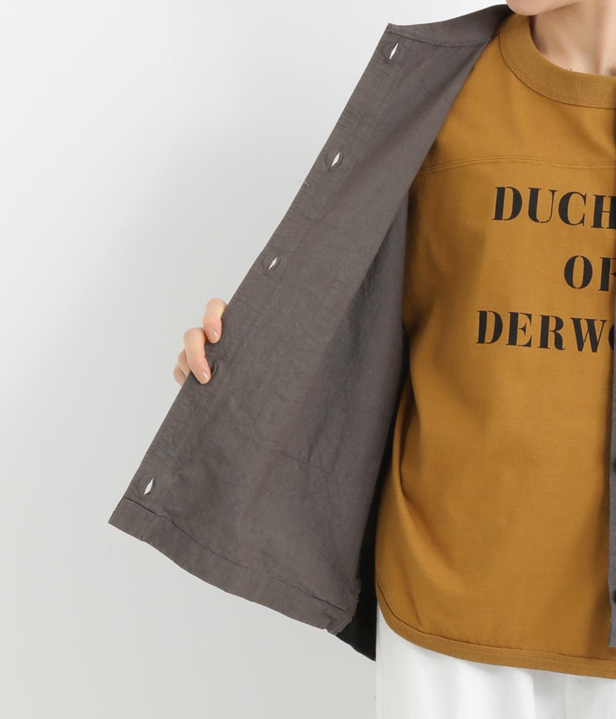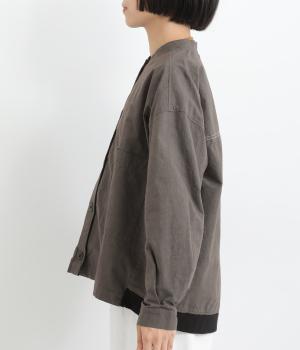 フロントに大きなポケットのついた、Tシャツにさっと羽織るだけでもさまになるジャケット。後ろ身頃の裾にはリブを配してデザイン性をプラス。適度なゆとりで羽織りにもコートのインナーにも活躍。メンズライクな装いにもなじむ一枚です。