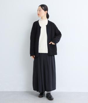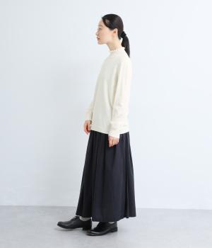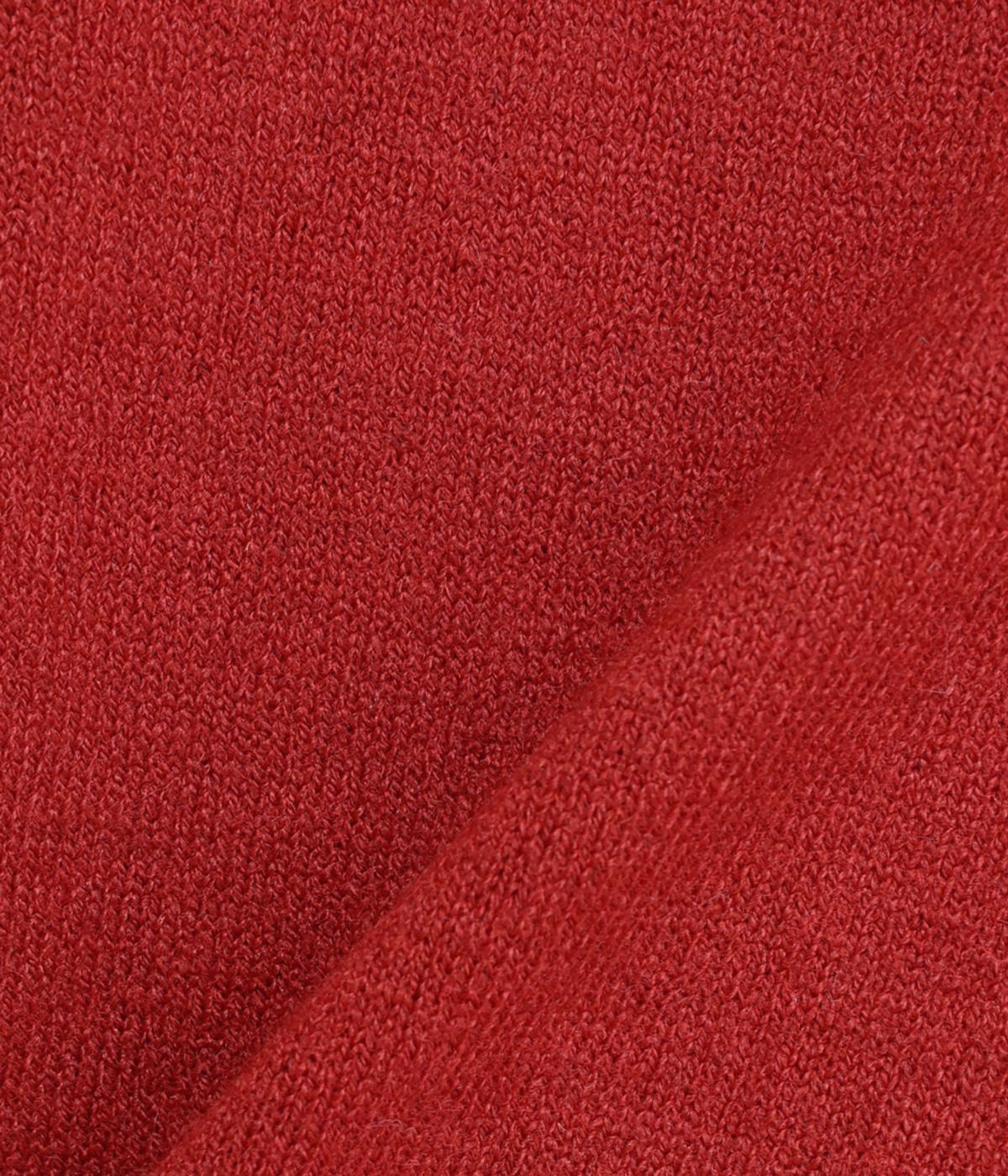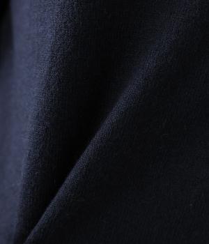 細めの糸で密度高く編み上げた、チクチク感の少ないやわらかな風合いのニット生地です。体の動きに合わせてとてもよく伸びるので、快適に着ていただけます。