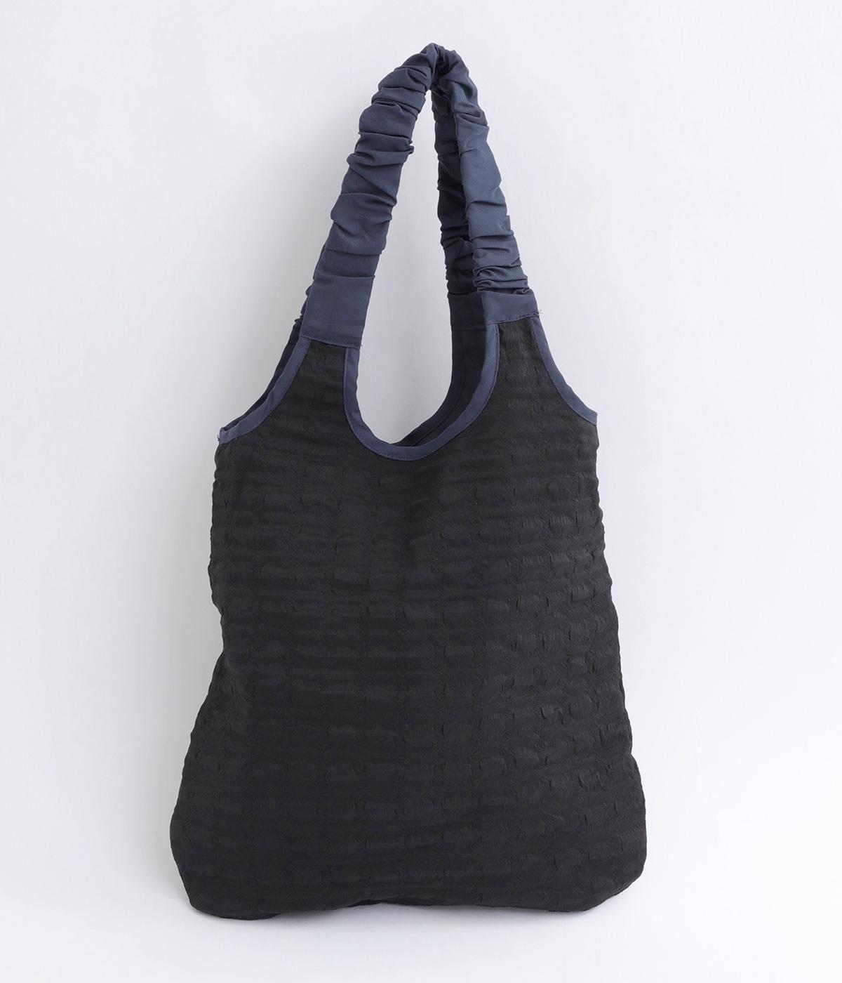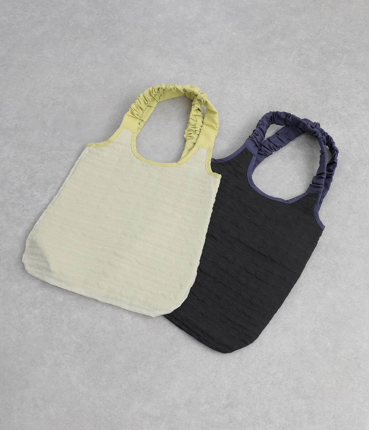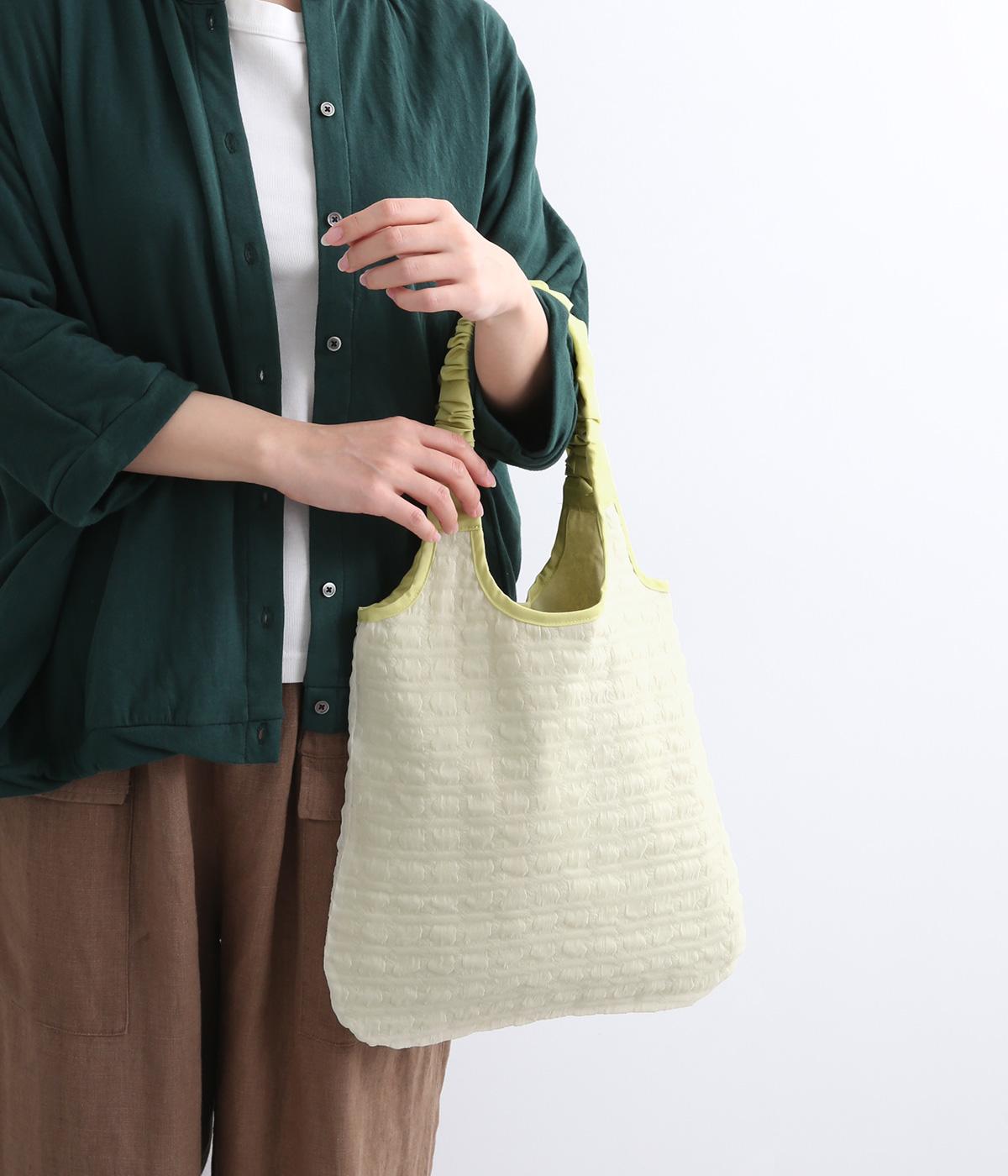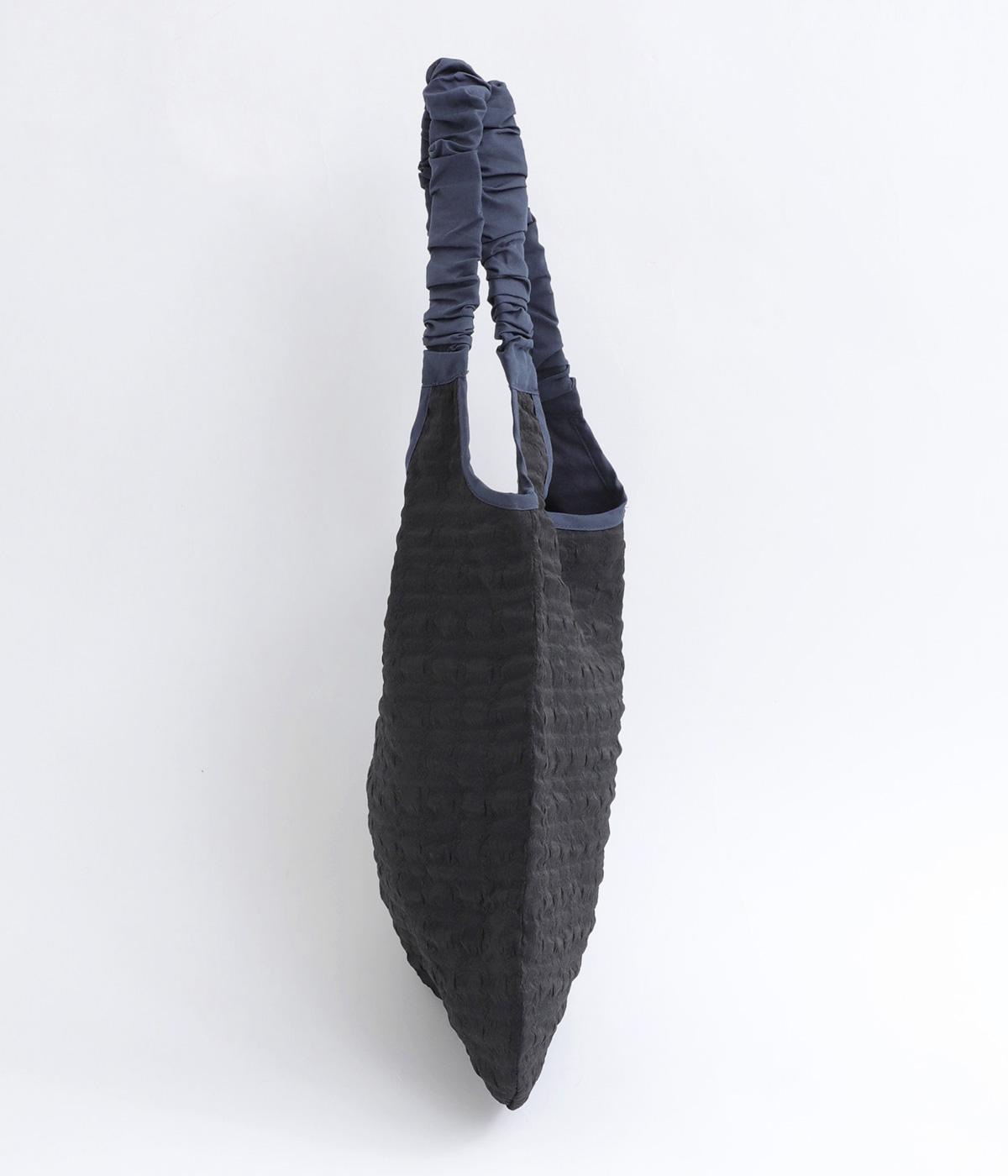 スクエア型が使い勝手のいいトートバッグは、くしゅっと寄せたハンドルデザインがアイキャッチになっています。どちらも使えるリバーシブル仕様なのでその日の気分やスタイリングに合わせてアレンジ可能。