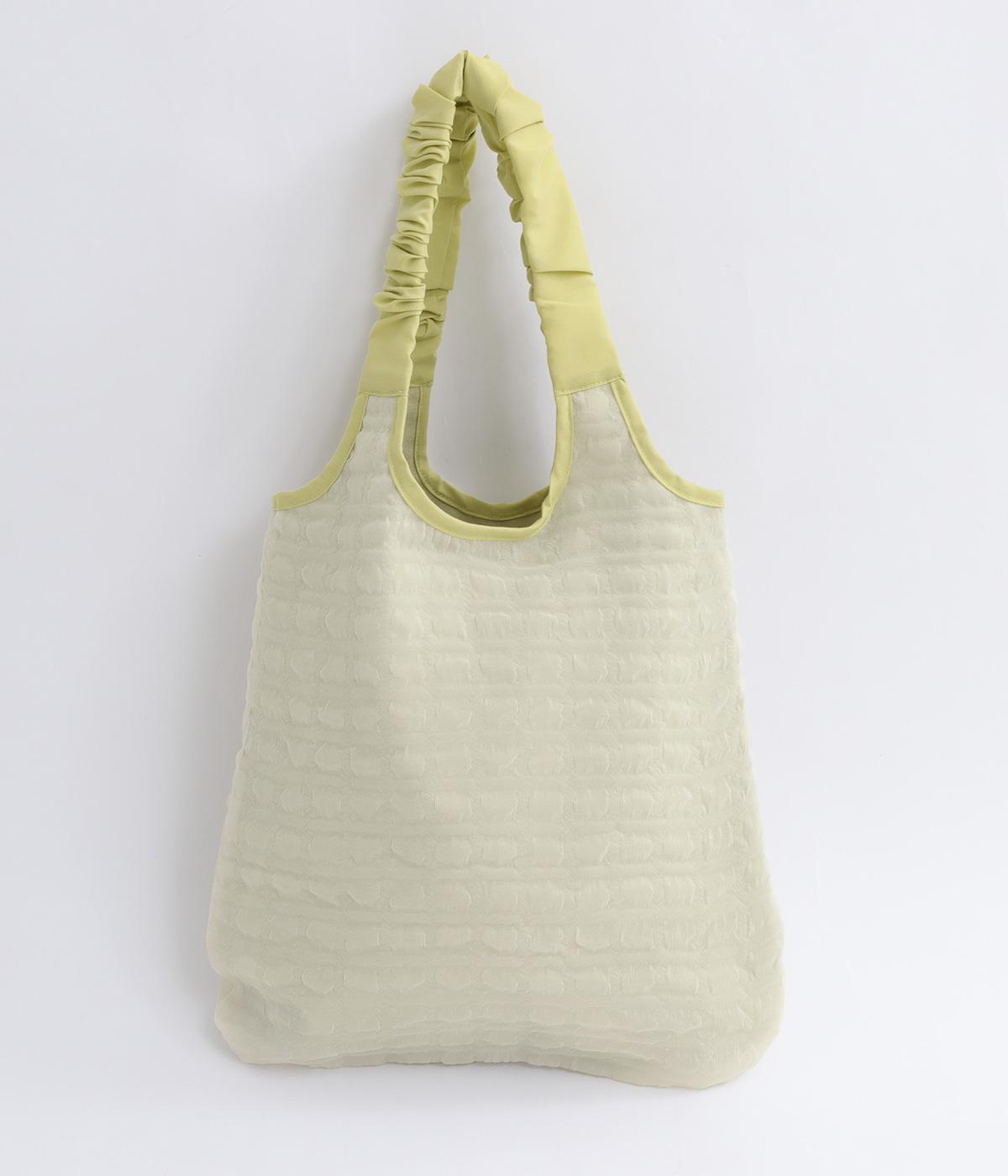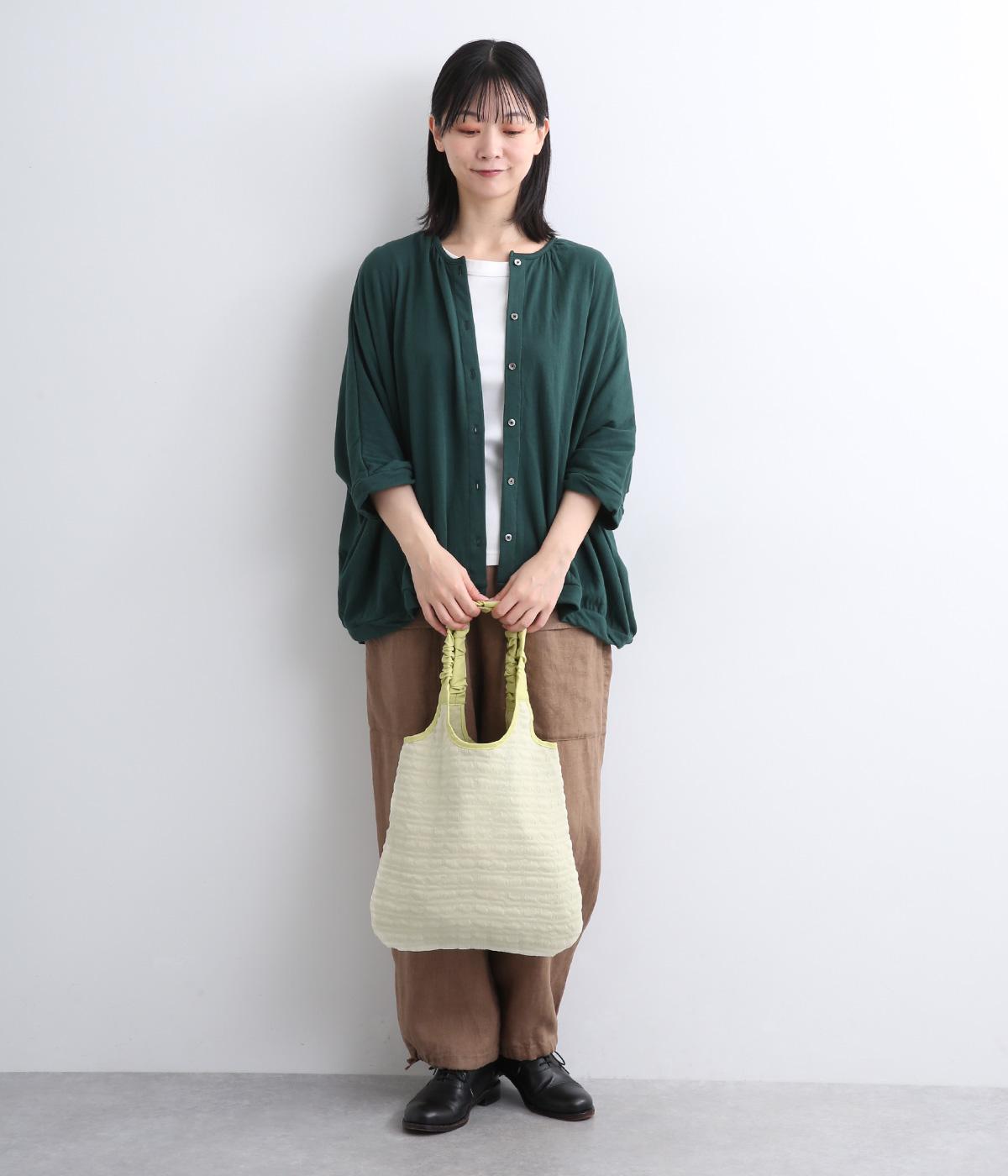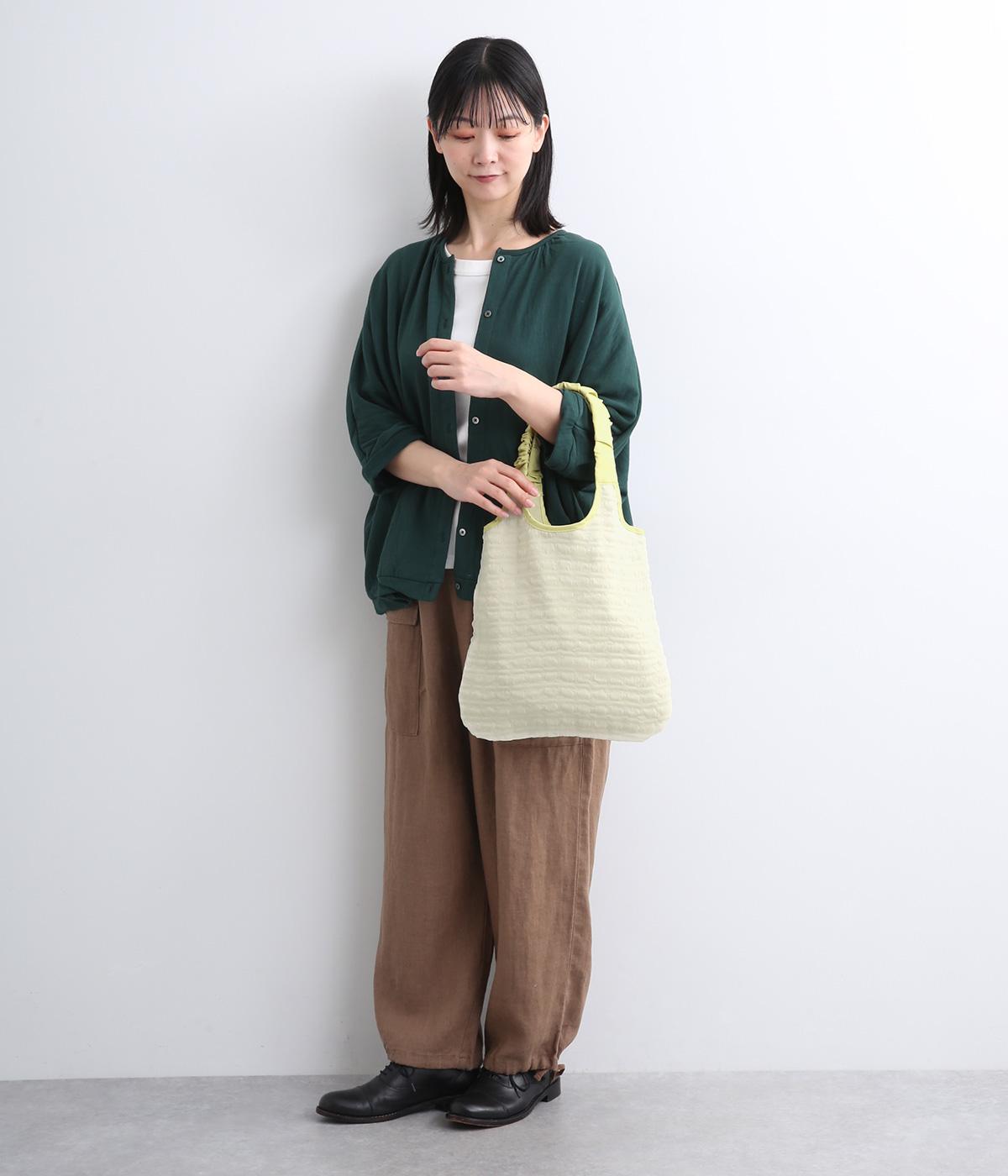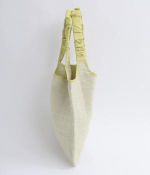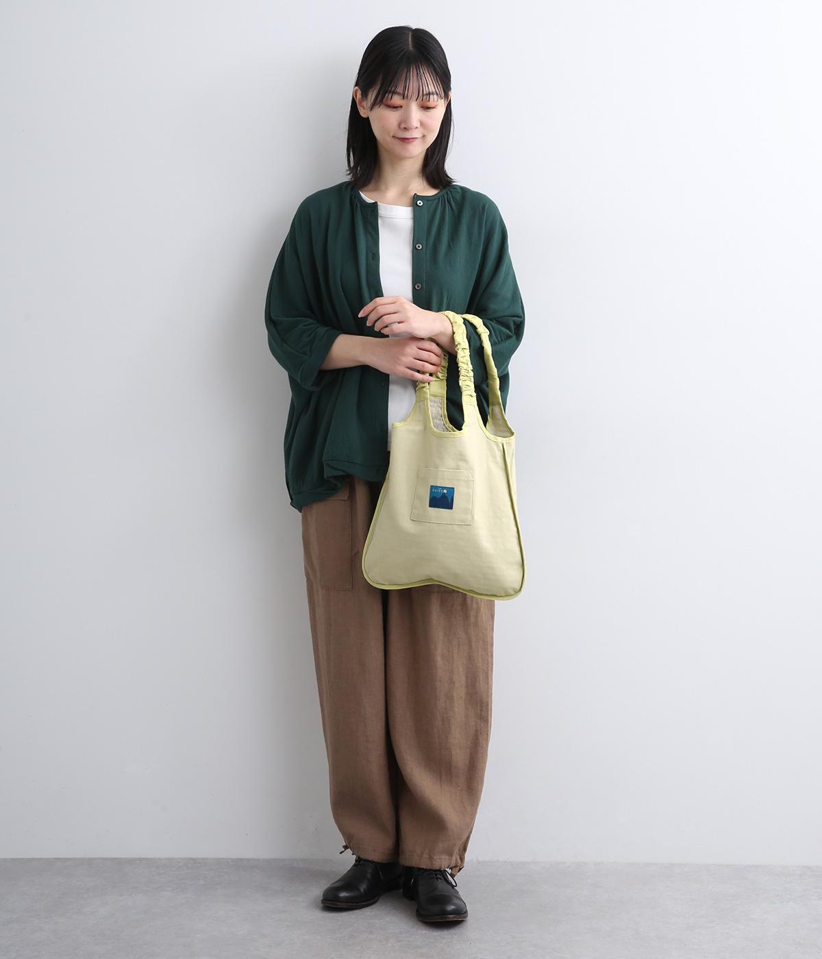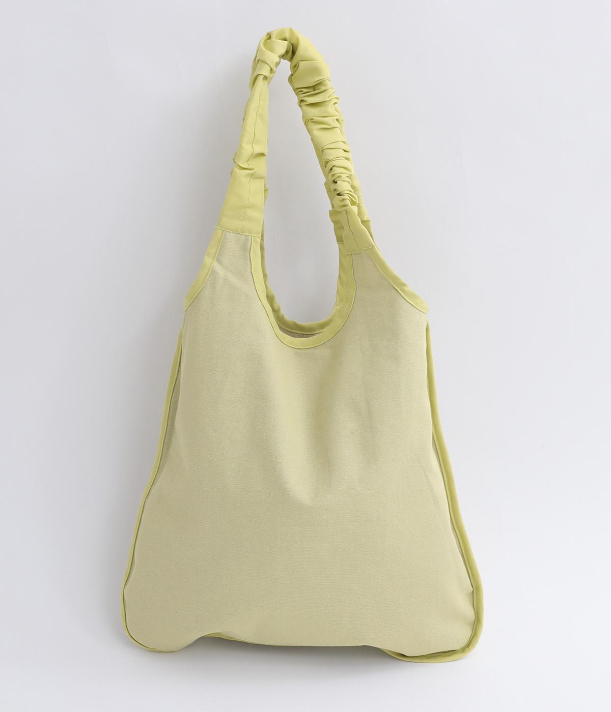 スクエア型が使い勝手のいいトートバッグは、くしゅっと寄せたハンドルデザインがアイキャッチになっています。どちらも使えるリバーシブル仕様なのでその日の気分やスタイリングに合わせてアレンジ可能。