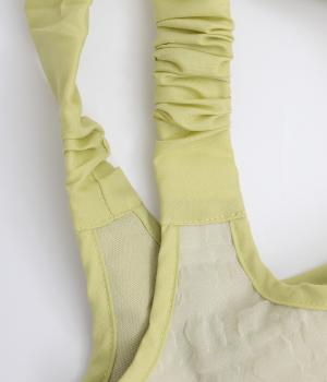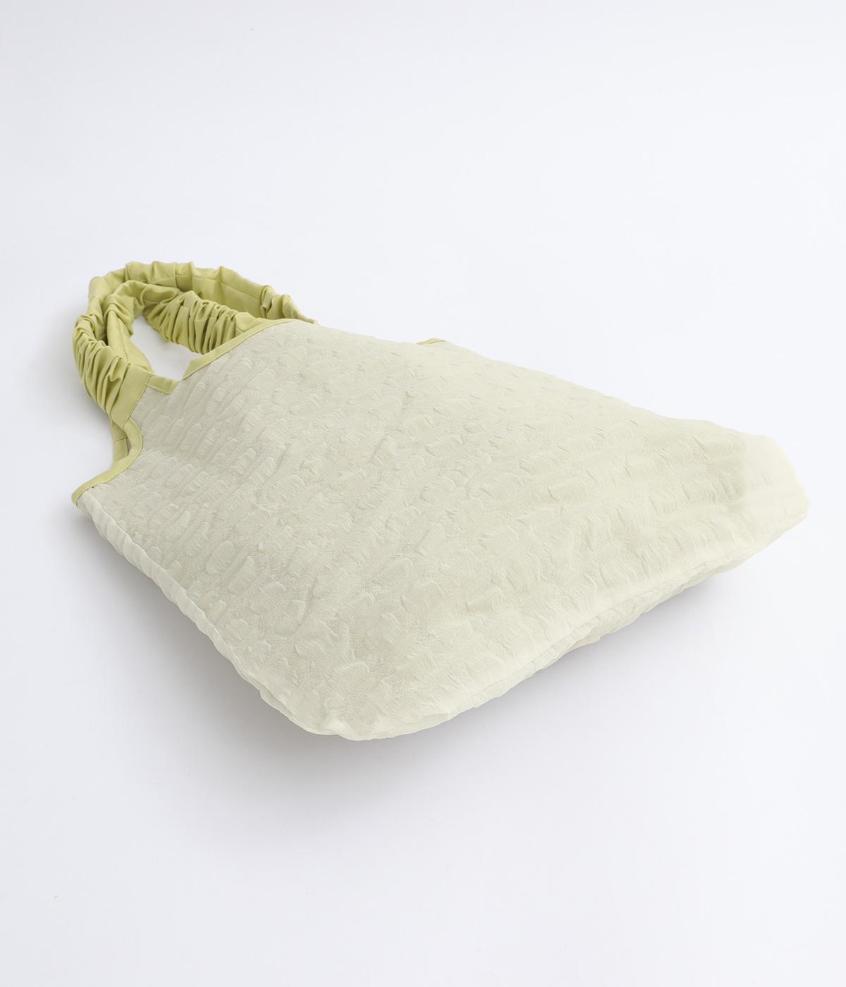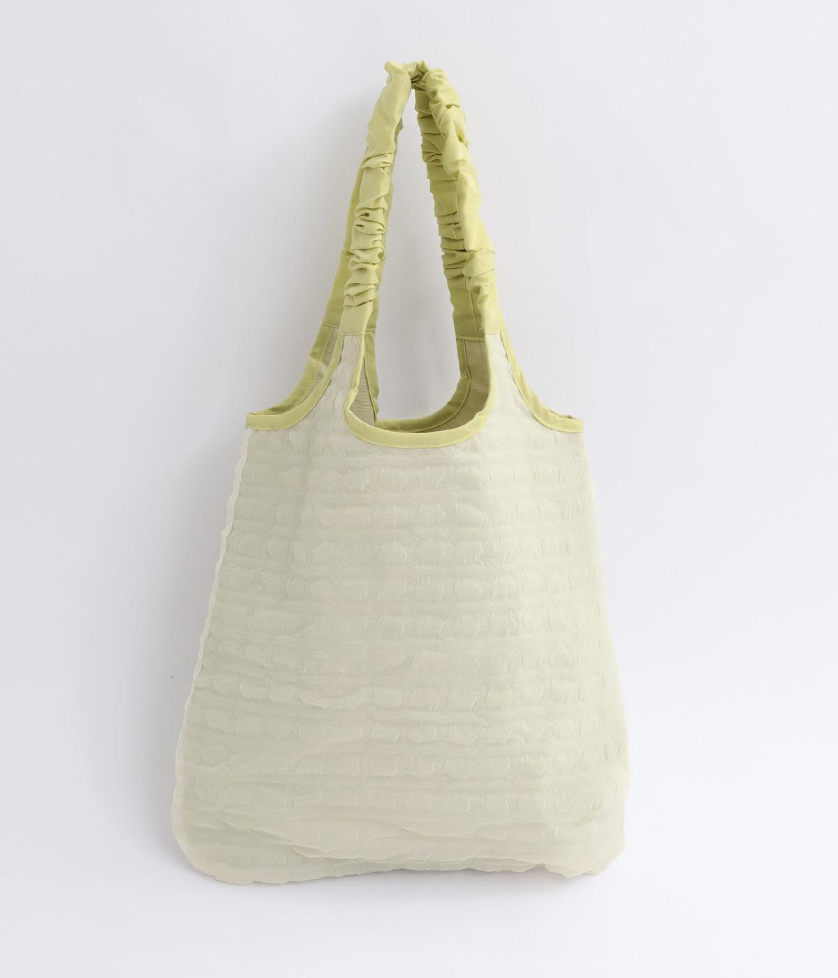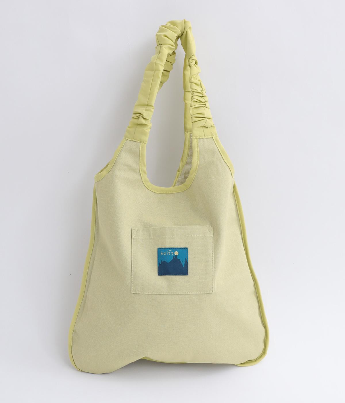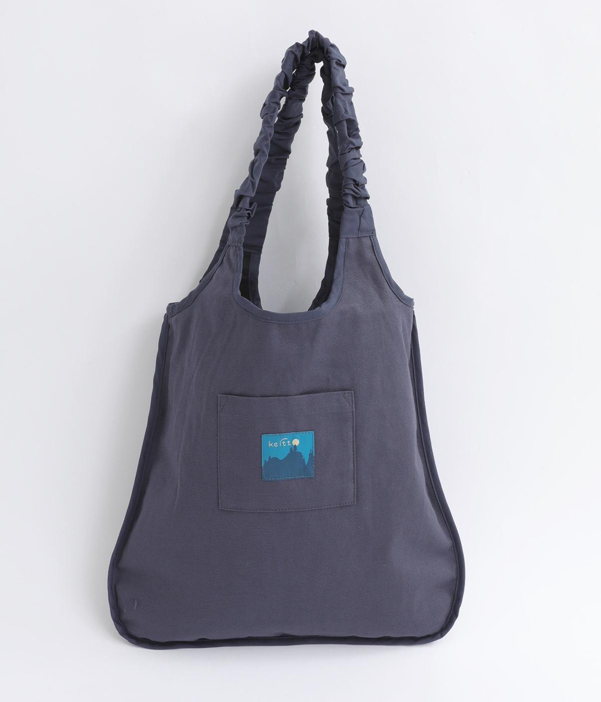 スクエア型が使い勝手のいいトートバッグは、くしゅっと寄せたハンドルデザインがアイキャッチになっています。どちらも使えるリバーシブル仕様なのでその日の気分やスタイリングに合わせてアレンジ可能。