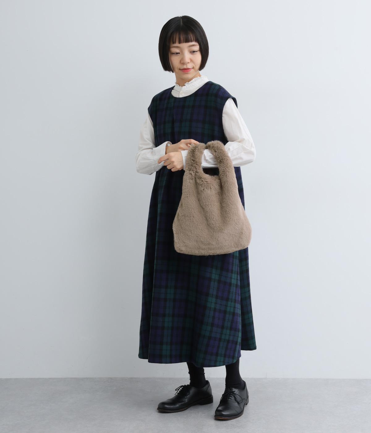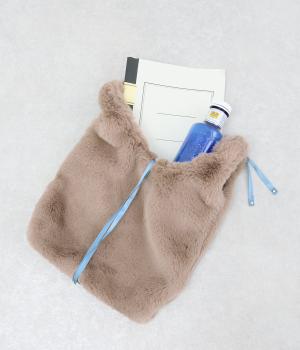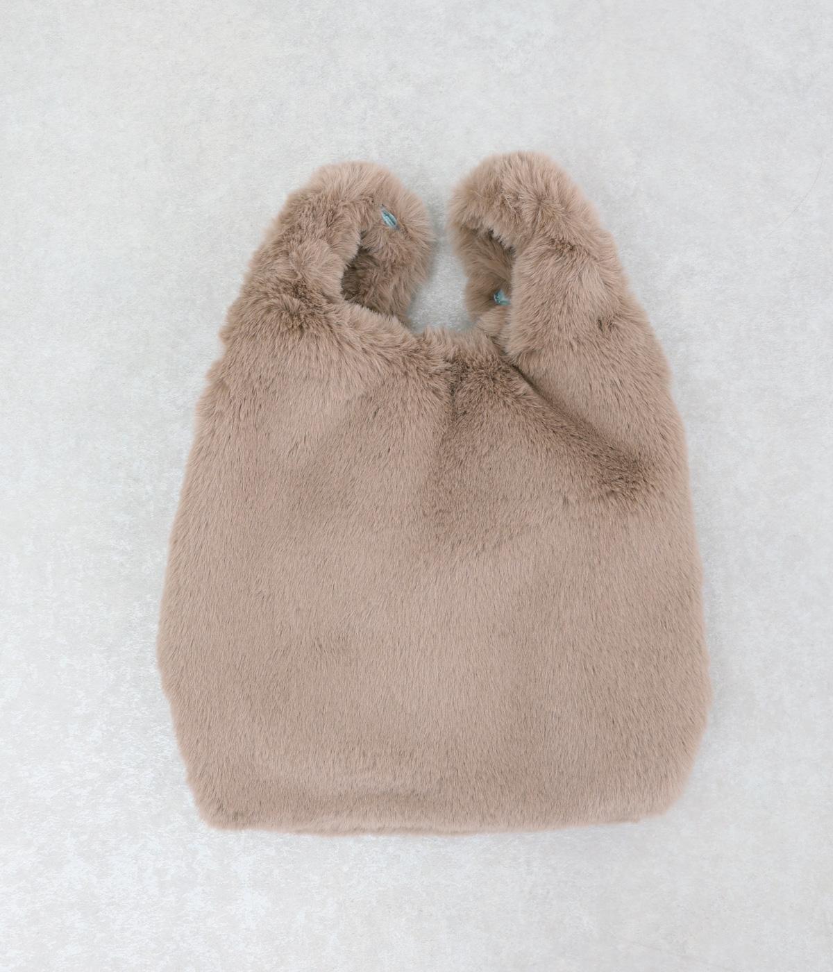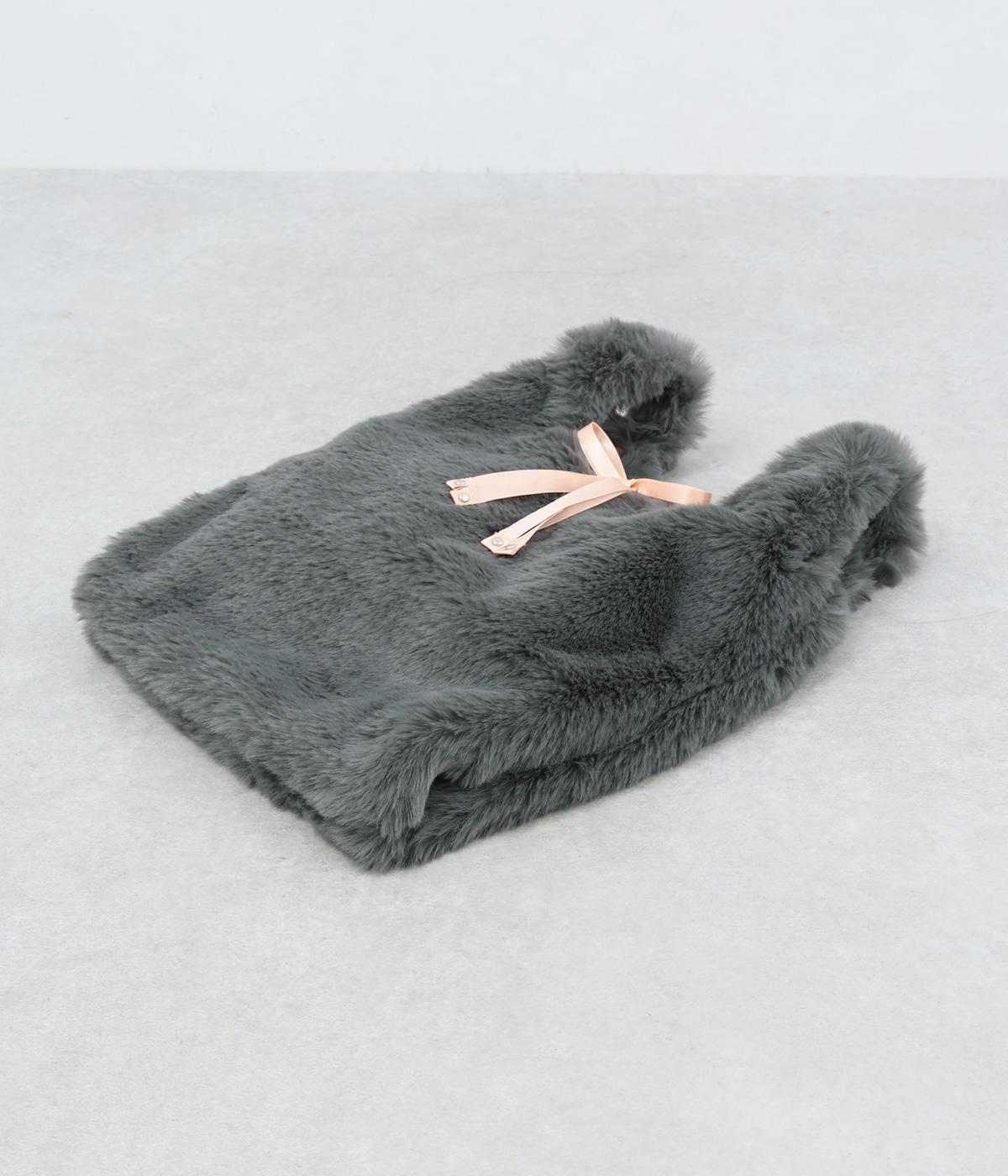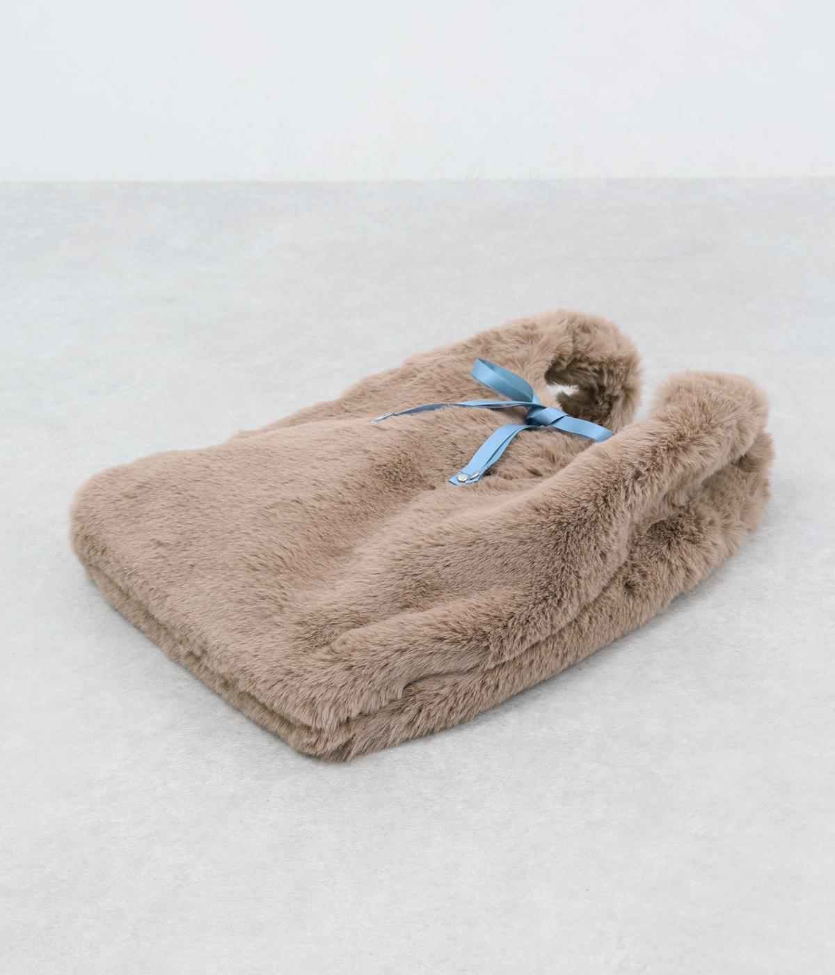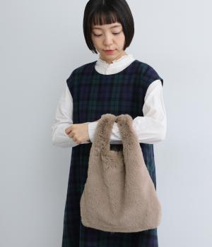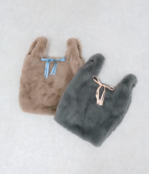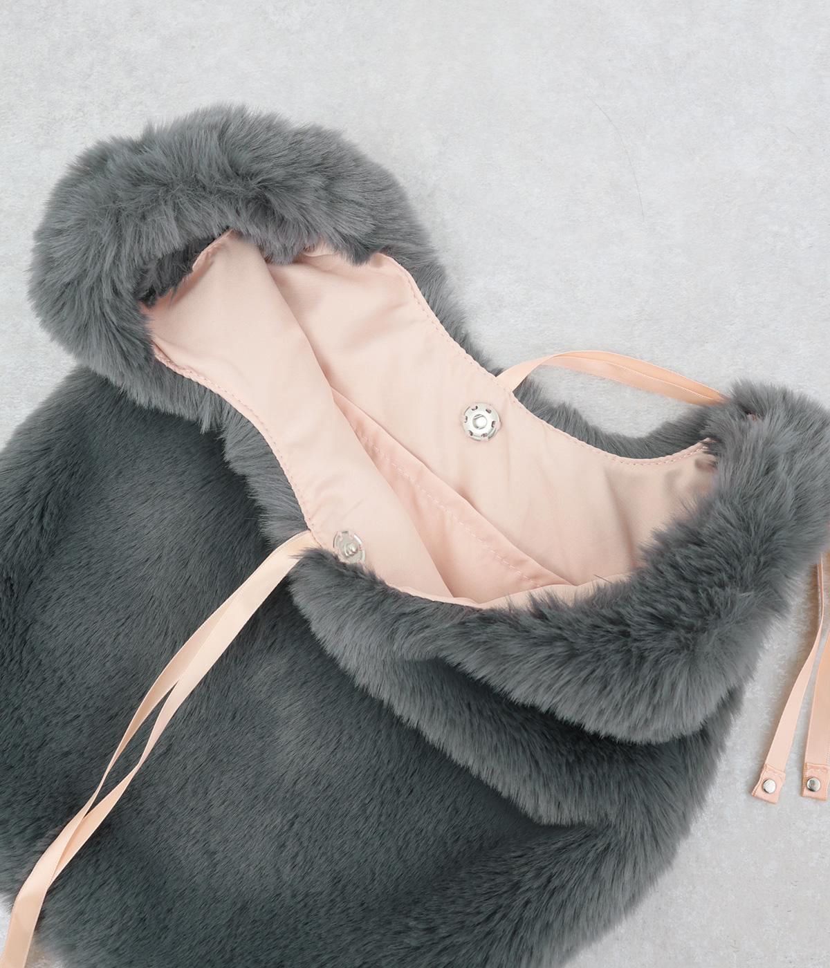特別なシーンでも持ちたくなるような、リッチ感のあるファーバッグ。配色をきかせた内袋やサテンリボンがアクセントになっています。エコバッグ感覚で気軽に持ちやすいのも好印象で、デイリースタイルのポイント使いにも。