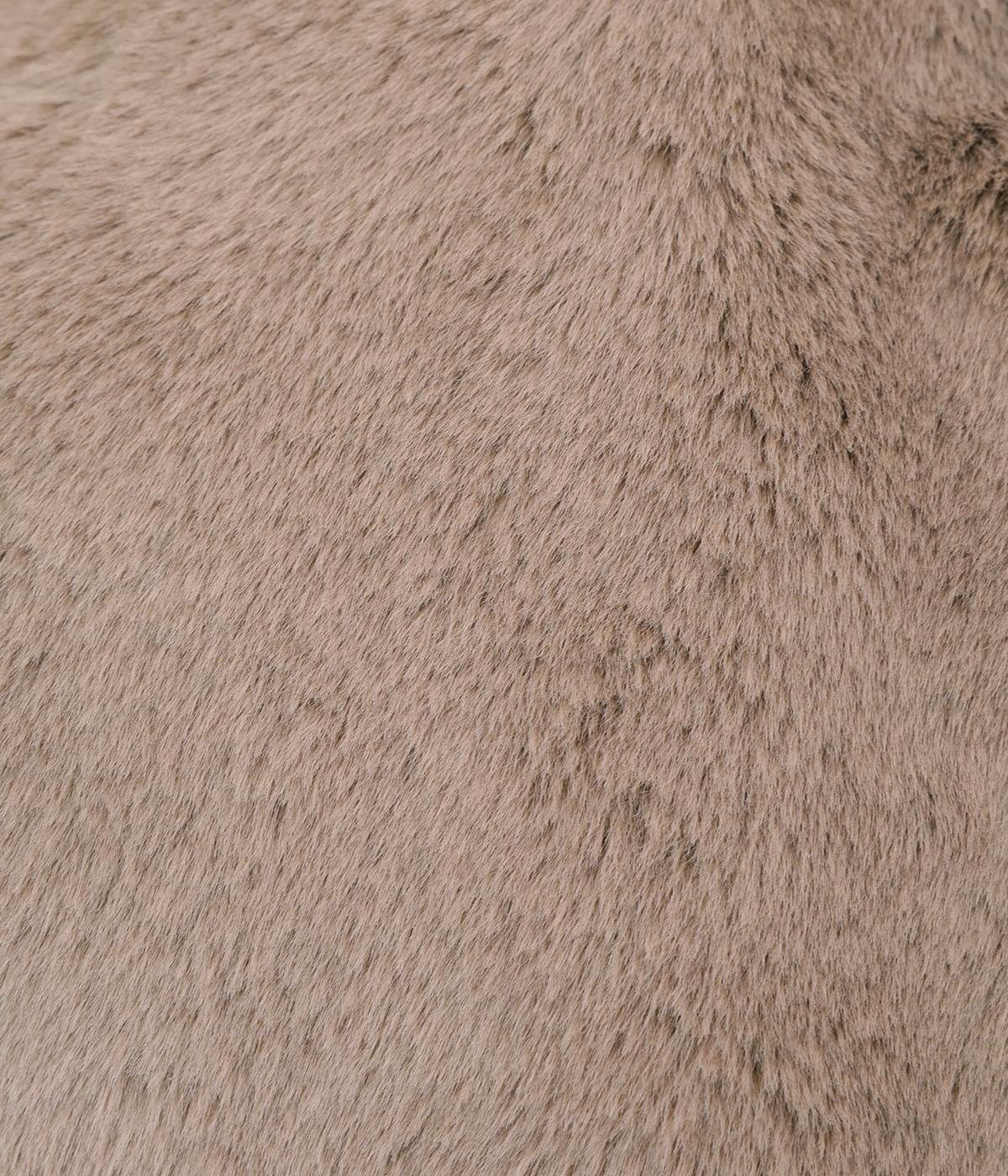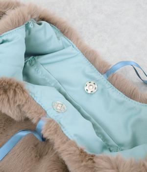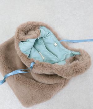 ふわっふわのエコファーをポリエステルで軽やかに仕上げました。ほのかな光沢感がリッチな印象を与え、裏布つきで強度と耐久性をアップ。