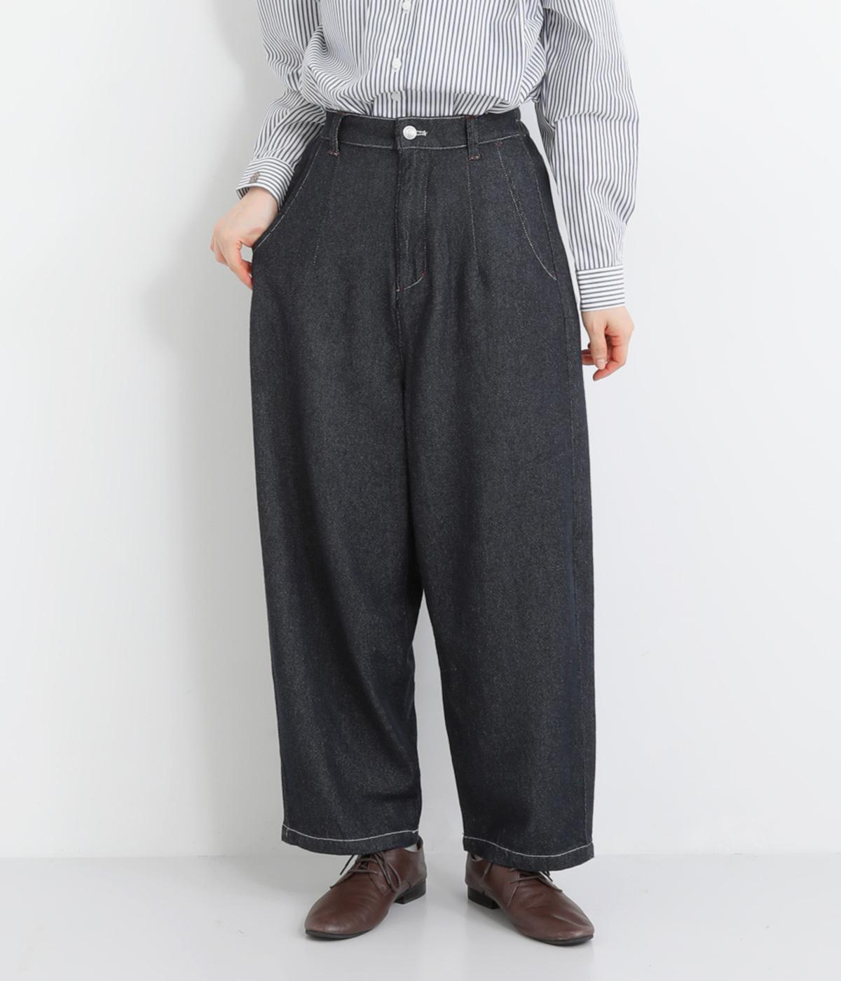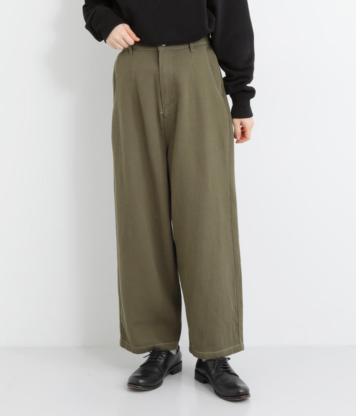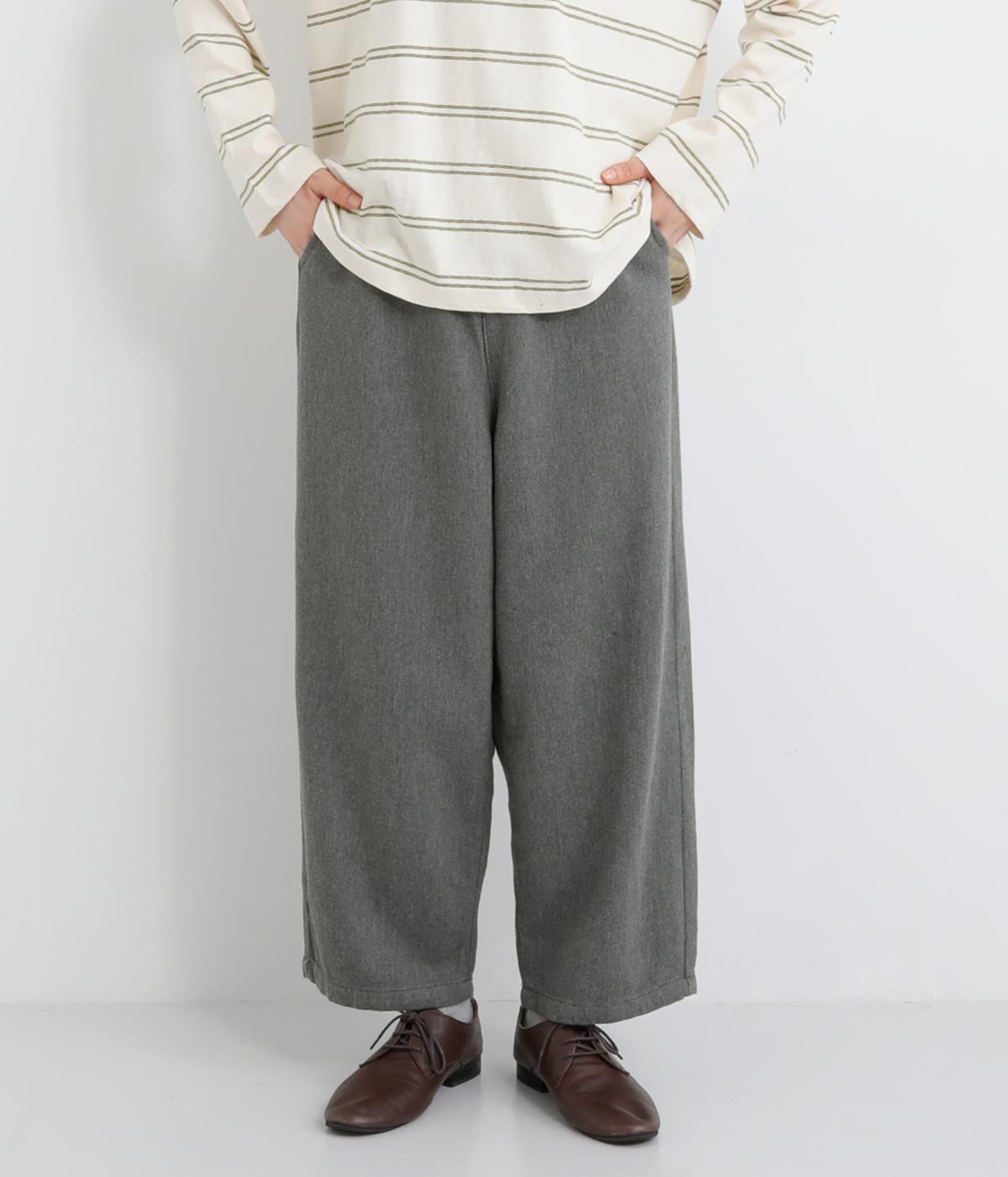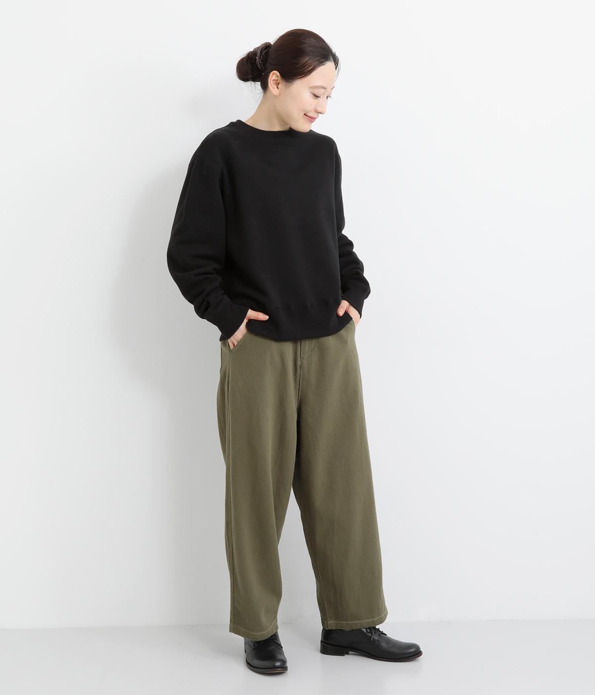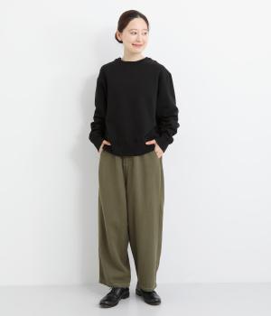 シルエットが印象的なワイドカーブパンツです。程よいボリューム感とゆとりのあるデザインで肌にまとわりつきにくく軽やかに着用できます。やや短めのパンツ丈は全体のバランスを美しく整えてくれます。シューズやソックスでスタイルの変化を楽しむのも◎。