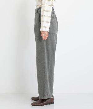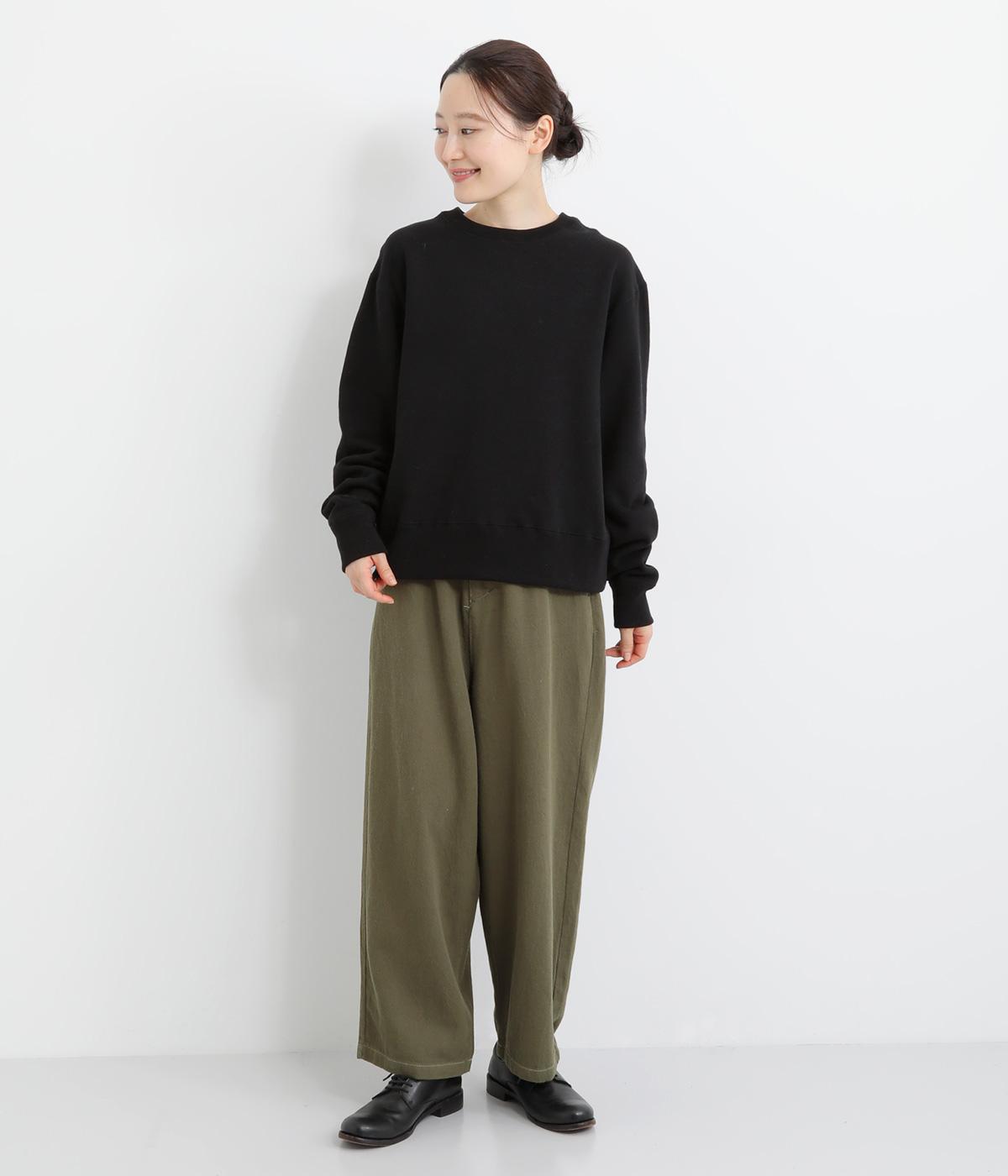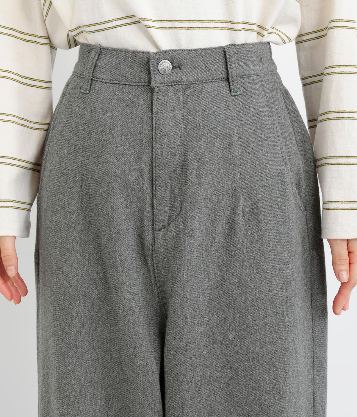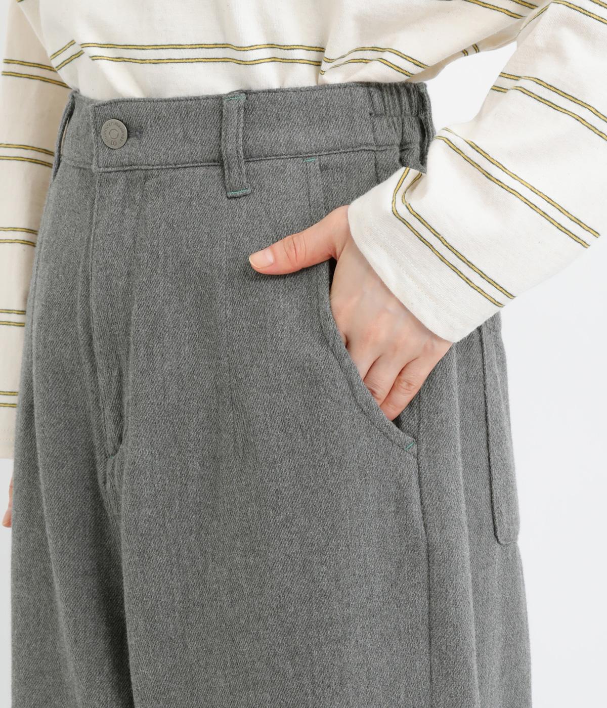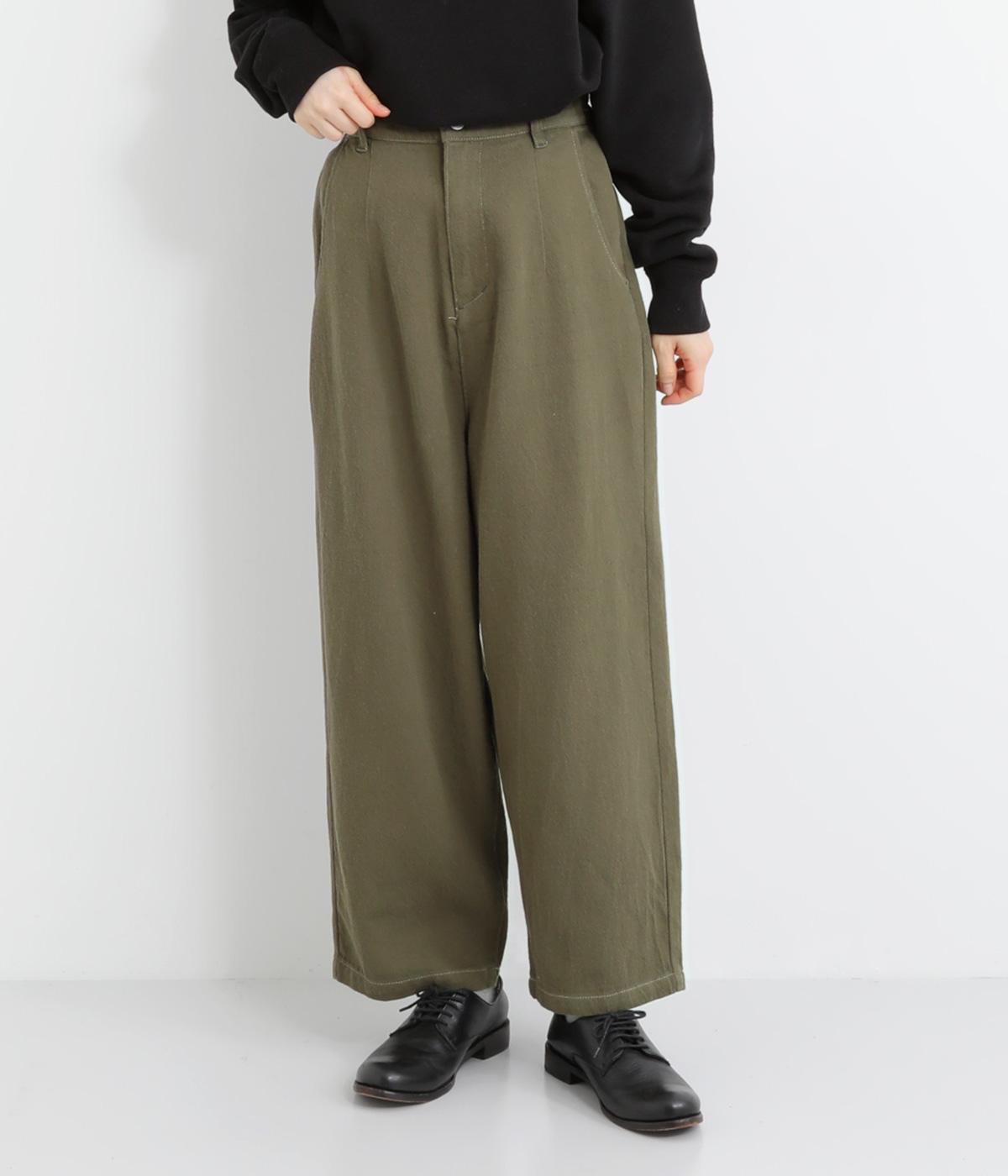 シルエットが印象的なワイドカーブパンツです。程よいボリューム感とゆとりのあるデザインで肌にまとわりつきにくく軽やかに着用できます。やや短めのパンツ丈は全体のバランスを美しく整えてくれます。シューズやソックスでスタイルの変化を楽しむのも◎。
