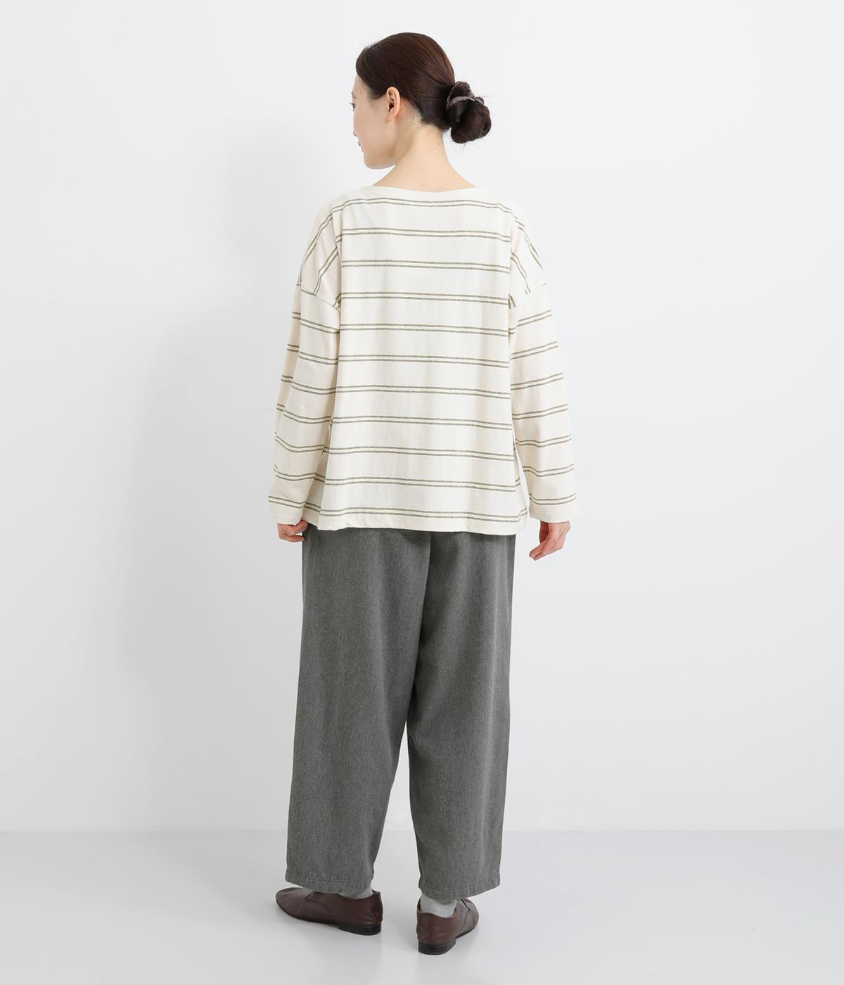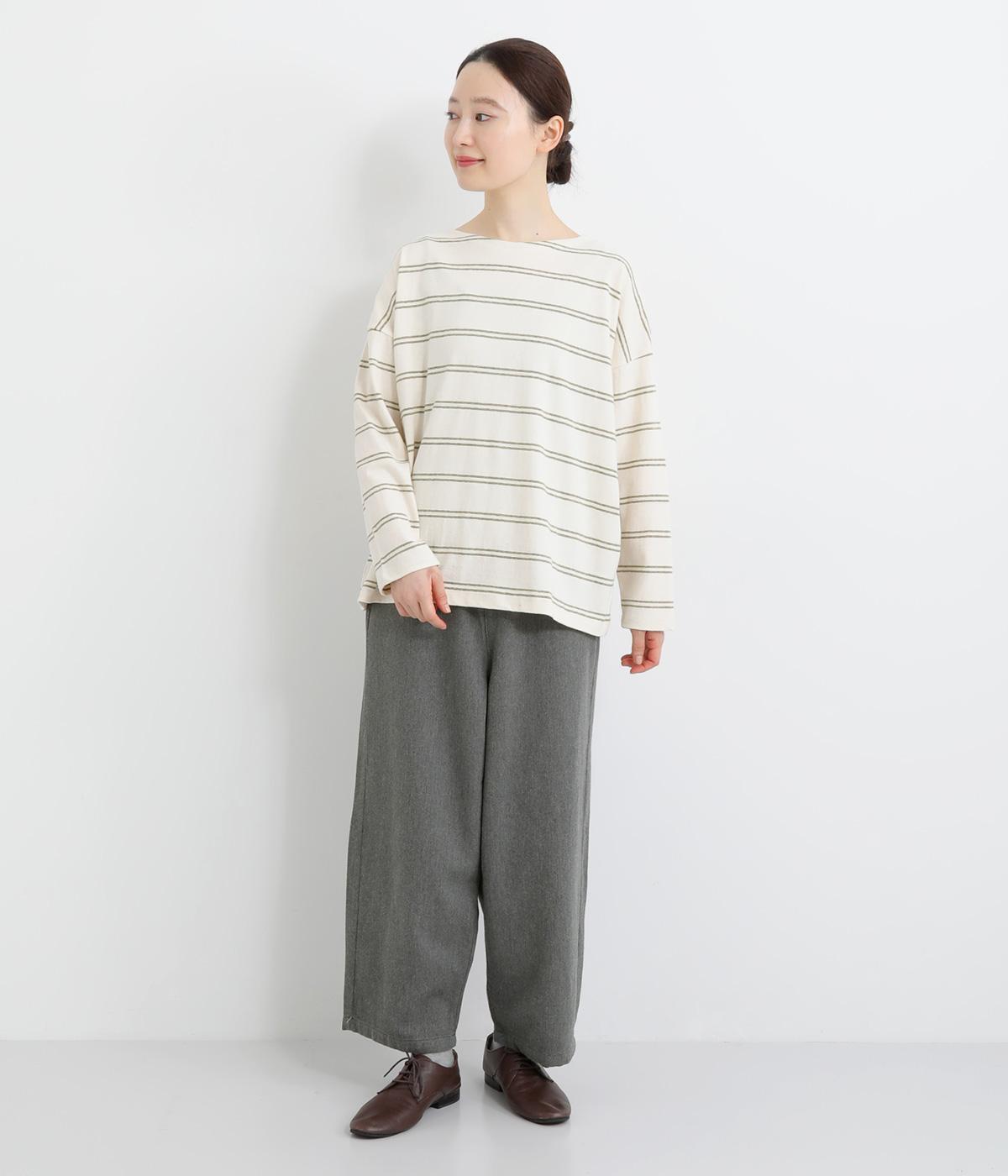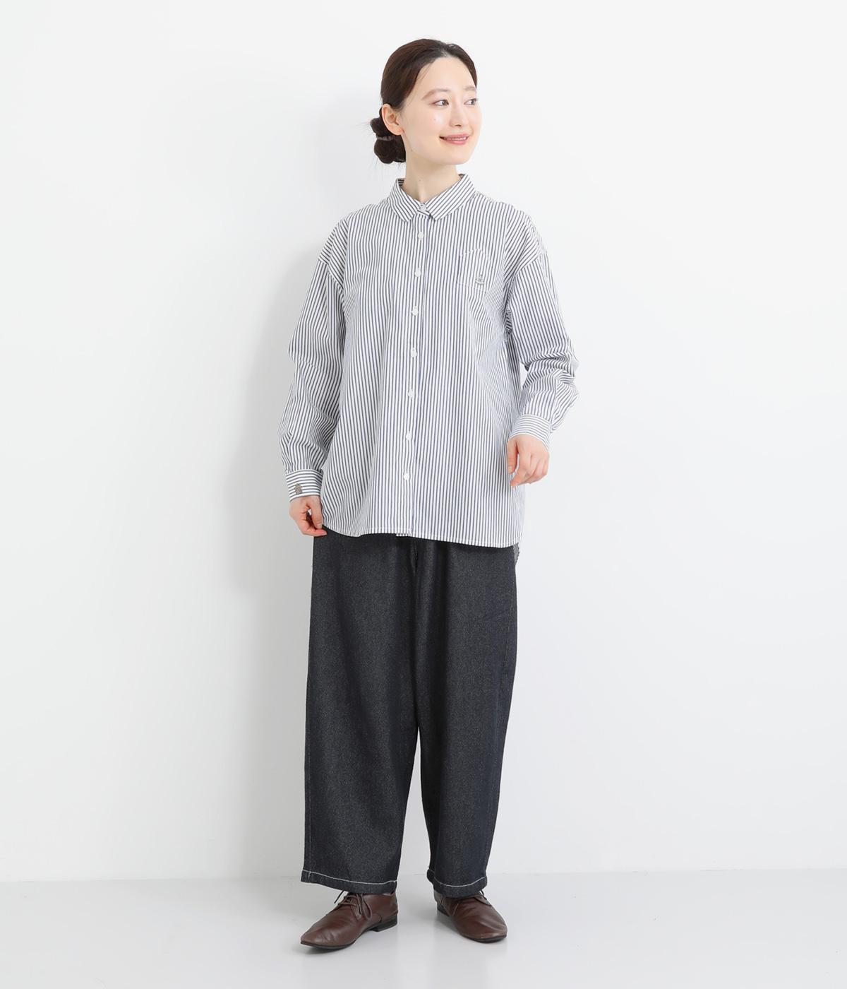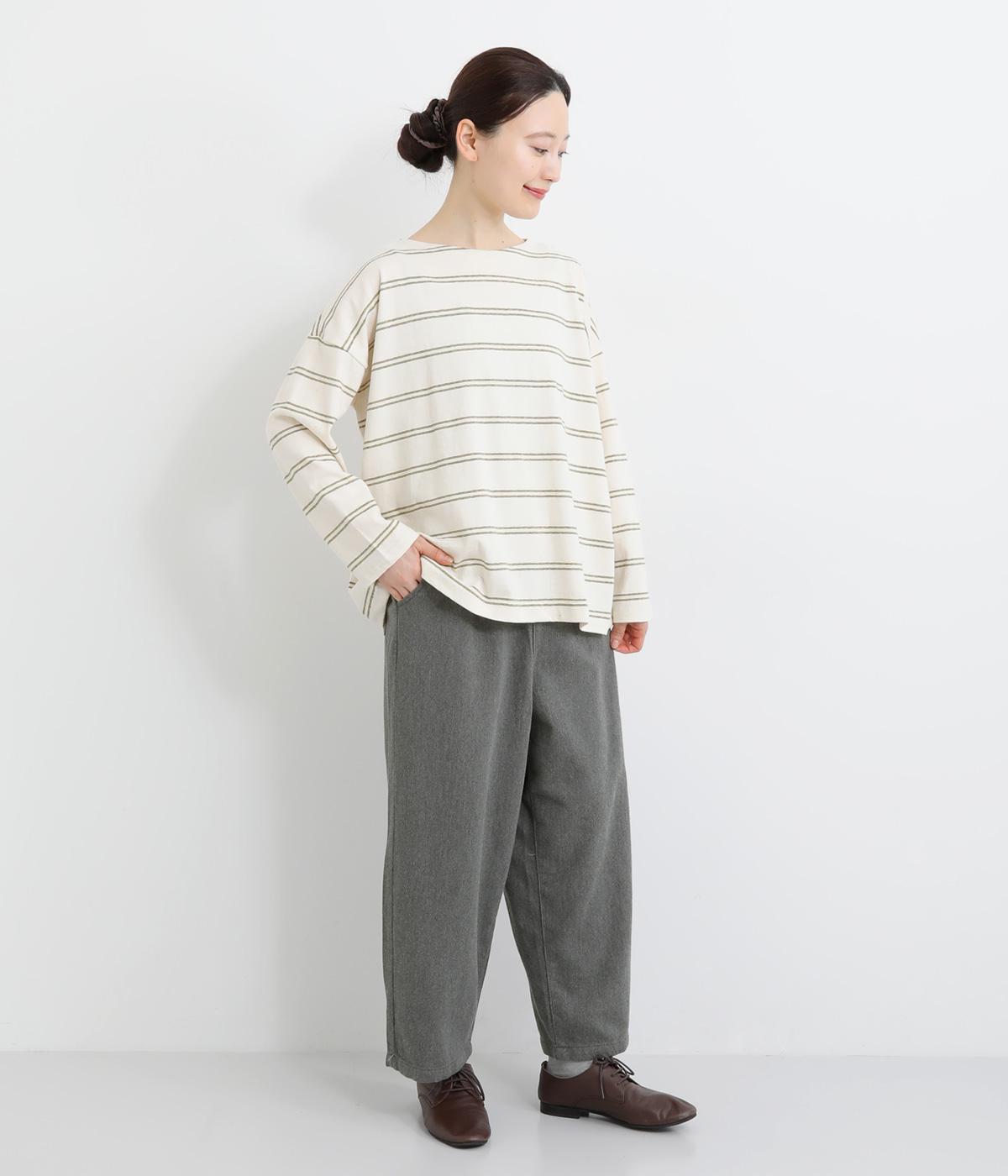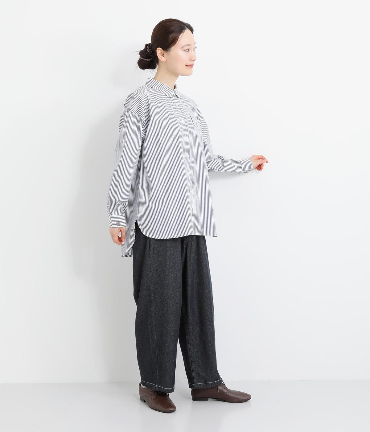 とろんとしたなめらかなコットン素材。程よく軽量で動きやすく、幅広いシーンで気軽に着用できます。やわらかな光沢感と質感はデイリーにもフォーマルにもバランス良く合わせられます。