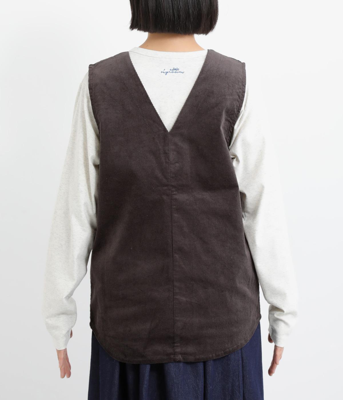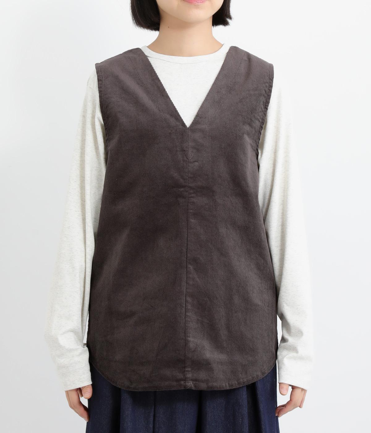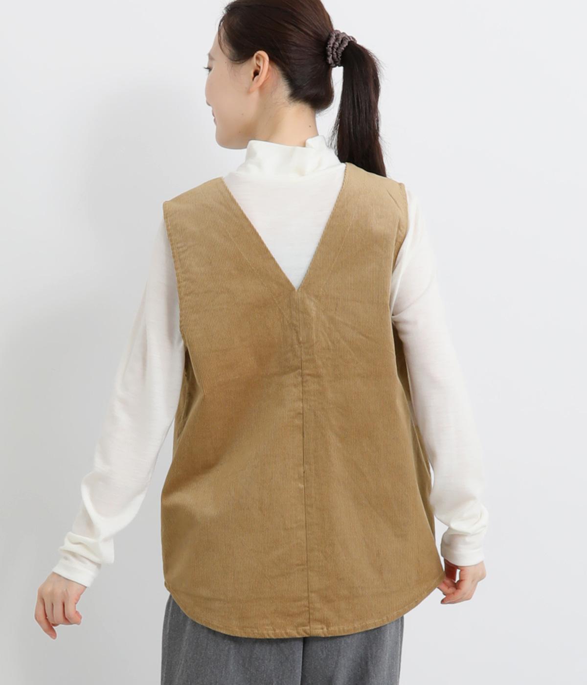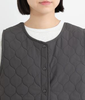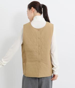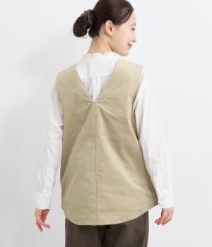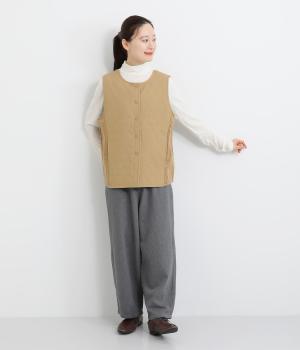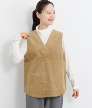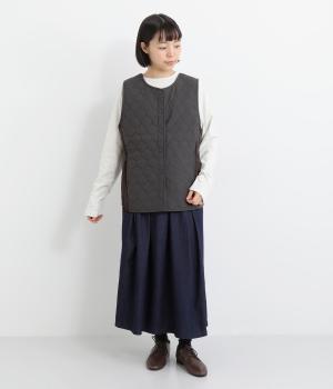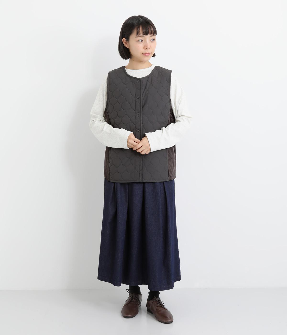 立体感のあるしっかりとした形状の2wayベスト。前身ごろと後身ごろで違う表情が楽しめる遊び心たっぷりの一着です。コーデュロイはクラシカルな印象に、ナイロンのキルティングはカジュアルな印象に。シーンによって使い分けが可能です。裾のなめらかな曲線が女性らしさを演出してくれます。