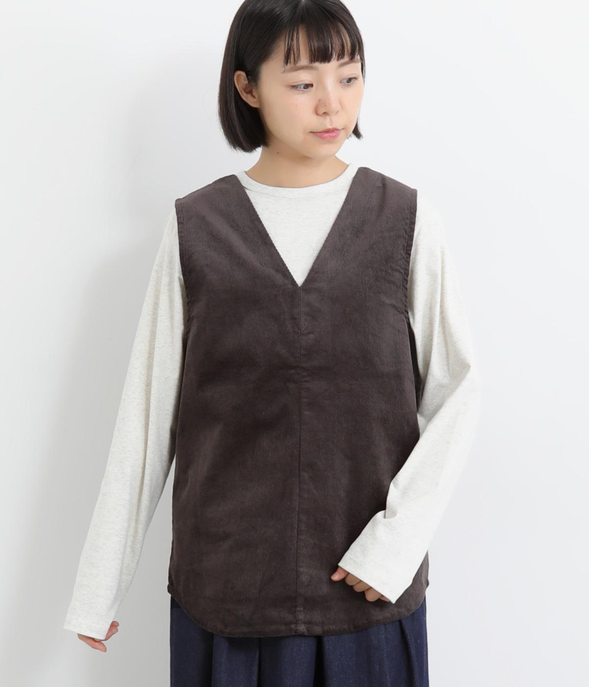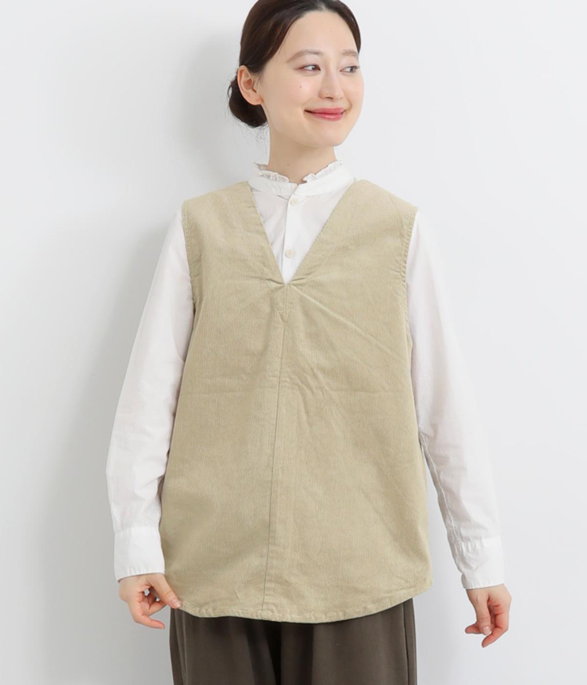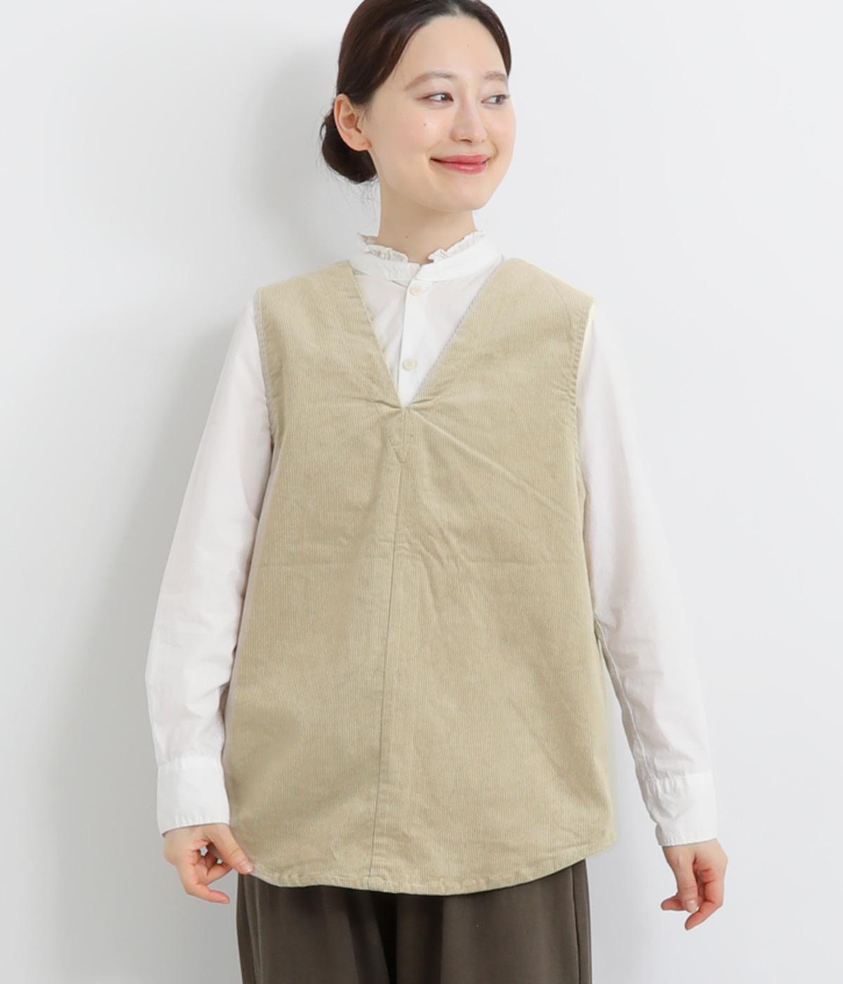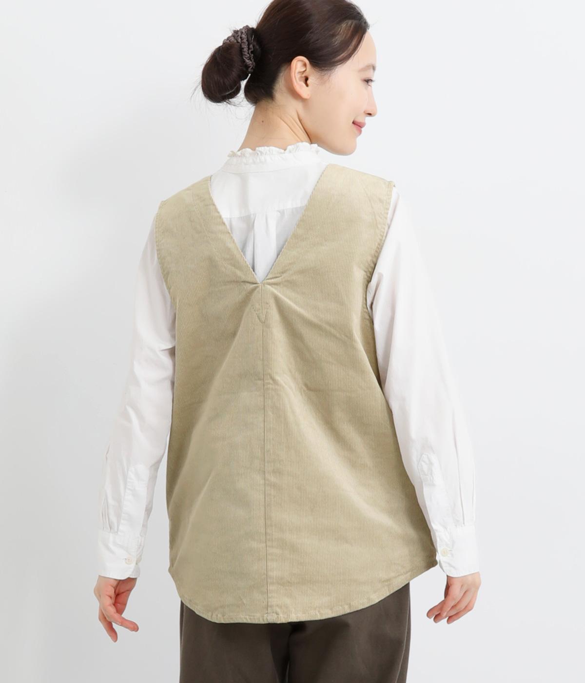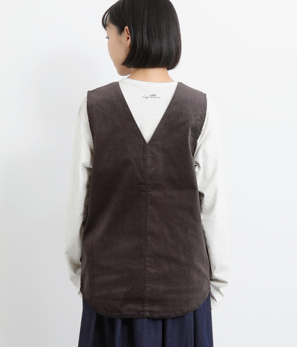 立体感のあるしっかりとした形状の2wayベスト。前身ごろと後身ごろで違う表情が楽しめる遊び心たっぷりの一着です。コーデュロイはクラシカルな印象に、ナイロンのキルティングはカジュアルな印象に。シーンによって使い分けが可能です。裾のなめらかな曲線が女性らしさを演出してくれます。