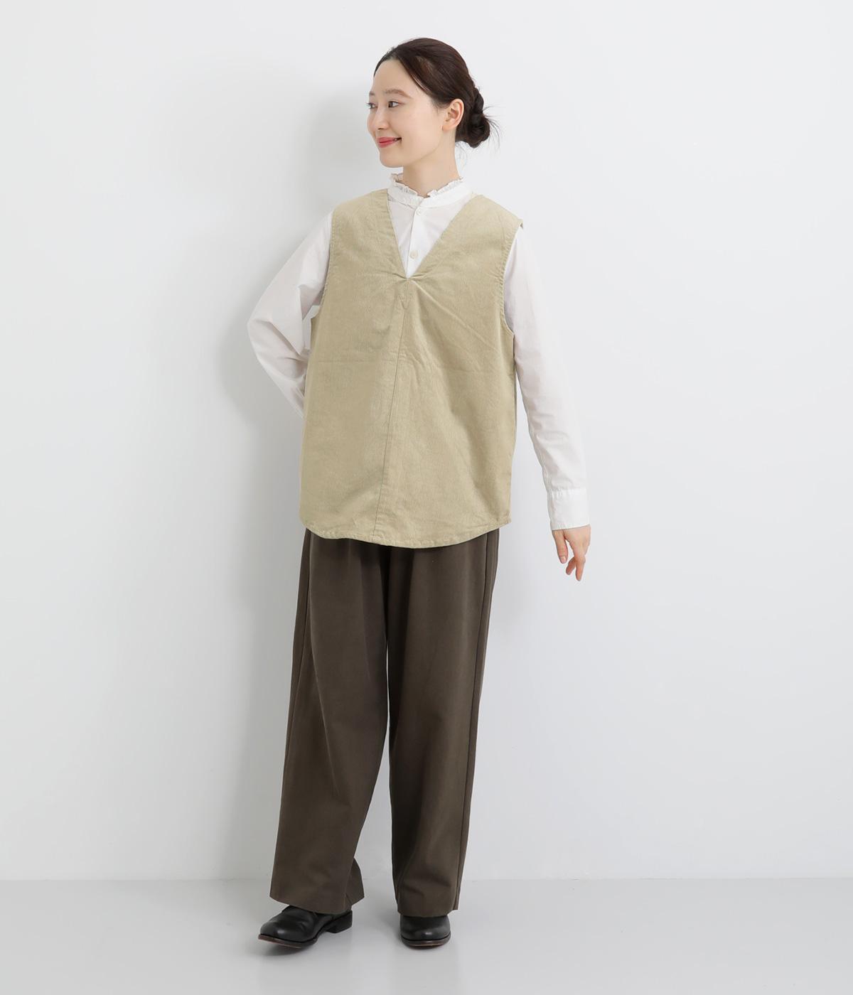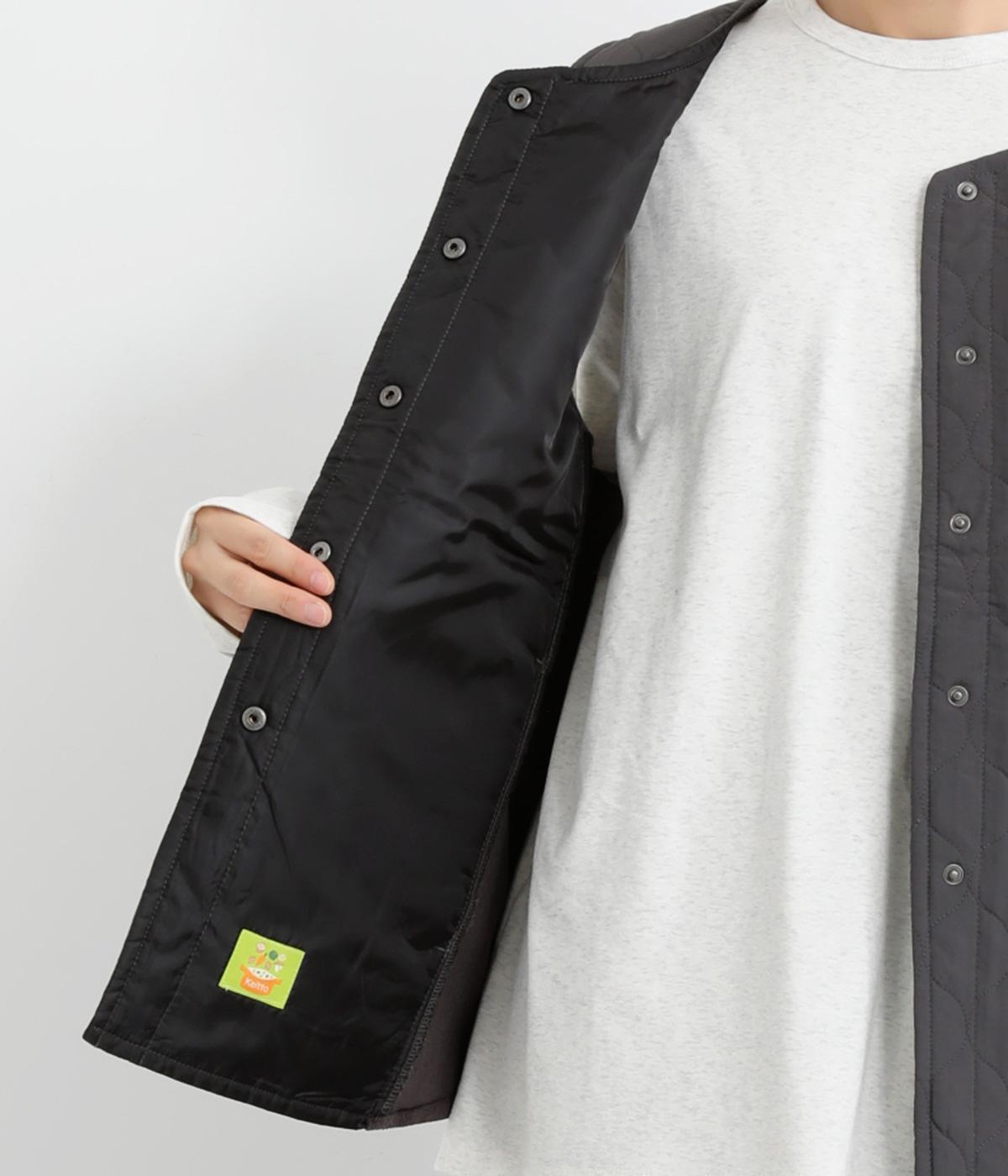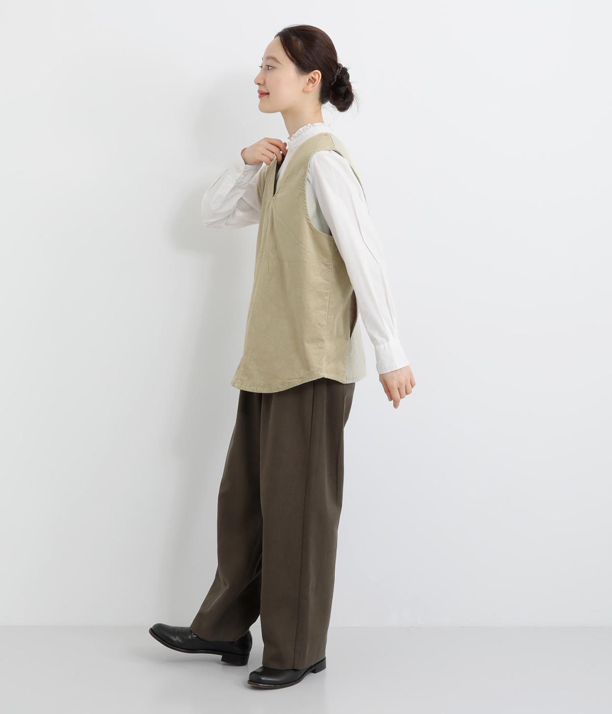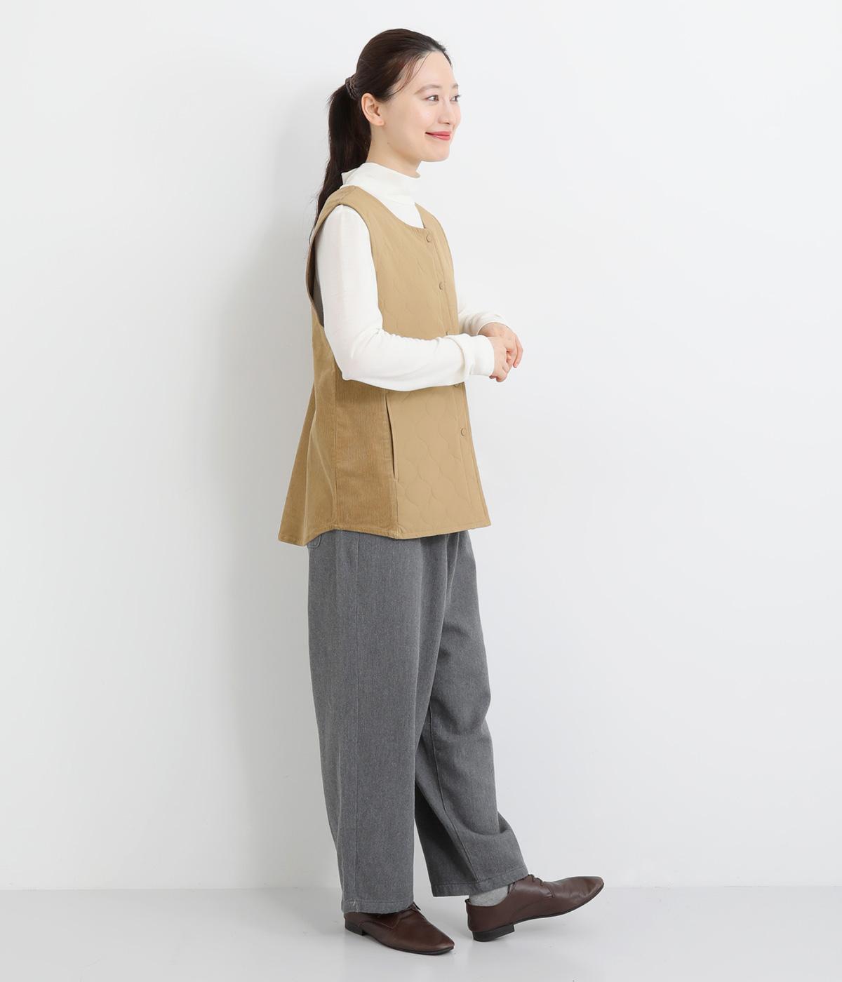 シャリ感のあるナイロン素材に、やわらかなコーデュロイとのコントラストが魅力的。裏地もしっかりと付いていて保温性も抜群。生地の違いを楽しめるベストです。
