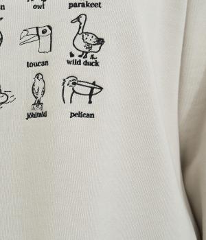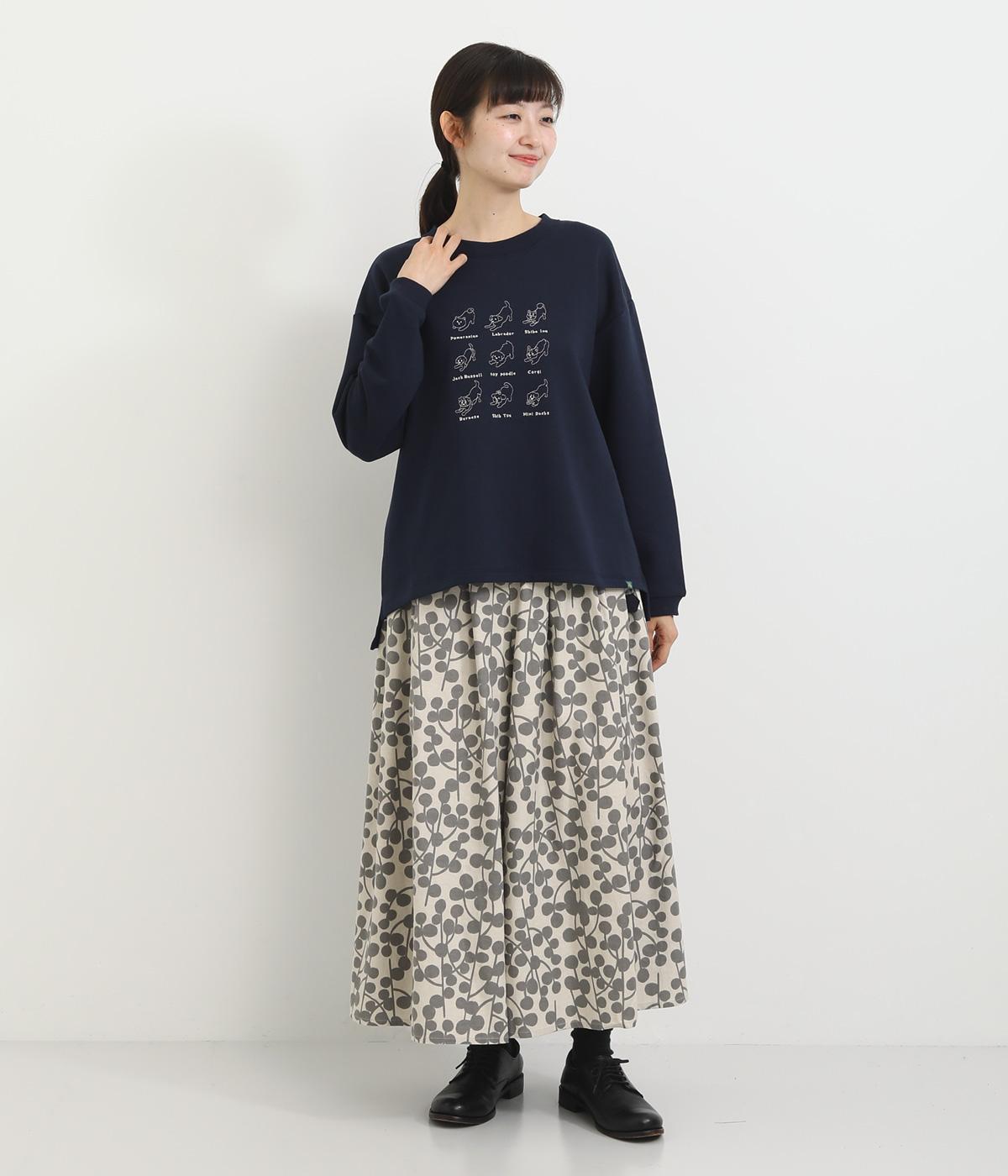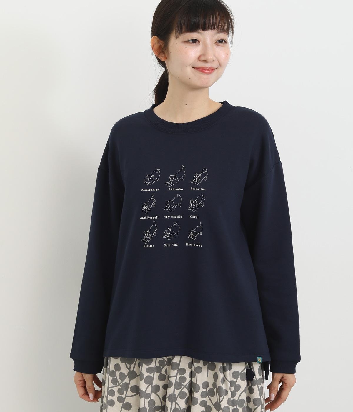 やさしく愛らしい表情の犬や鳥の刺しゅうを胸元にあしらったプルオーバー。ゆったりした身幅でリラックス感ある着心地です。スカートにもパンツスタイルにも合わせやすく、お家でののんびりタイムにも寄り添う一枚です。