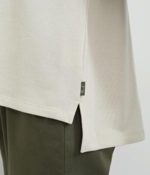 ふんわりとした手ざわりが心地いい裏毛生地を使用しました。ほどよい厚みで保温性も確保。デイリーに取り入れやすい素材感です。