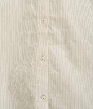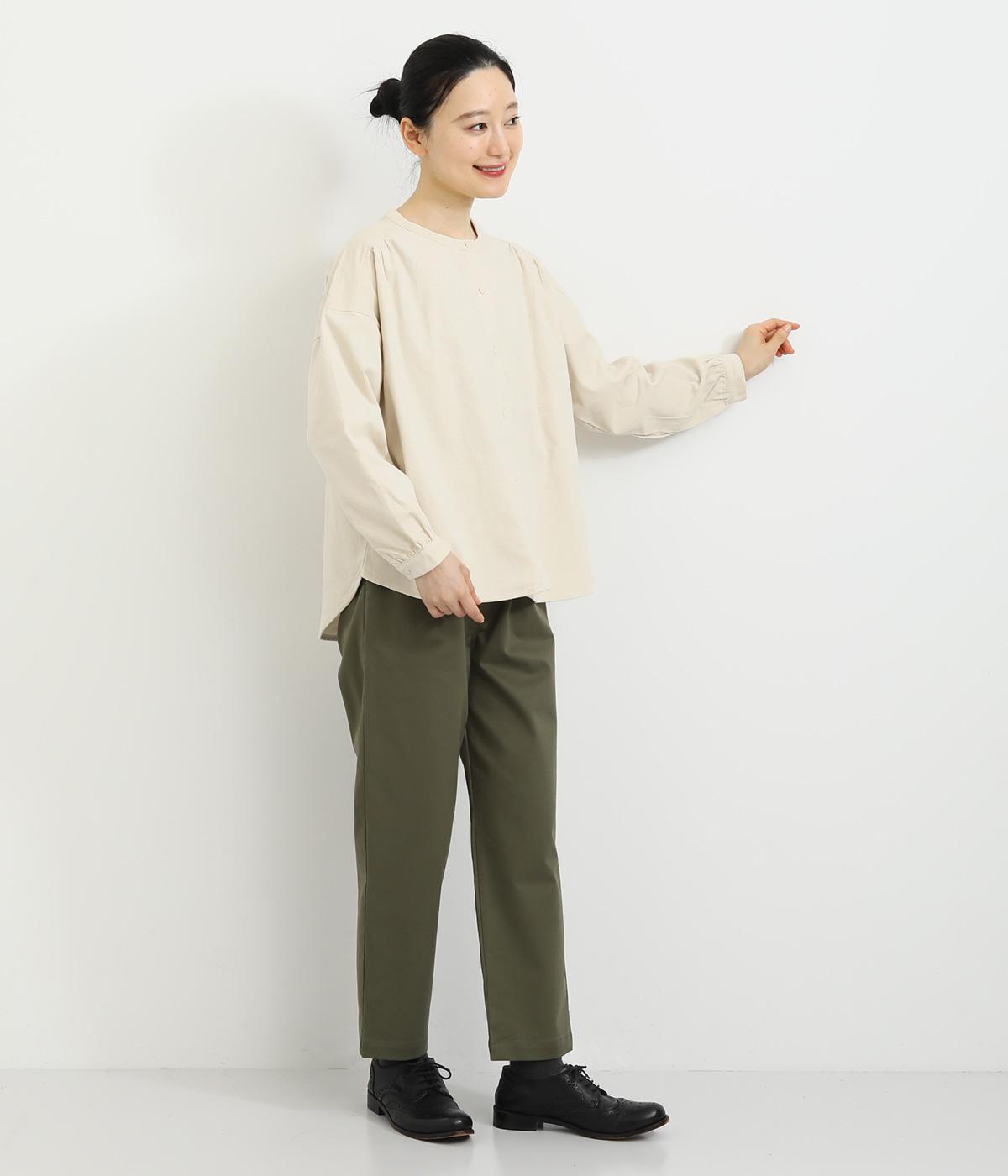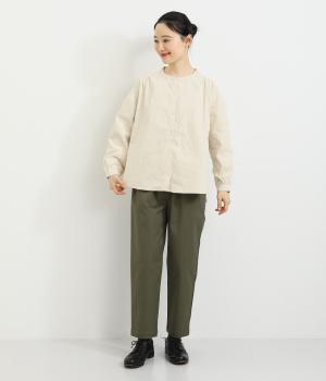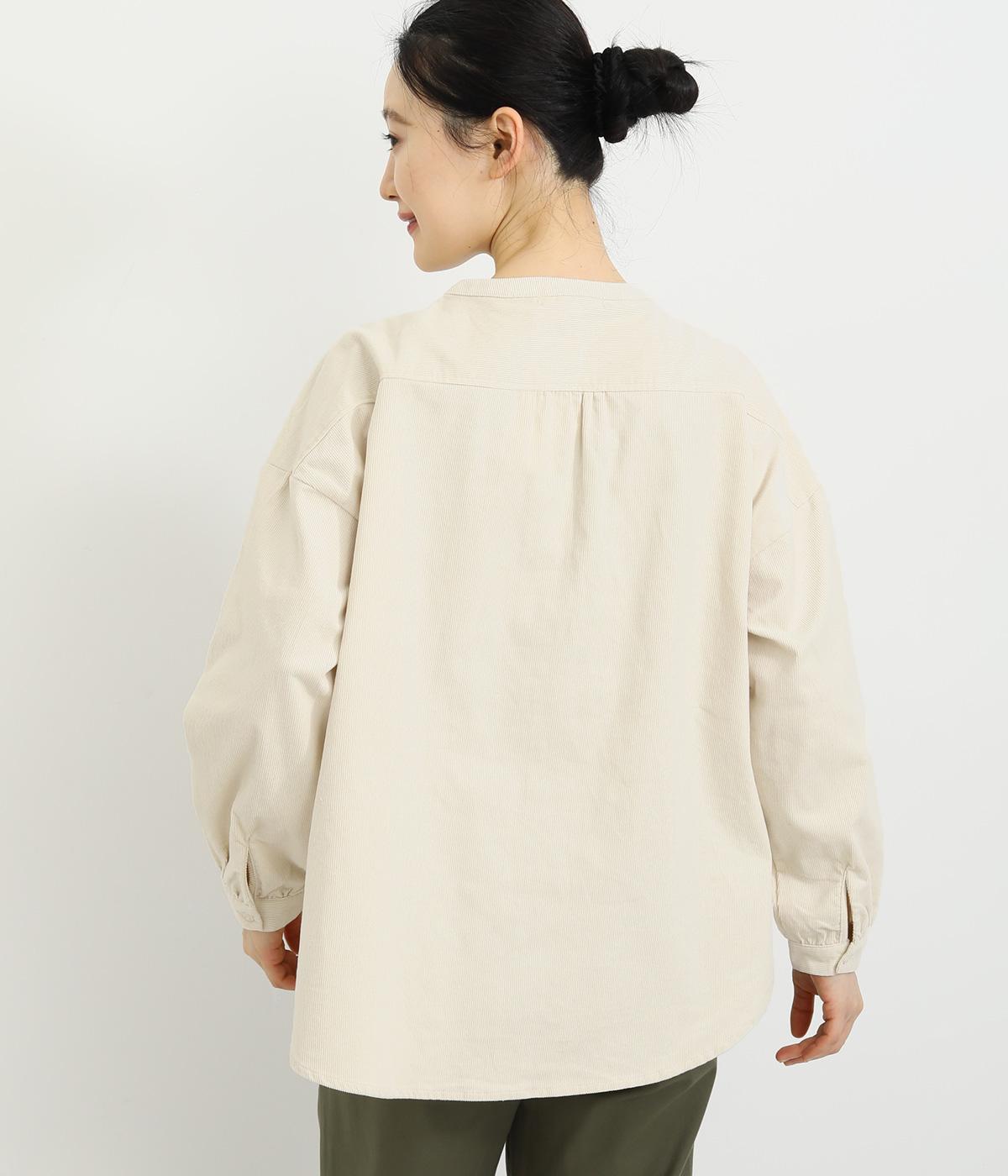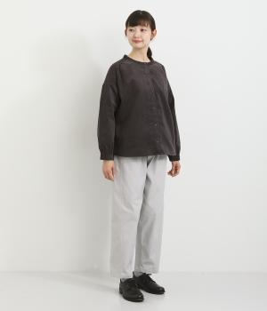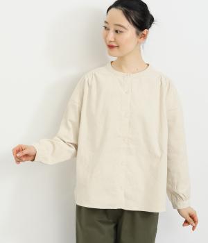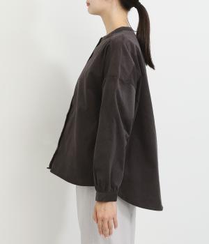 ドロップショルダーでゆったりした身幅にノーカラーでシンプルな佇まいに仕立てたワイドシャツ。前後差をつけた裾がこなれ感を演出します。チノパンなどとのカジュアル合わせも、華やかな柄のスカートと合わせてもスッとなじむ一枚です。