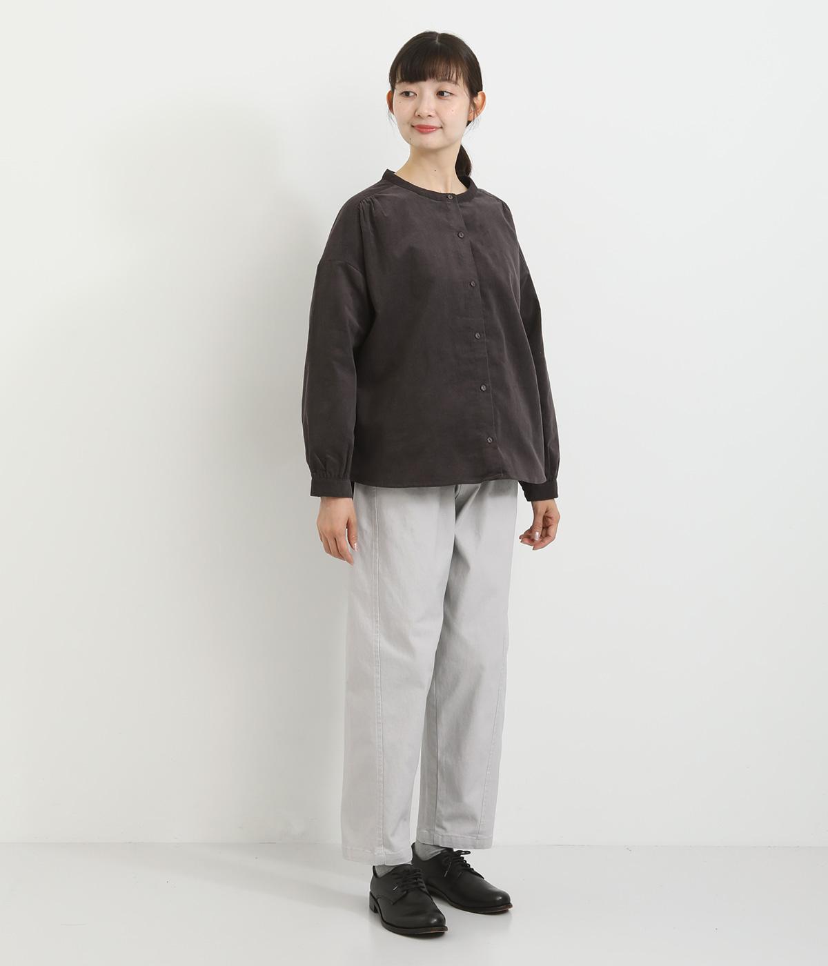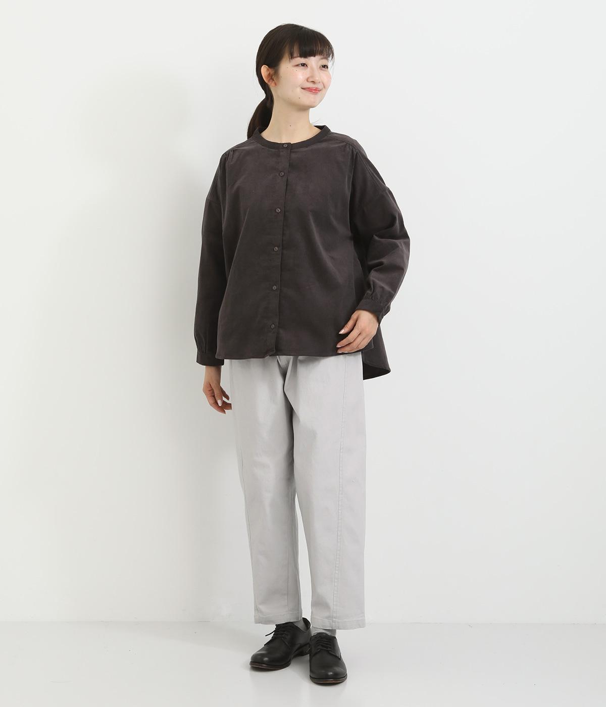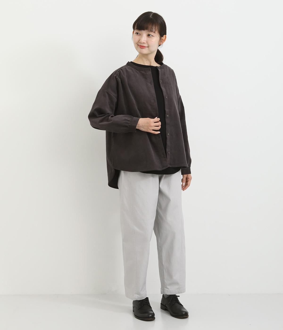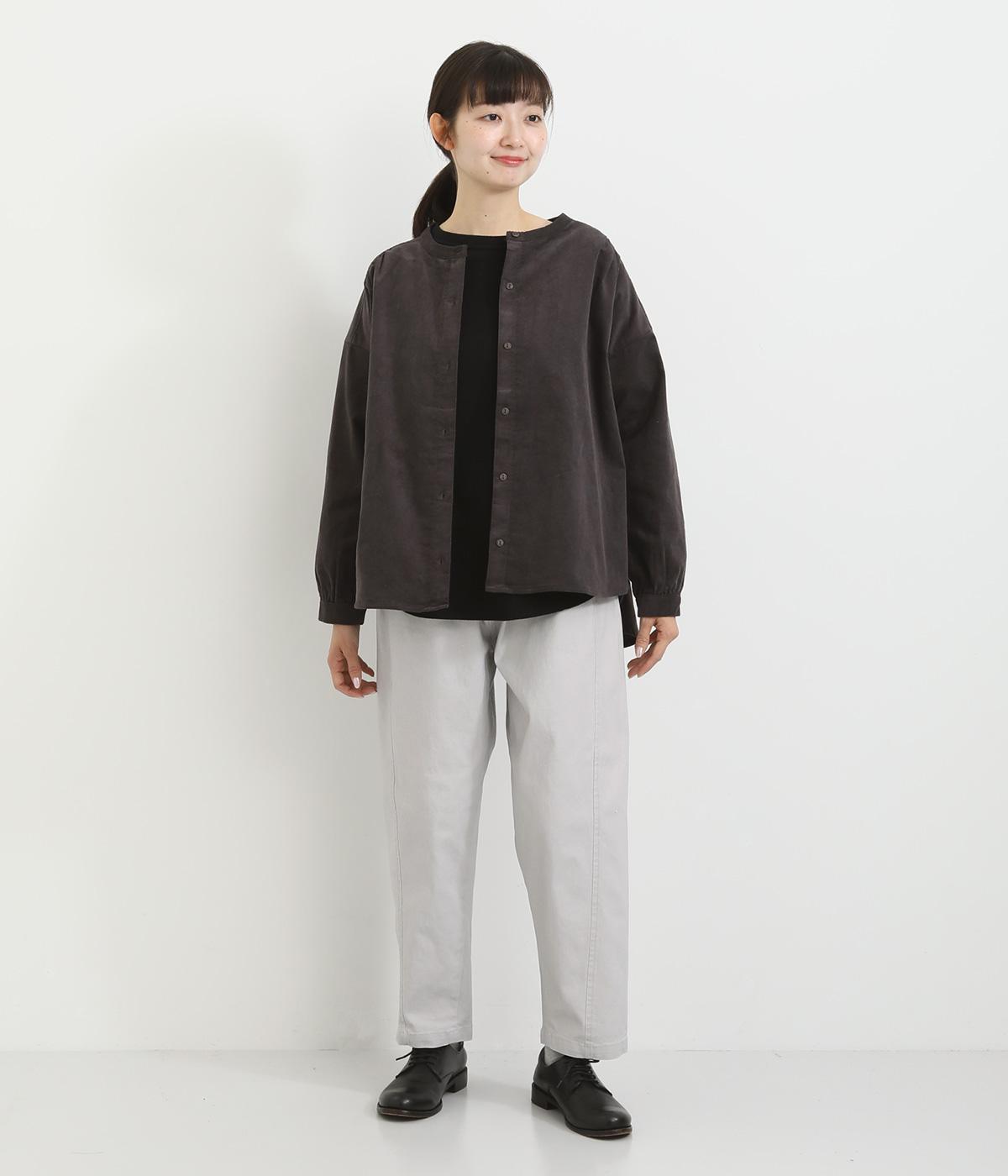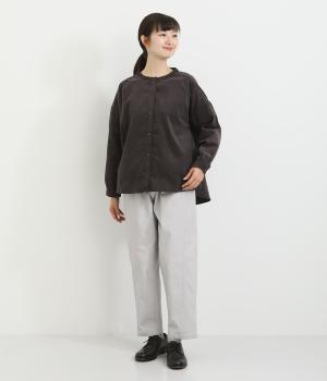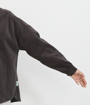 細い畝が上品な印象を与えるコットンコーデュロイ生地を使用しました。ほどよいハリと自然な風合いが魅力です。存在感がありながらも軽やかな着心地でサッと羽織りやすい素材感です。