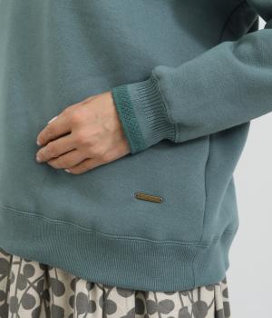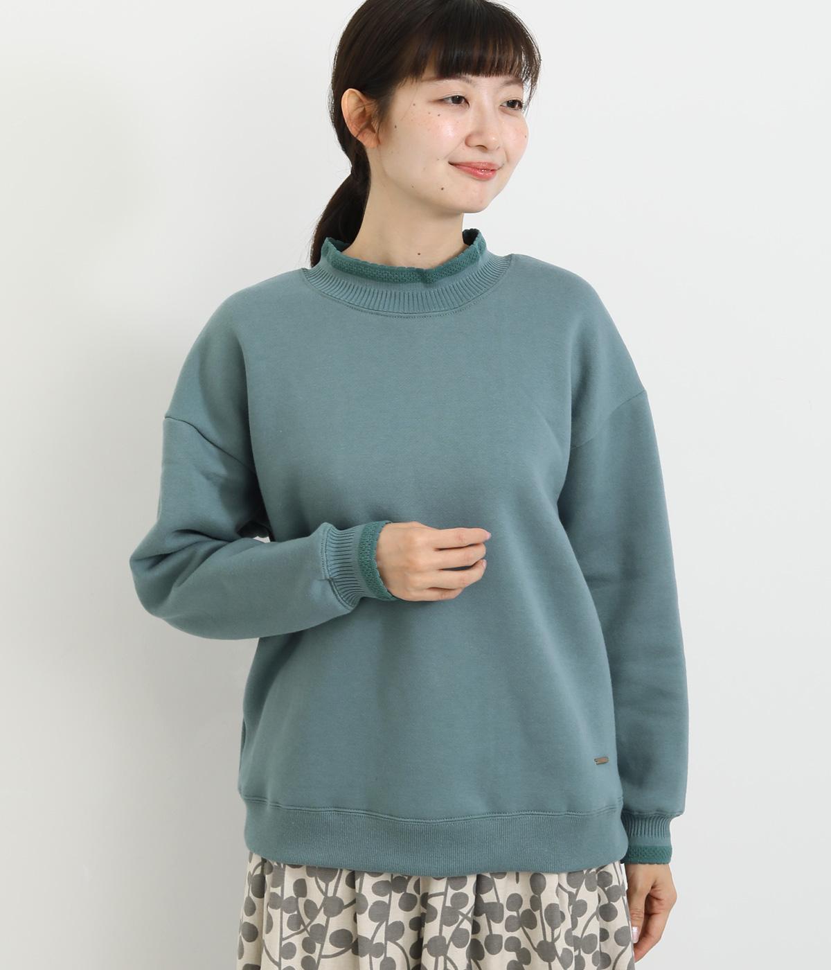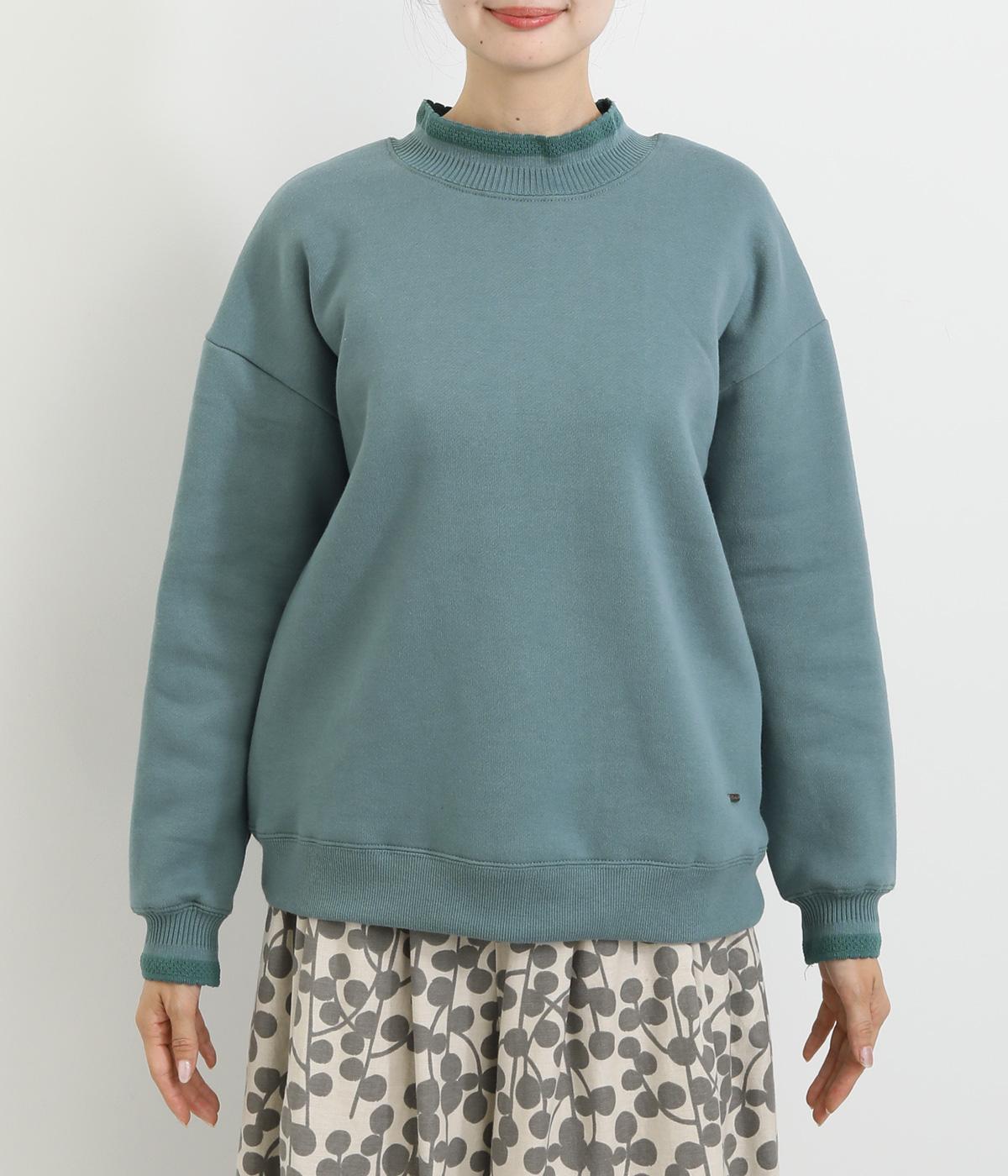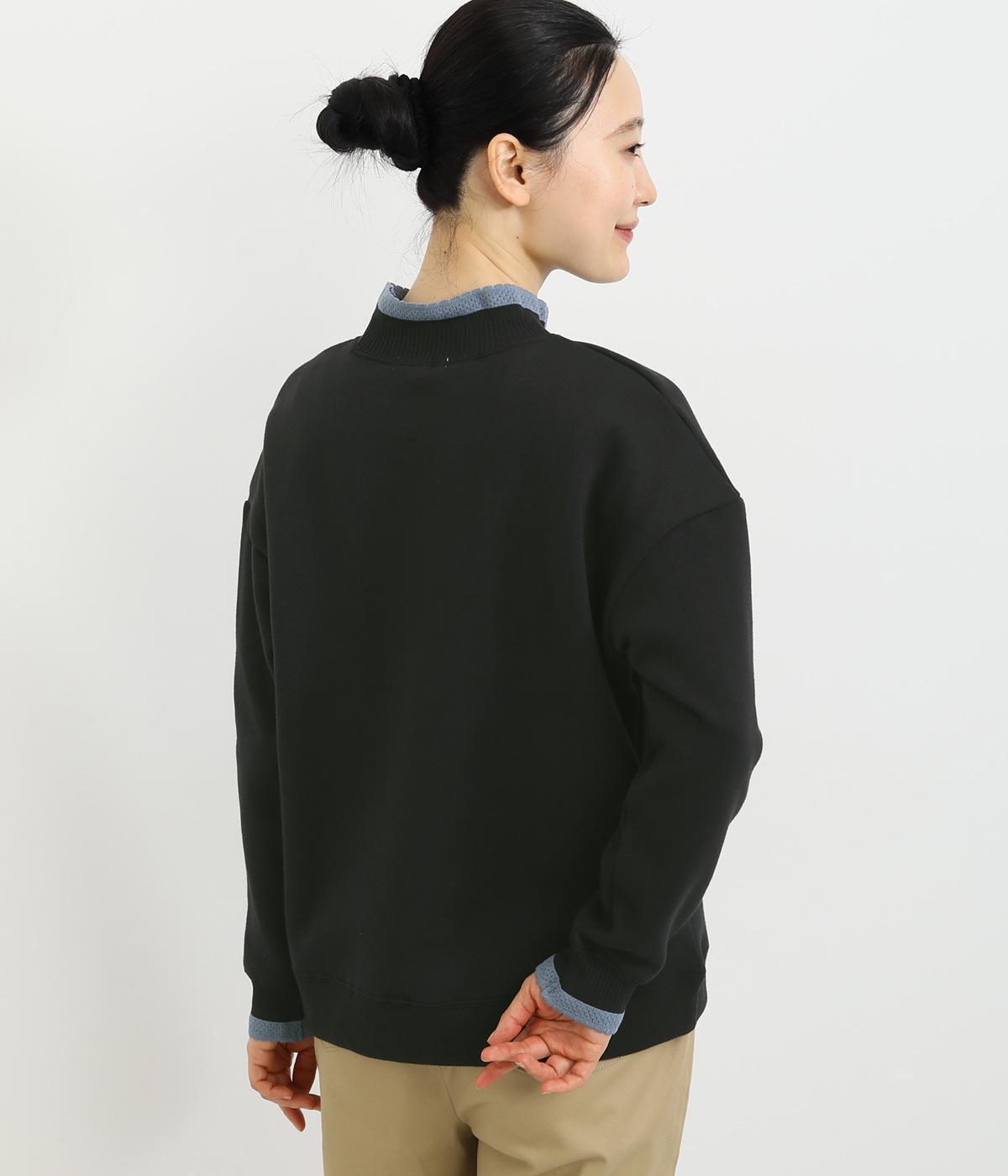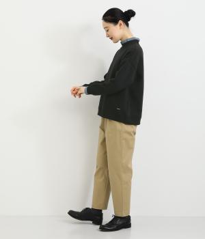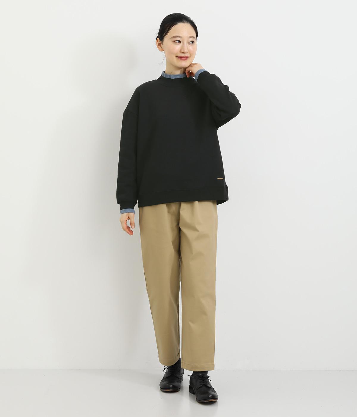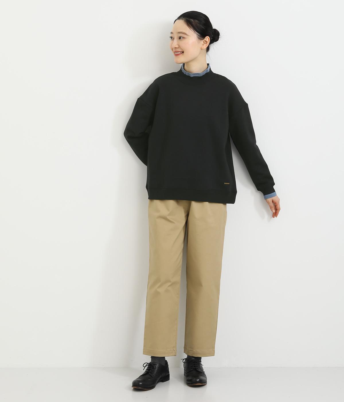 ほどよい厚みのある柔らかいコットンポリエステル生地を使用。襟と袖口のリブには肌あたりのやわらかい編み立てをあしらいました。カジュアルに上品さをプラスした素材感です。