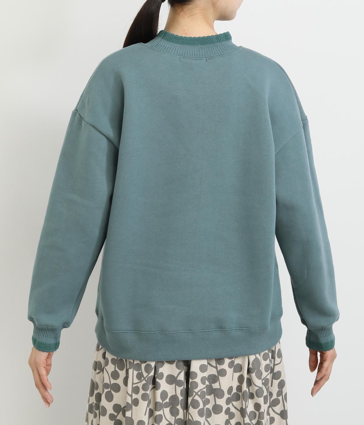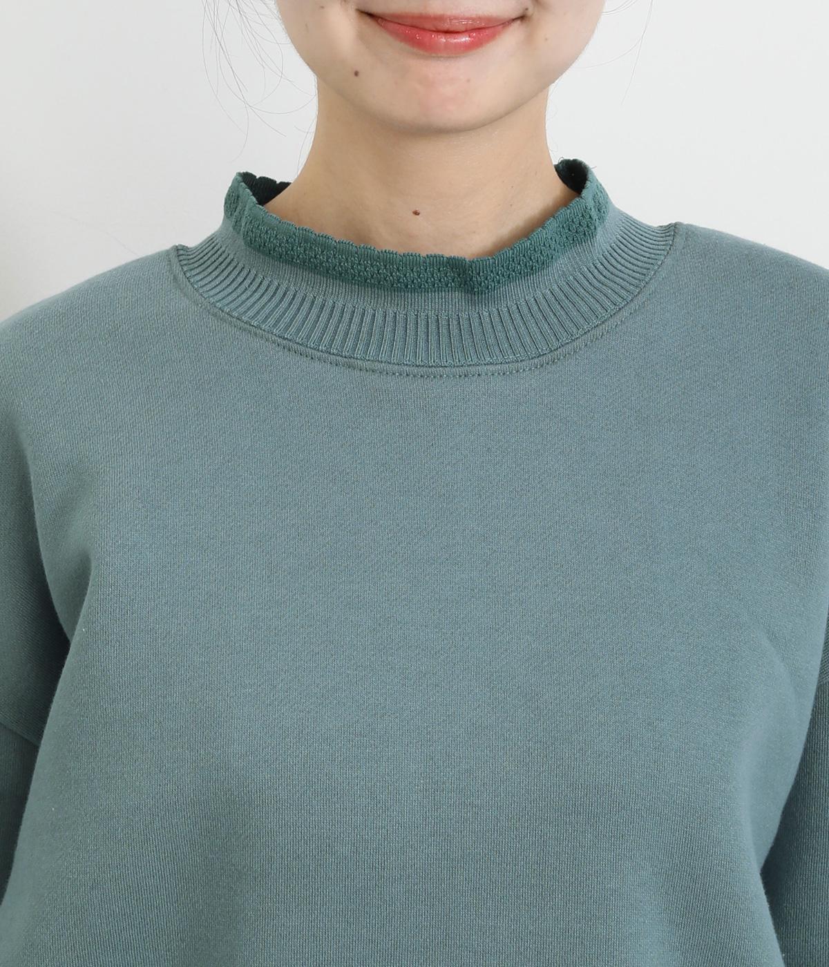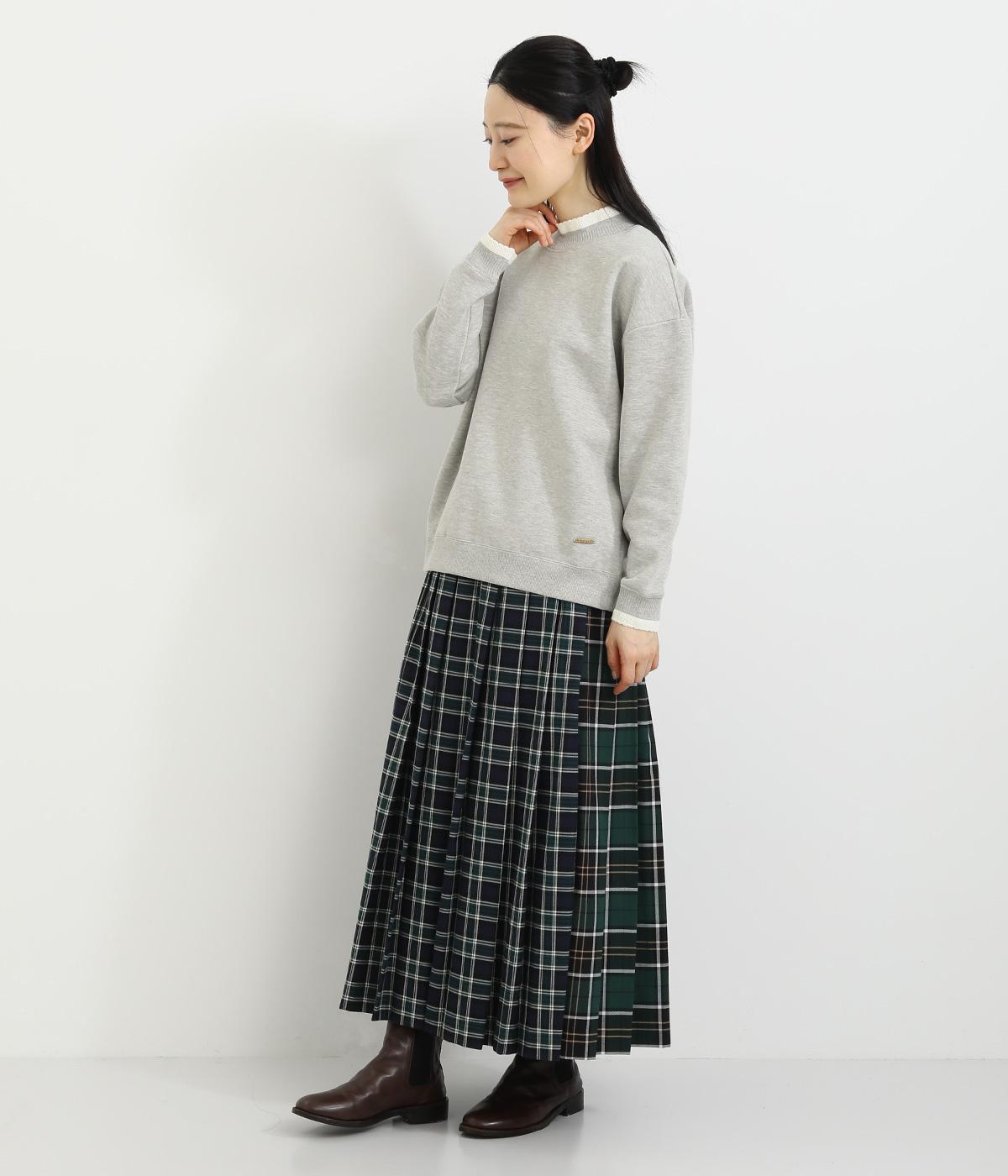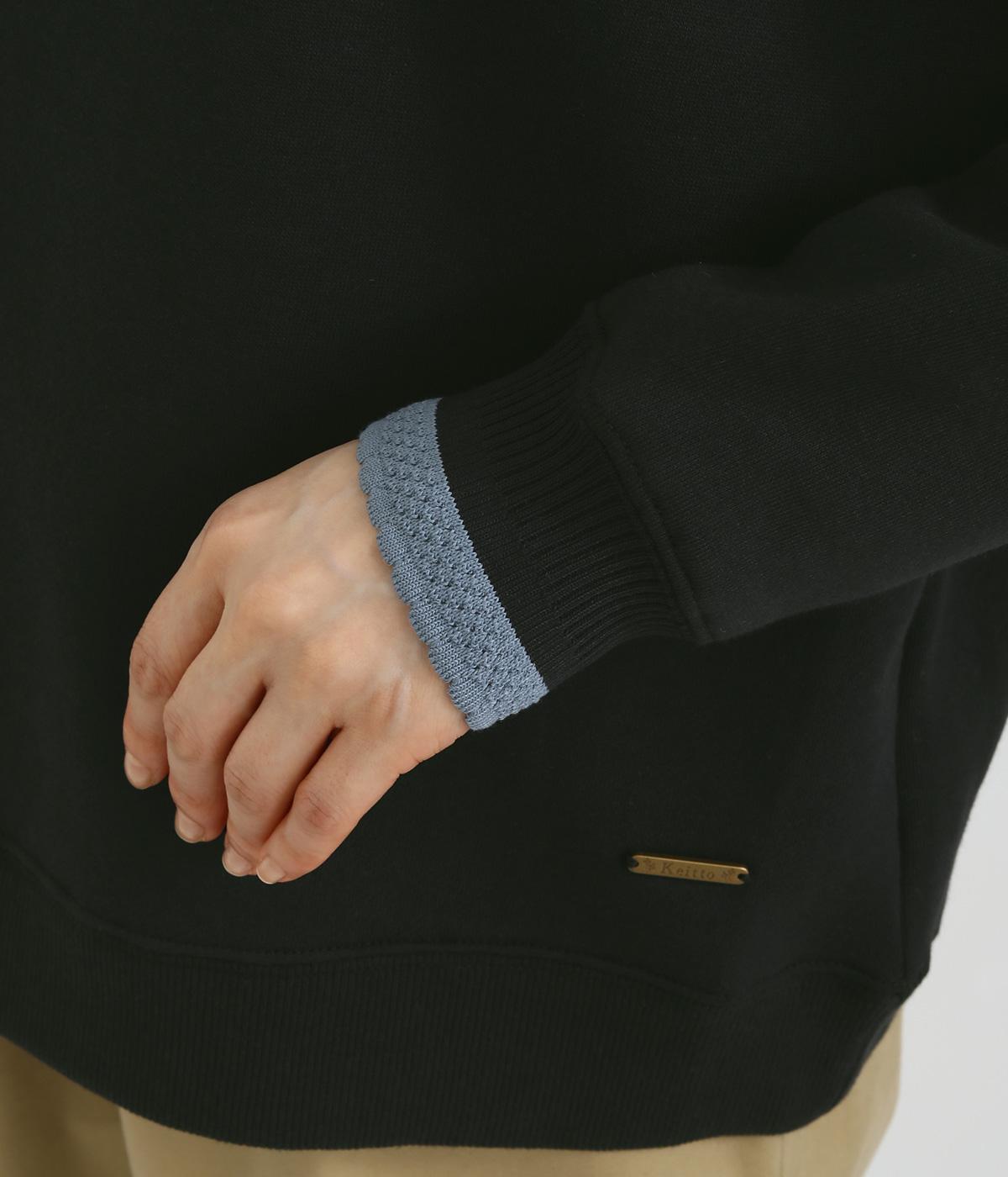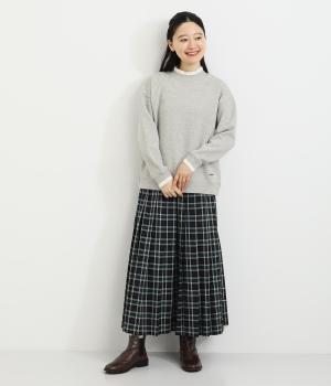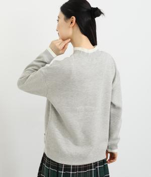 配色にした編み立てが目をひくプルオーバー。カジュアルなプルオーバーにきれいめなポイントをプラスしました。一枚でスタイリングが完成するアイテムです。扱いやすい素材でデイリーに着まわせます。