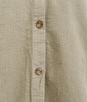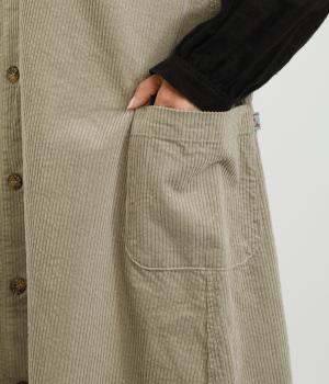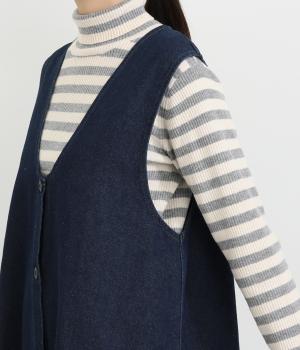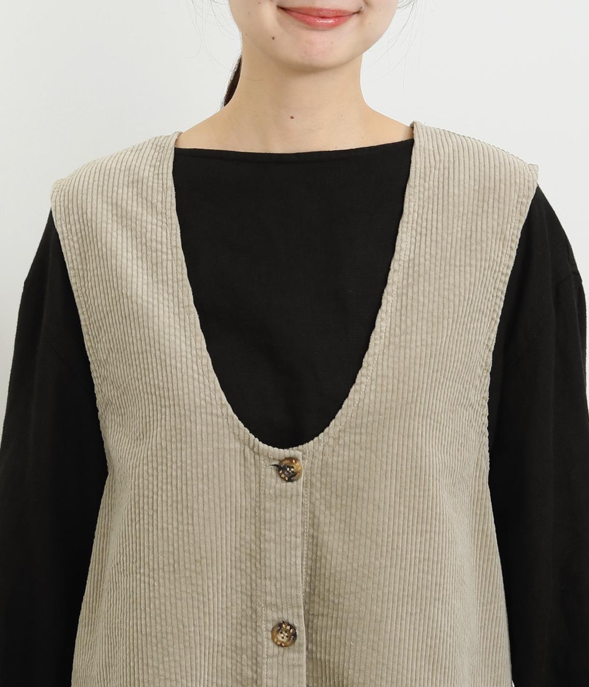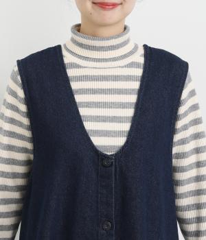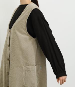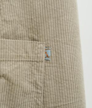ライトカーキはほんのり光沢のあるコーデュロイ生地で、インディゴネイビーはほどよいハリのデニム生地で仕立てました。どちらも軽やかでインナーと重ねやすく、やさしい風合いが魅力の素材感です。