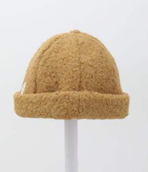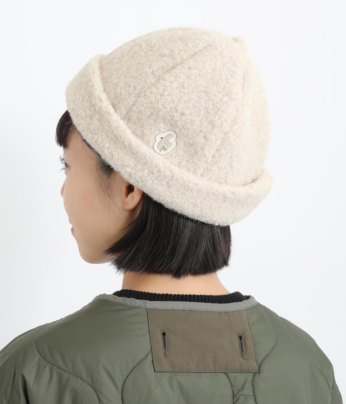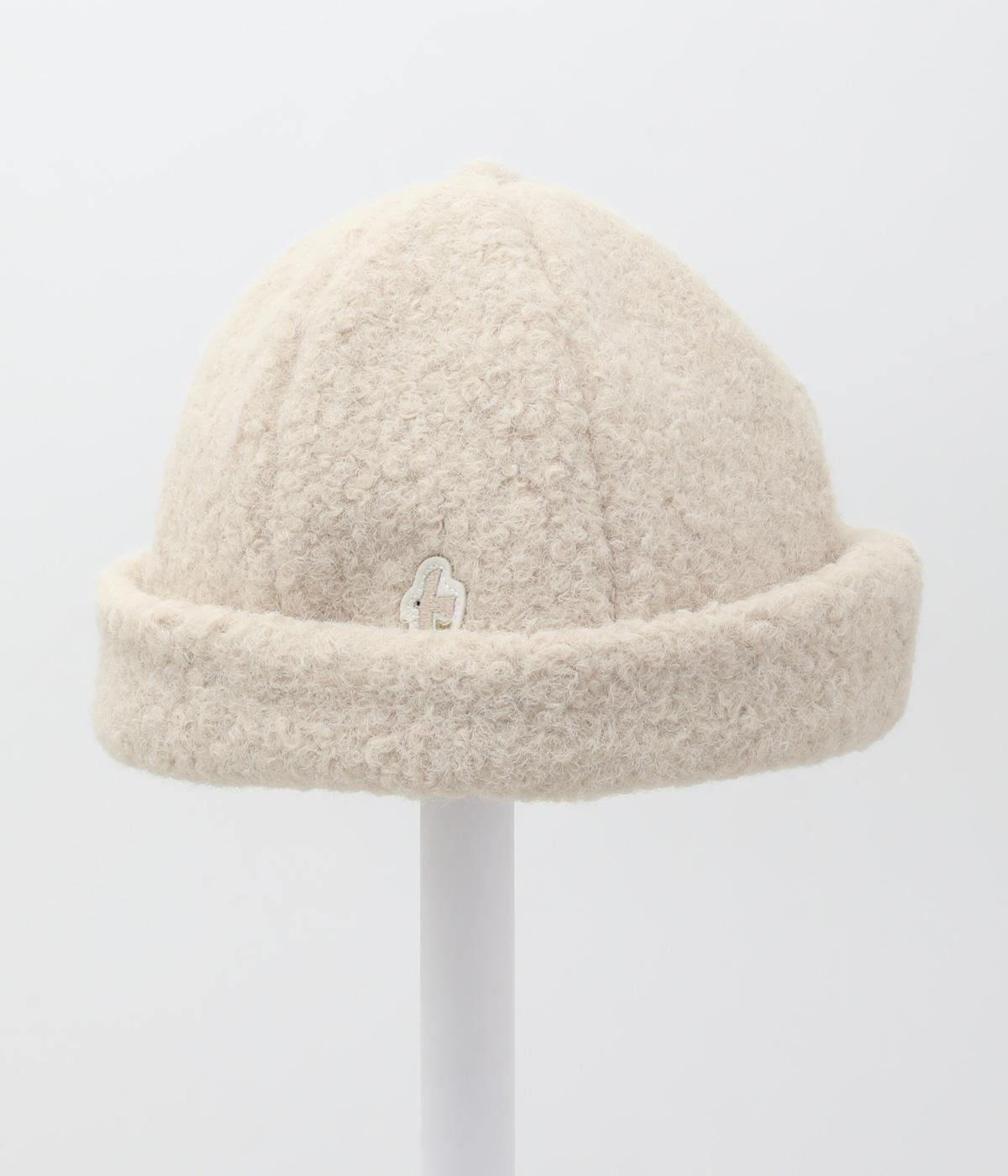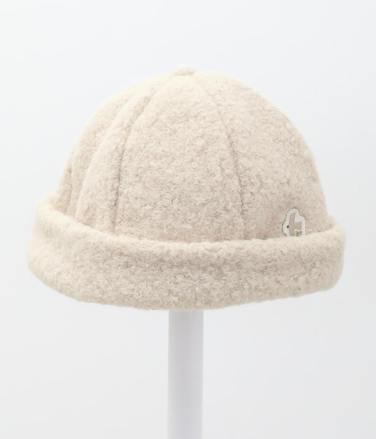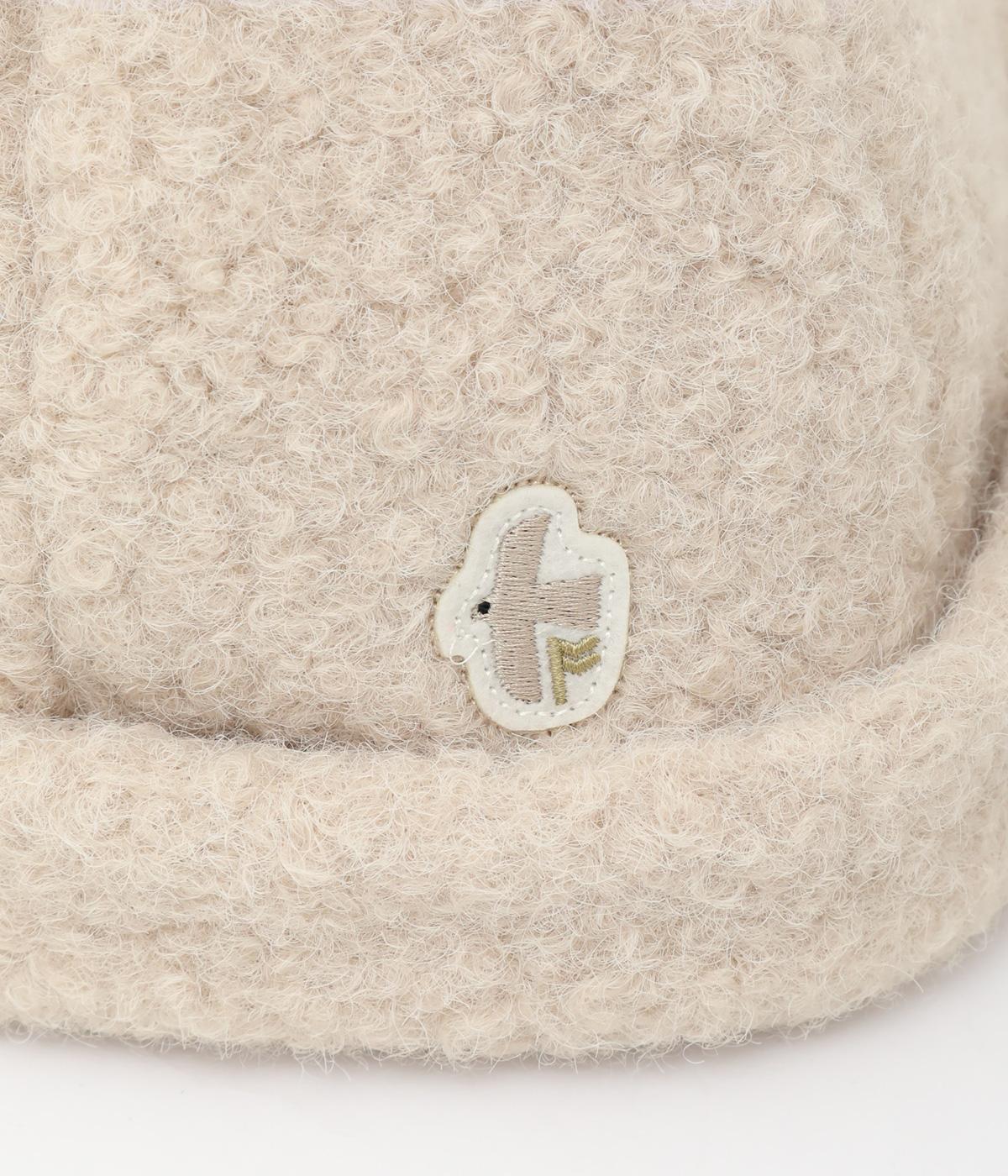 ころんとしたシルエットのボアロールキャップ。スイートな印象で大人のカジュアルスタイルのアクセントにおすすめです。隠れたワッペンを出して着用もできます。