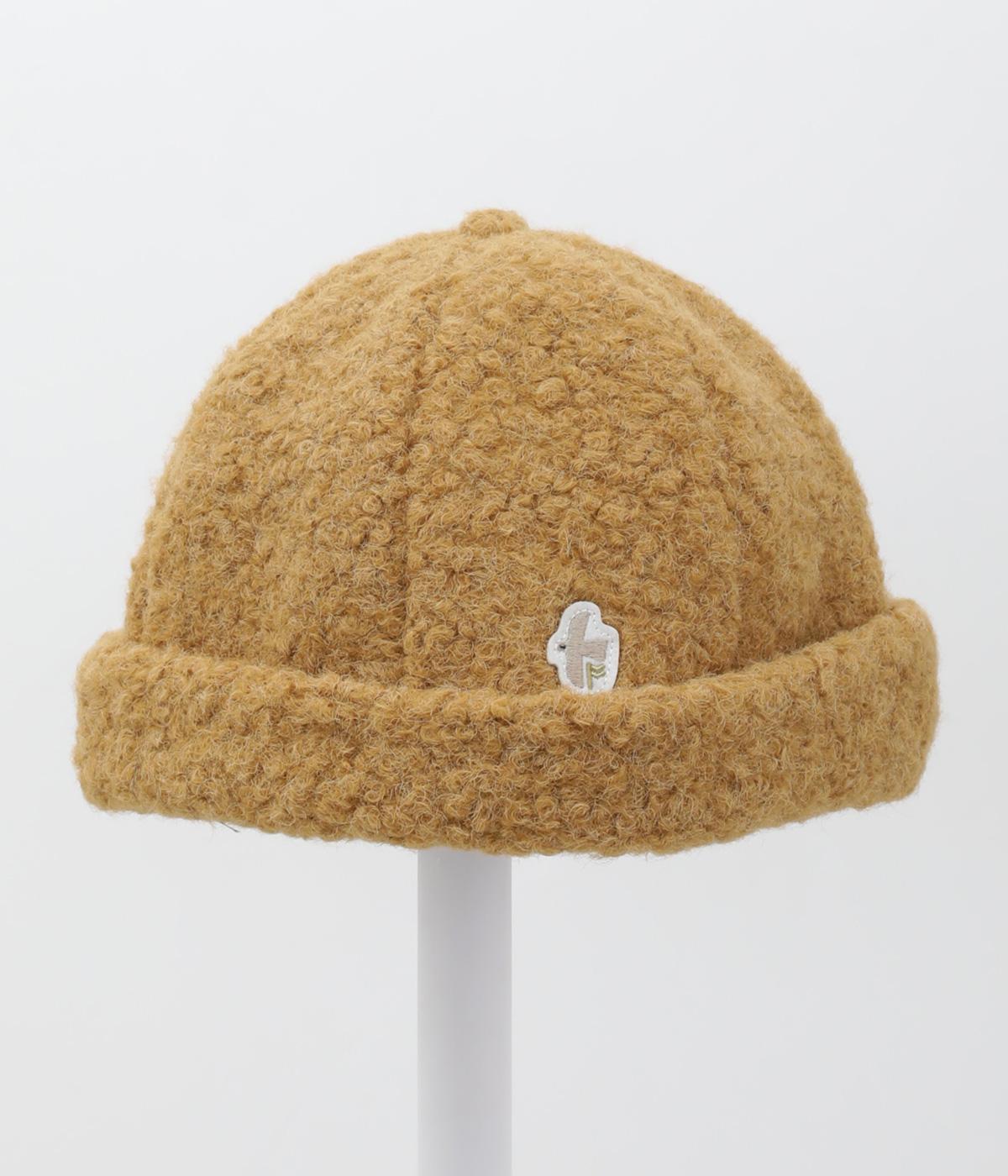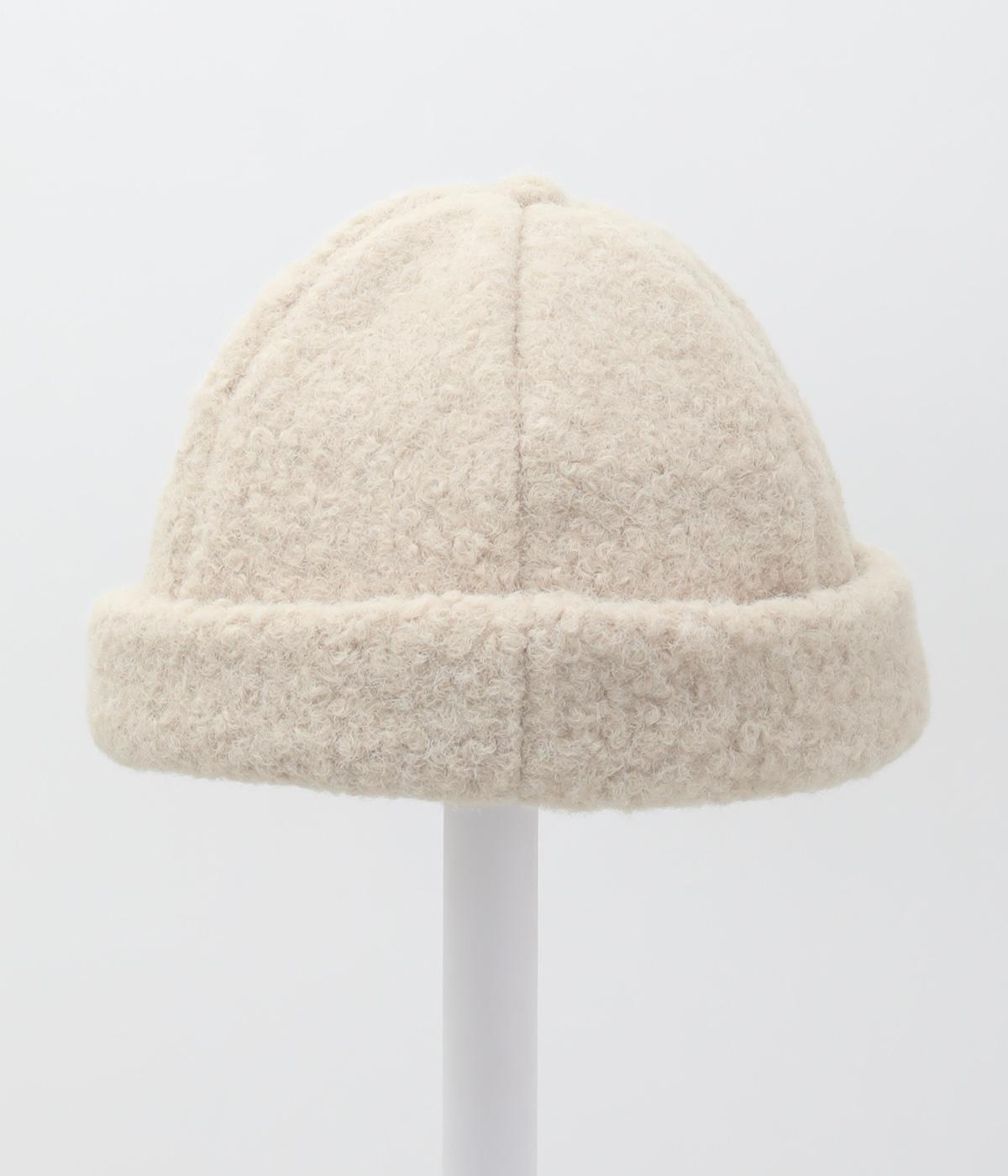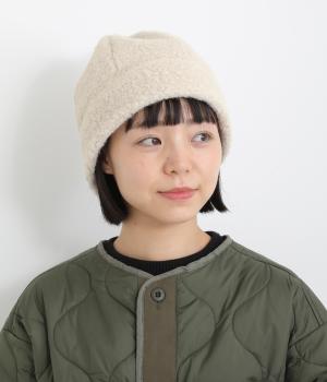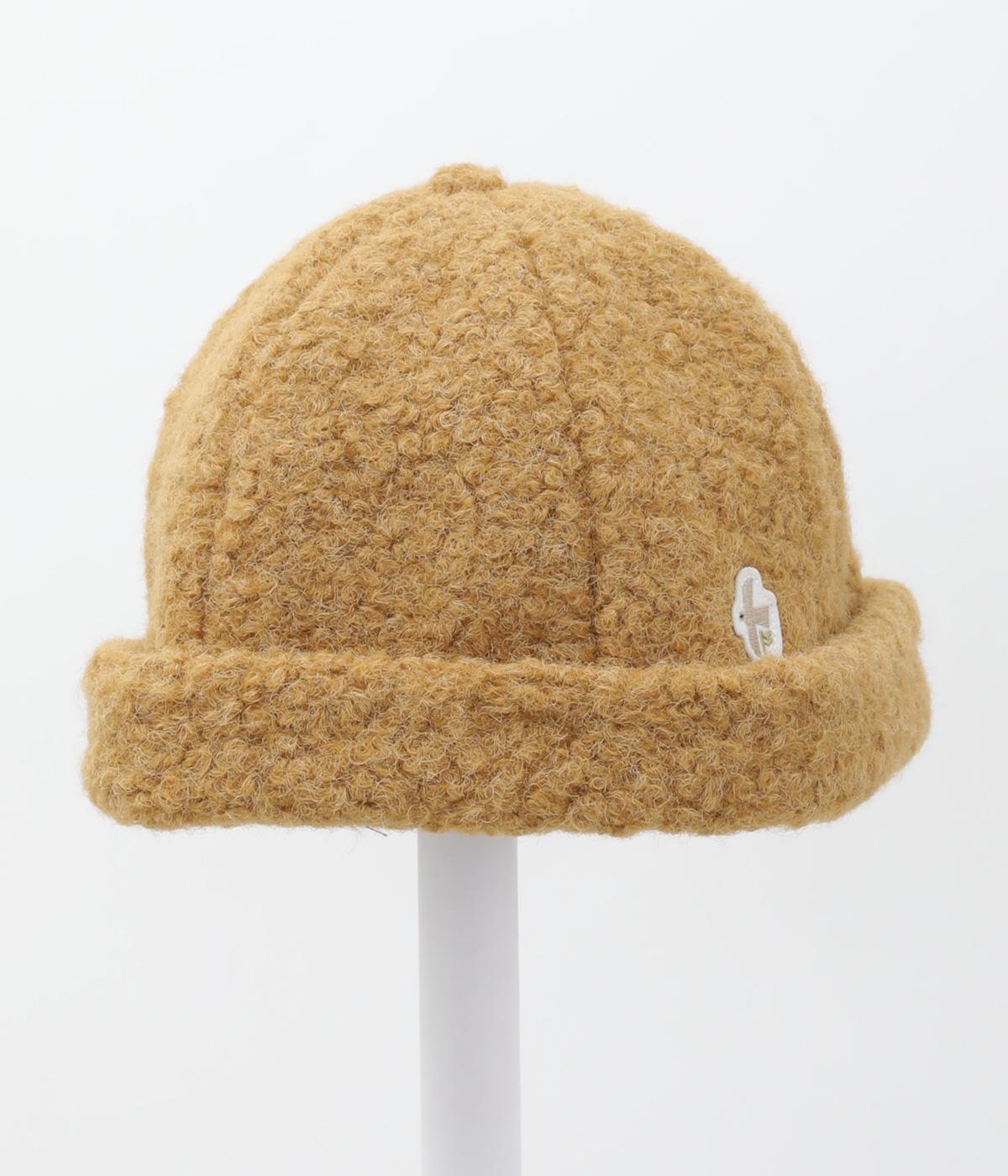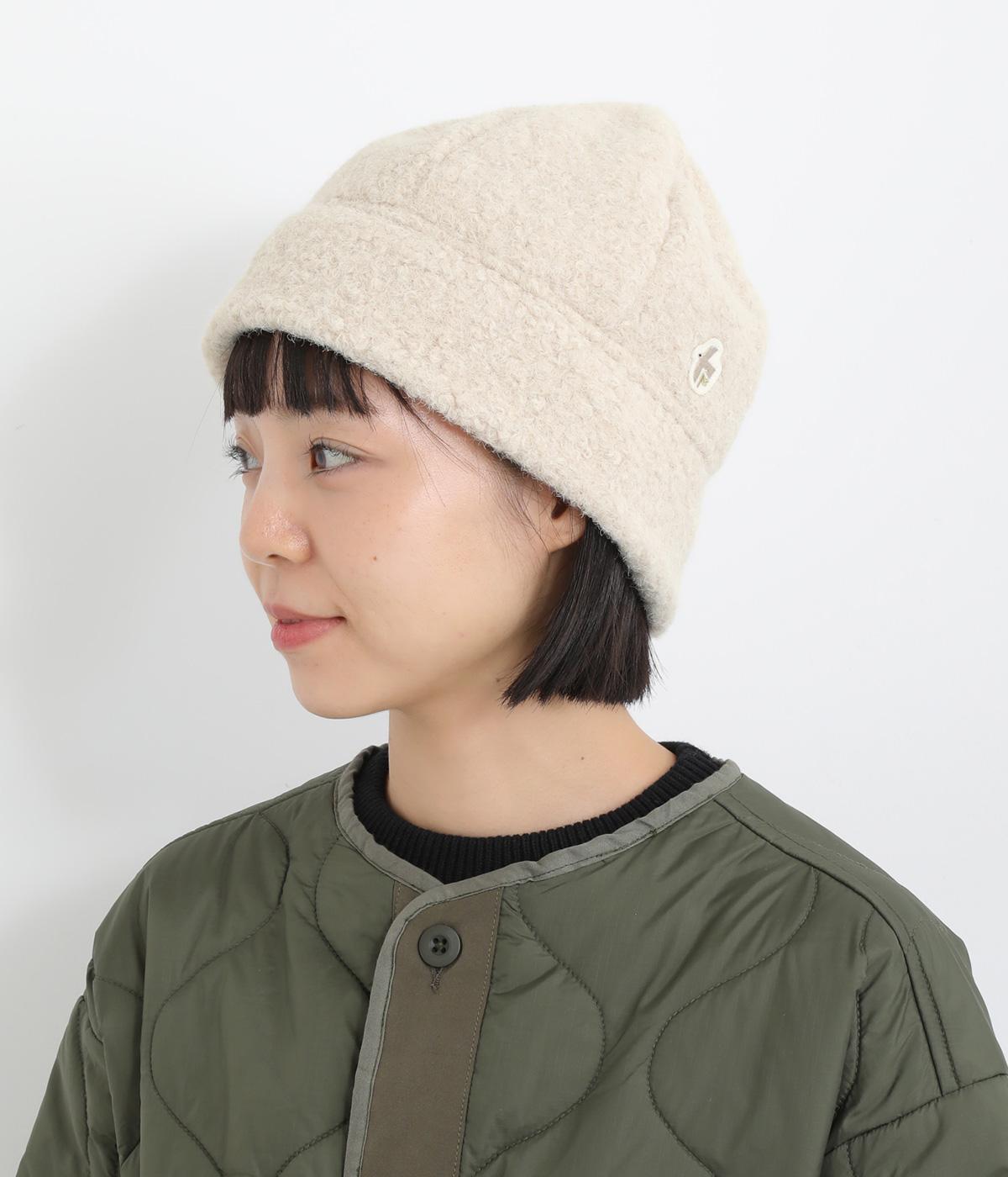 ころんとしたシルエットのボアロールキャップ。スイートな印象で大人のカジュアルスタイルのアクセントにおすすめです。隠れたワッペンを出して着用もできます。