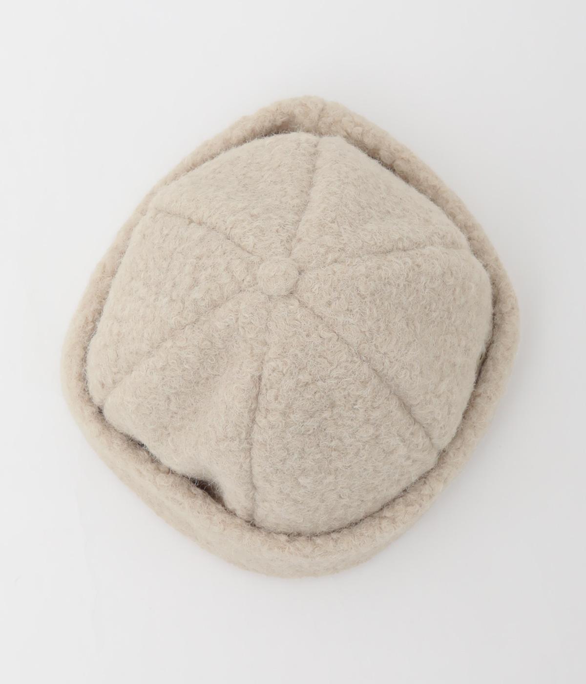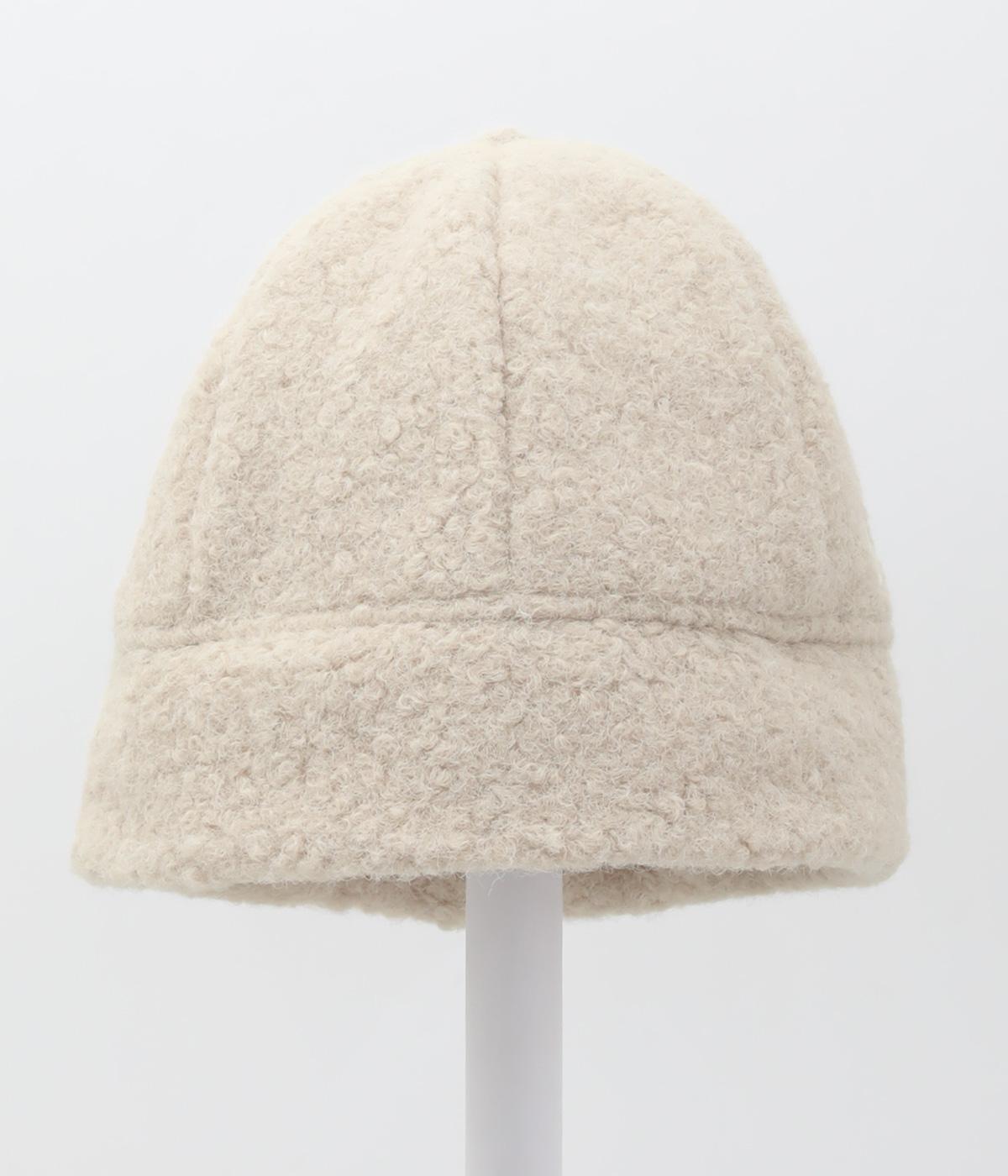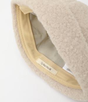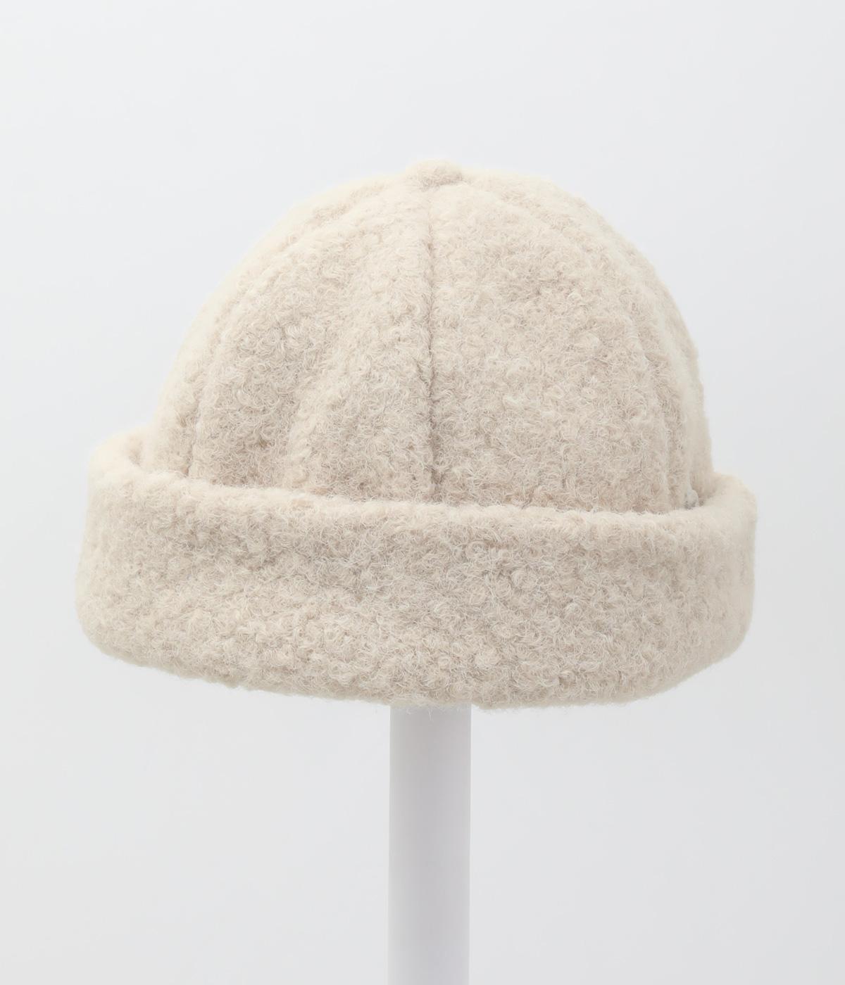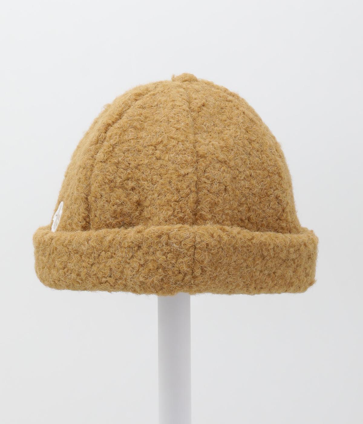 ころんとしたシルエットのボアロールキャップ。スイートな印象で大人のカジュアルスタイルのアクセントにおすすめです。隠れたワッペンを出して着用もできます。
