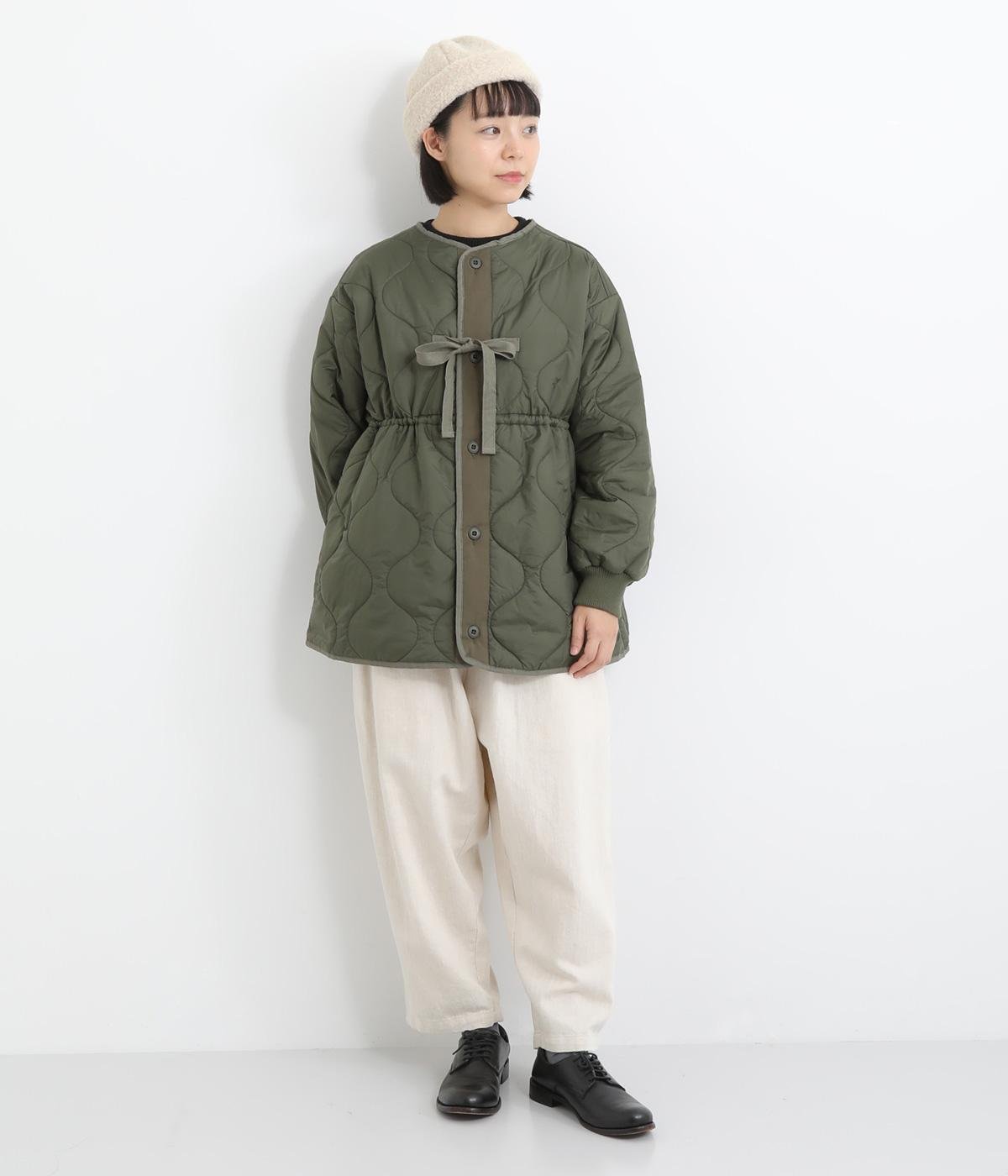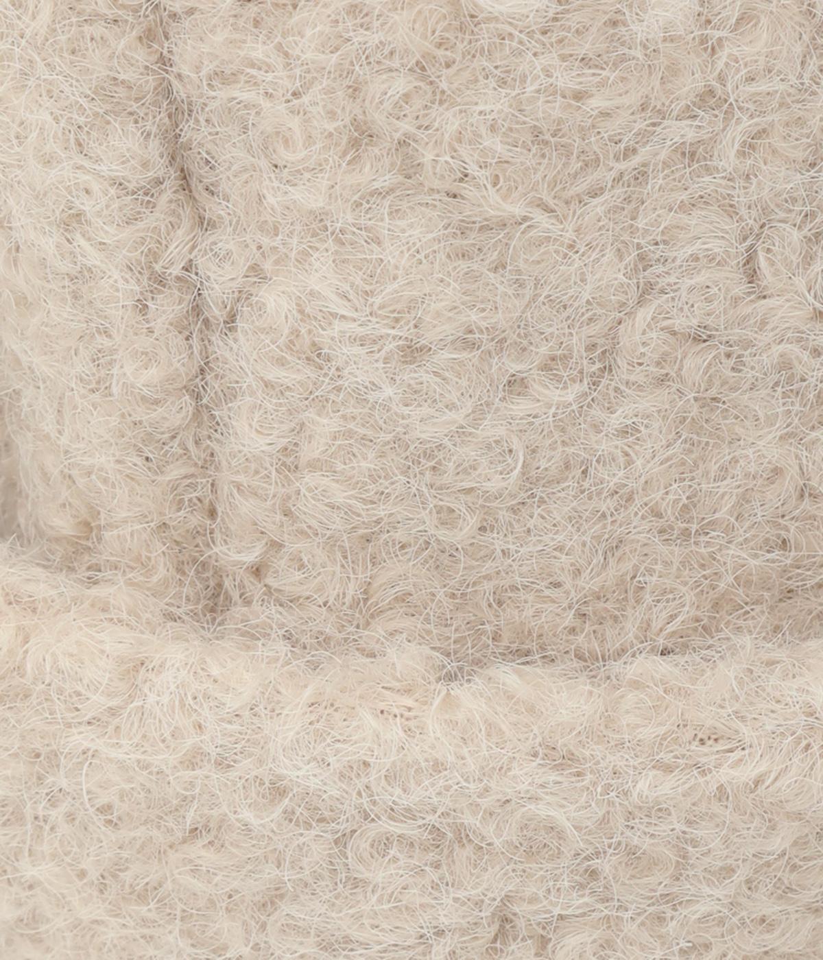 厚手のボアが印象的なポリエステル素材です。ボリューム感がとてもかわいらしく、軽くて保温性も◎。裏地付きのしっかりとしたつくりで、ごわつきを防げます。