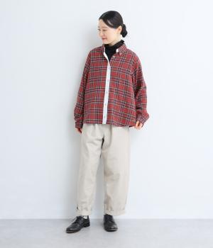 ふっくらとしたソフトな起毛感とやわらかな風合い、軽くてあたたかな着心地が魅力のコットン混フランネル生地。織りでチェック柄を表現し、生地に奥行きを持たせました。