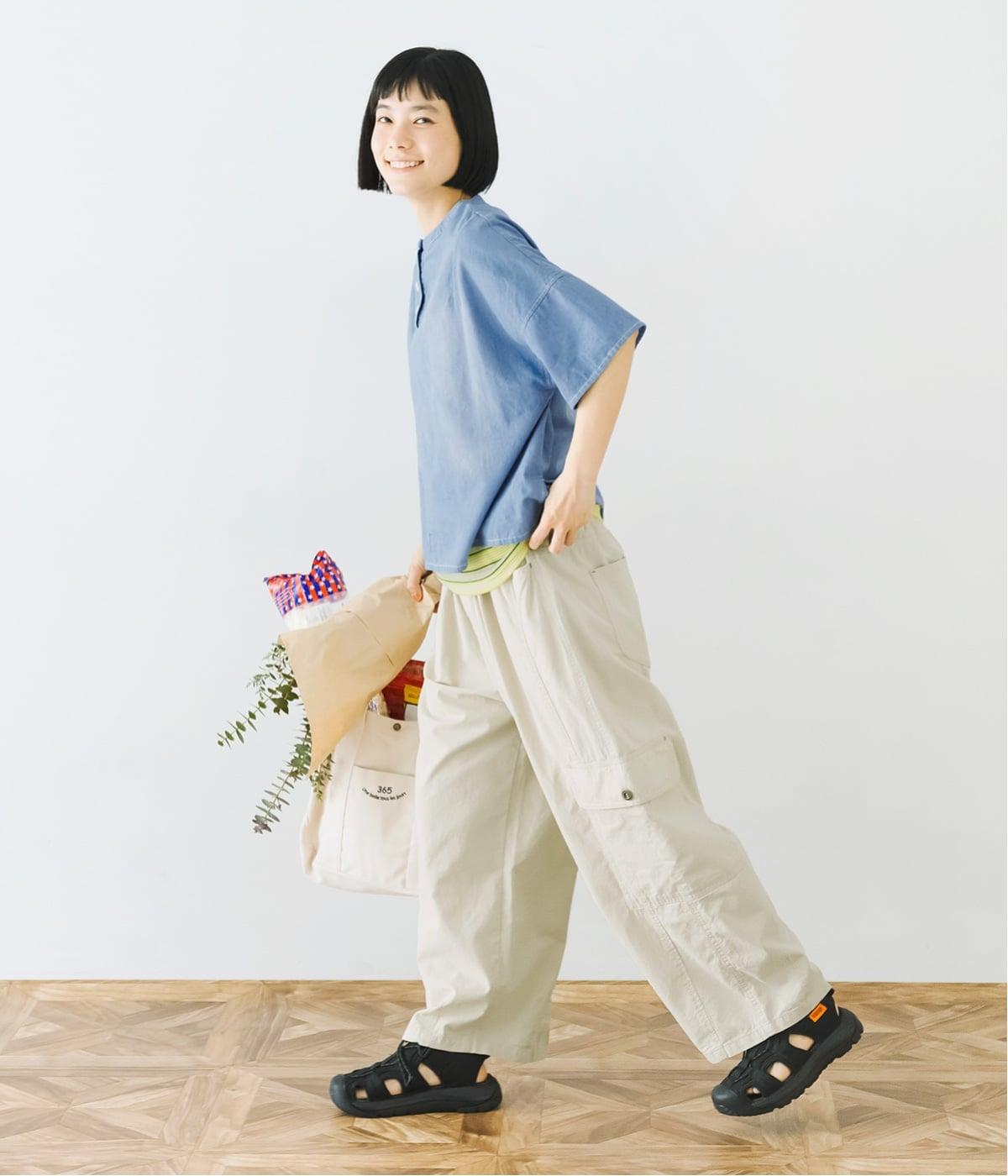 軽やかなライトオンスデニム素材を使用しています。表面には起毛感を感じるやわらかな風合いがあり、やさしい肌ざわりに仕上げました。しなやかに動きに寄り添い、快適な着心地を叶えます。