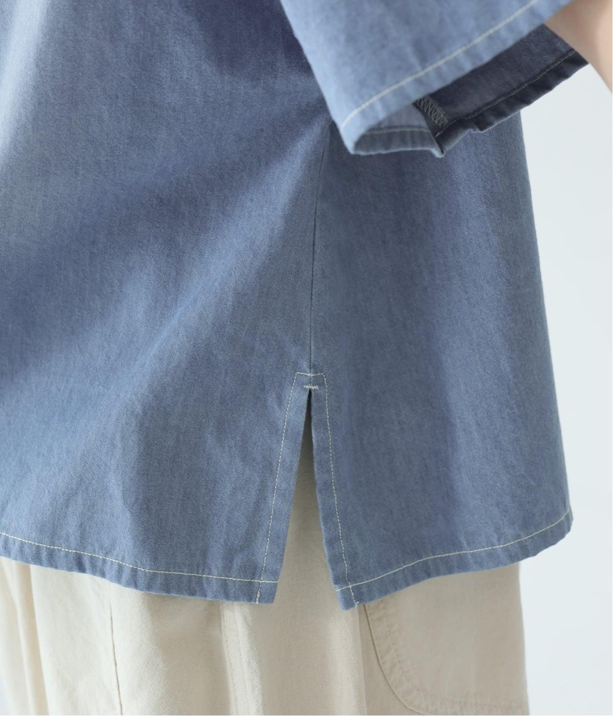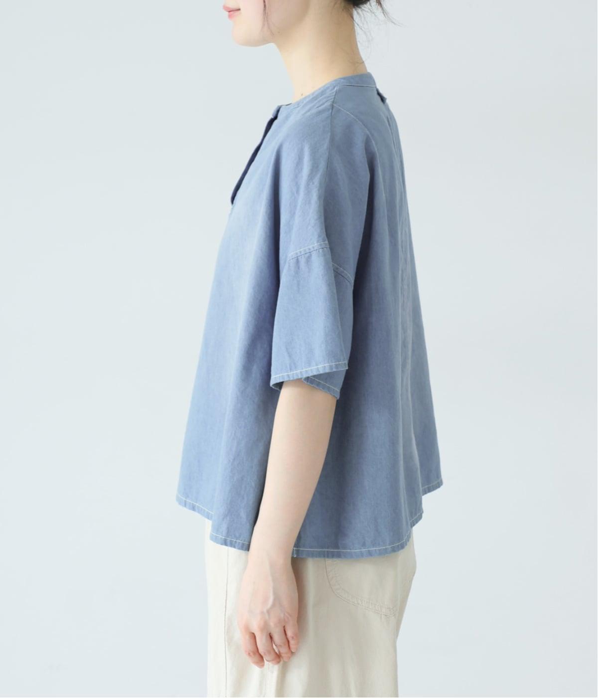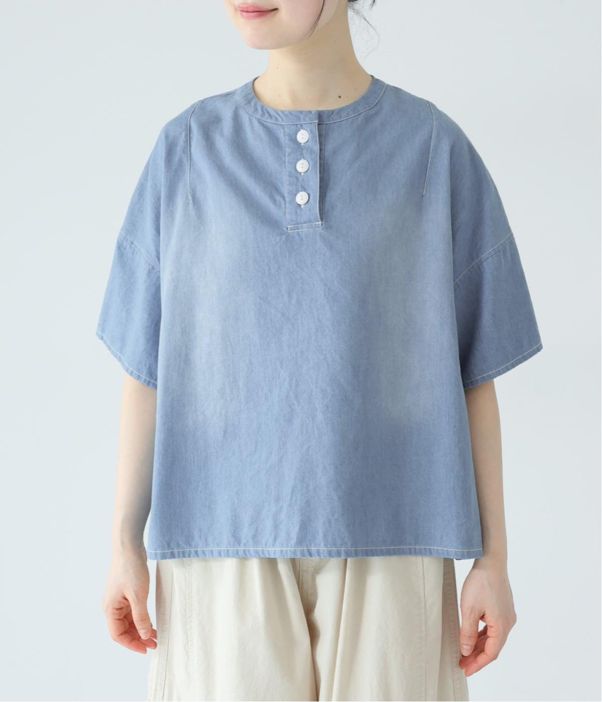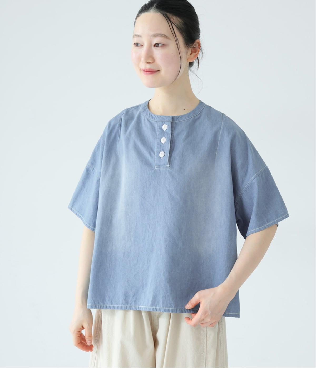 体のラインを拾いにくいボックスシルエットに、抜け感のあるヘンリーネックを添えたプルオーバーです。肩のダーツが立体感を生み、自然な丸みのあるフォルムを演出します。うしろ襟下のループは、フックにかけられる実用的な仕様。ワークウェアからヒントを得た、こだわりのポイントです。