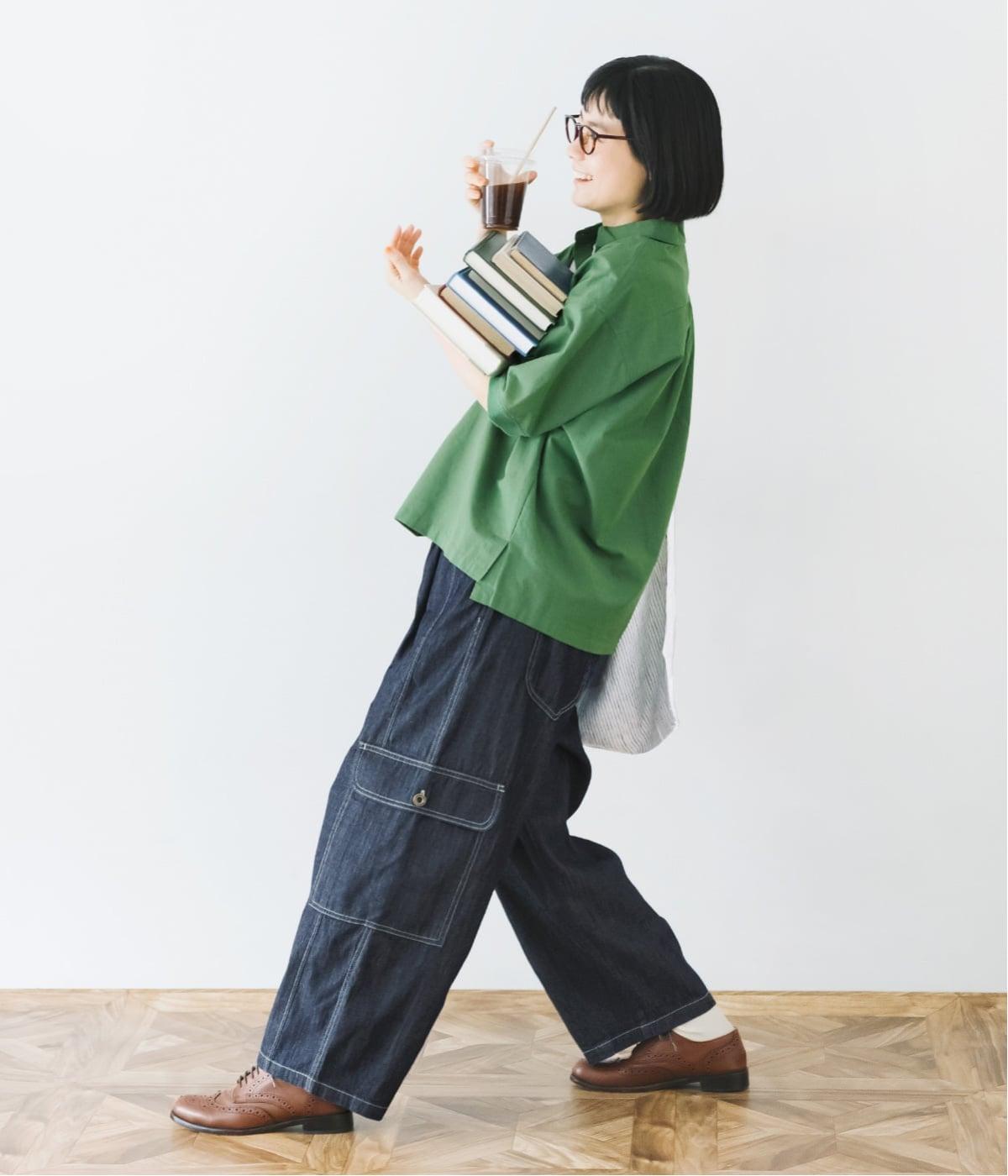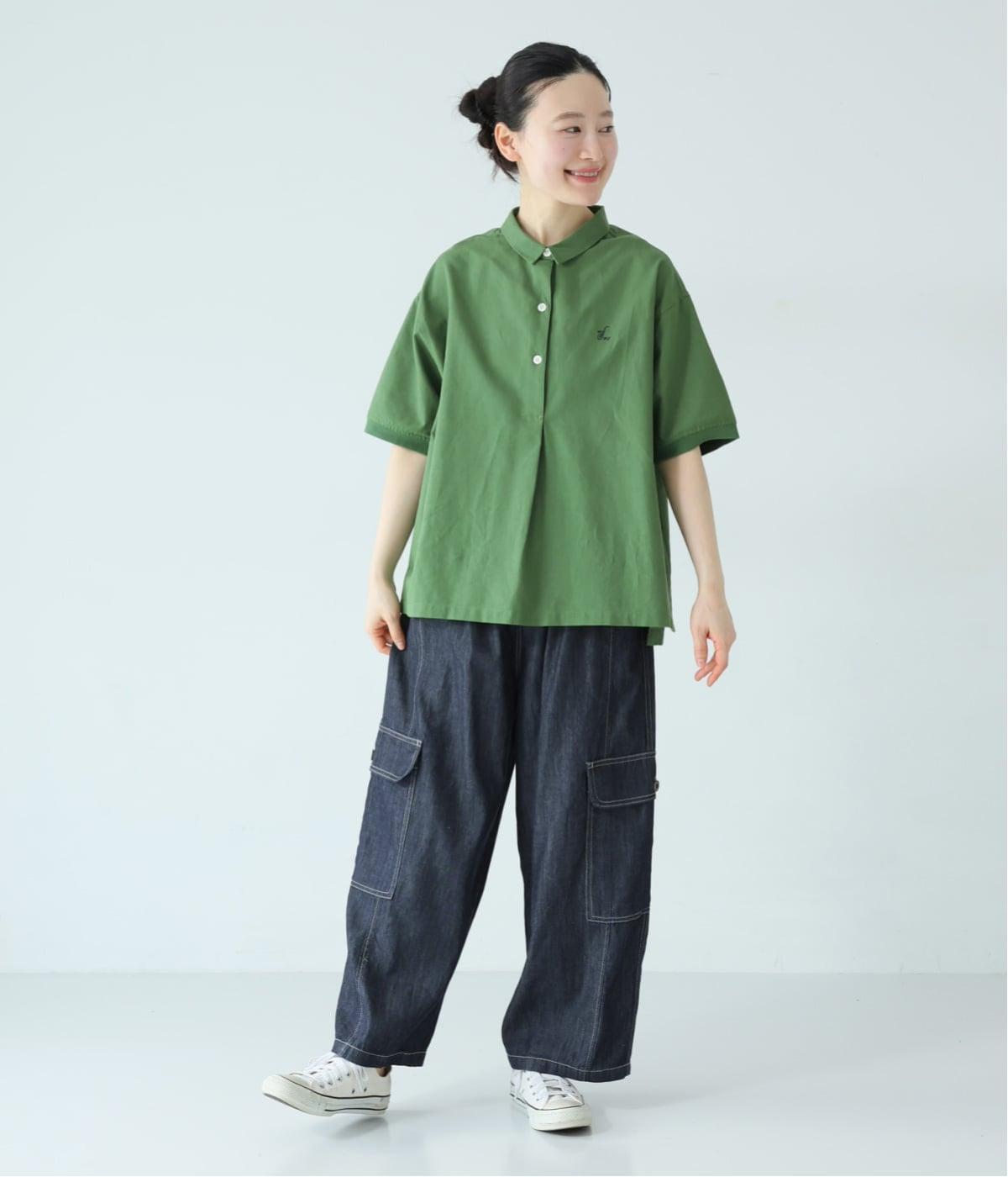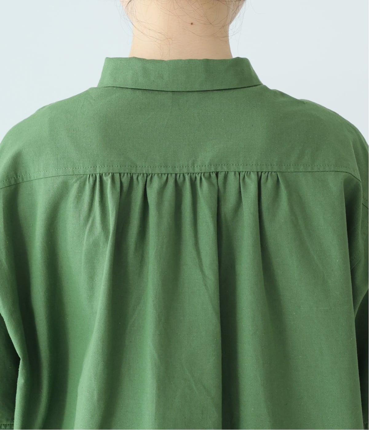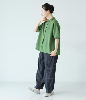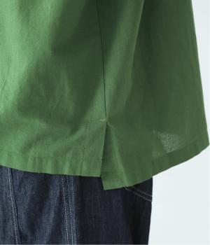 布帛生地ならではのほどよいハリをいかし、きれいめな表情に仕上げました。表面にはネップのあるナチュラルな風合いもあり、コットンリネンらしい素朴さも魅力。着るほどにやわらかくなじむ、風合いの変化もたのしめます。