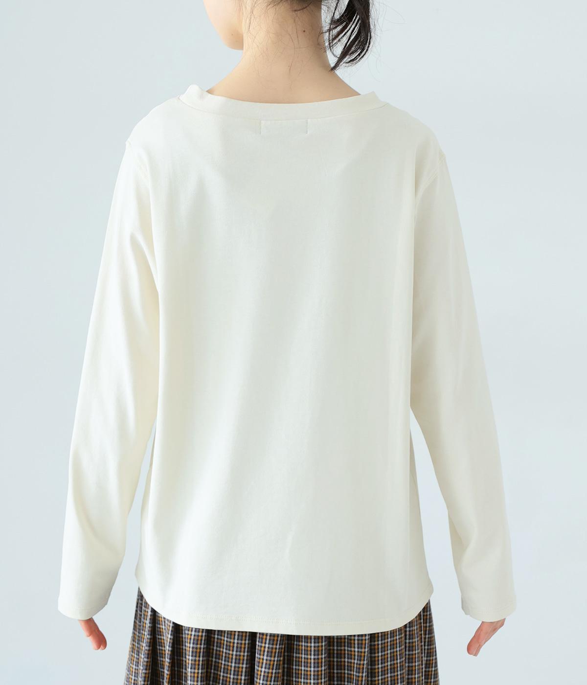 肌にまとわりつかないさらりとした滑らかな質感で、心地よい着用感を叶えるコットン生地。一枚着はもちろん、インナーとしても活用しやすい丁度良い厚みが◎です。