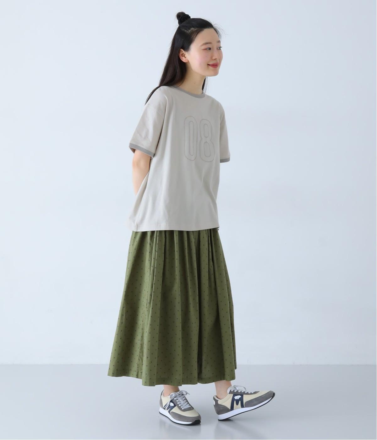 大きなナンバリングステッチをフロントにあしらったデザインTシャツです。本体カラーと襟ぐりのリブを配色にすることで、シンプルなデザインにアクセントを添えました。裾にはサイクリングをイメージしたオリジナルワッペンをあしらい、アウトドアの雰囲気をさりげなく取り入れています。