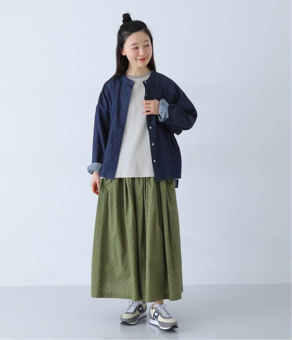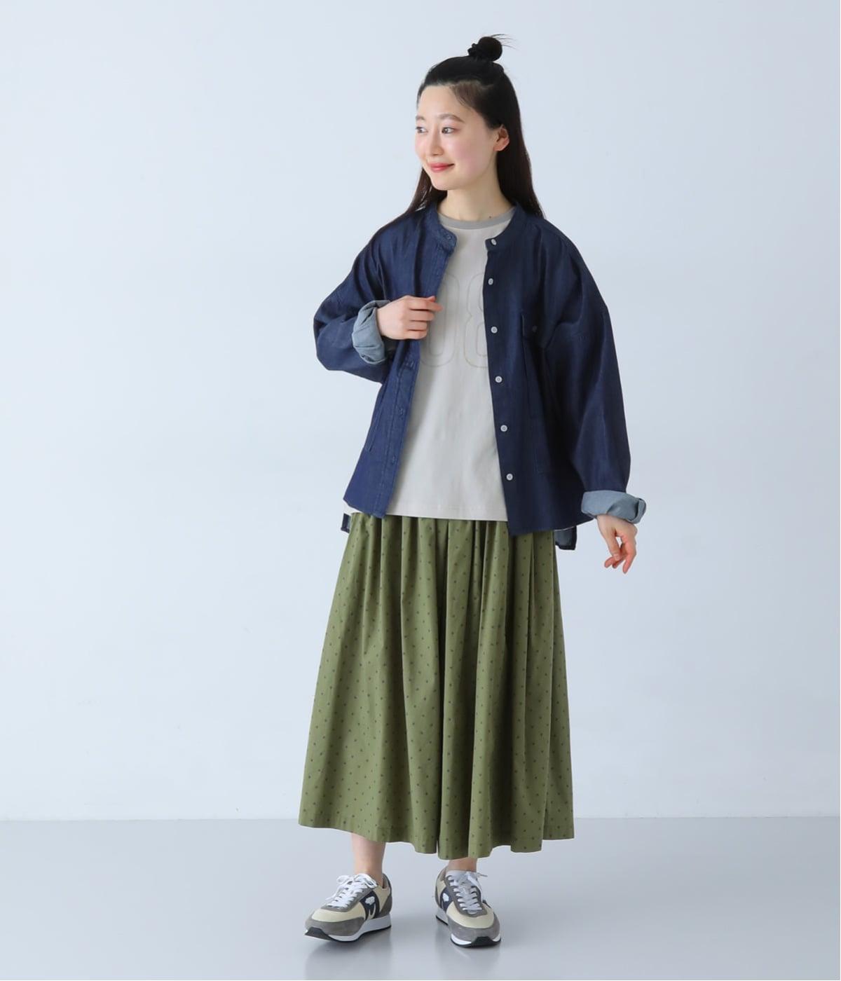 やや薄手のコットン生地を、しなやかな風合いに仕上げました。肌になじむやさしい着心地で、なめらかな表面感が落ち着いた印象を添えます。ロングシーズン取り入れやすい生地感です。