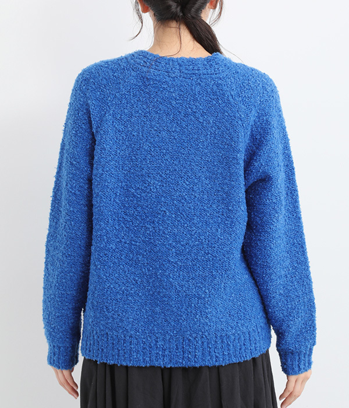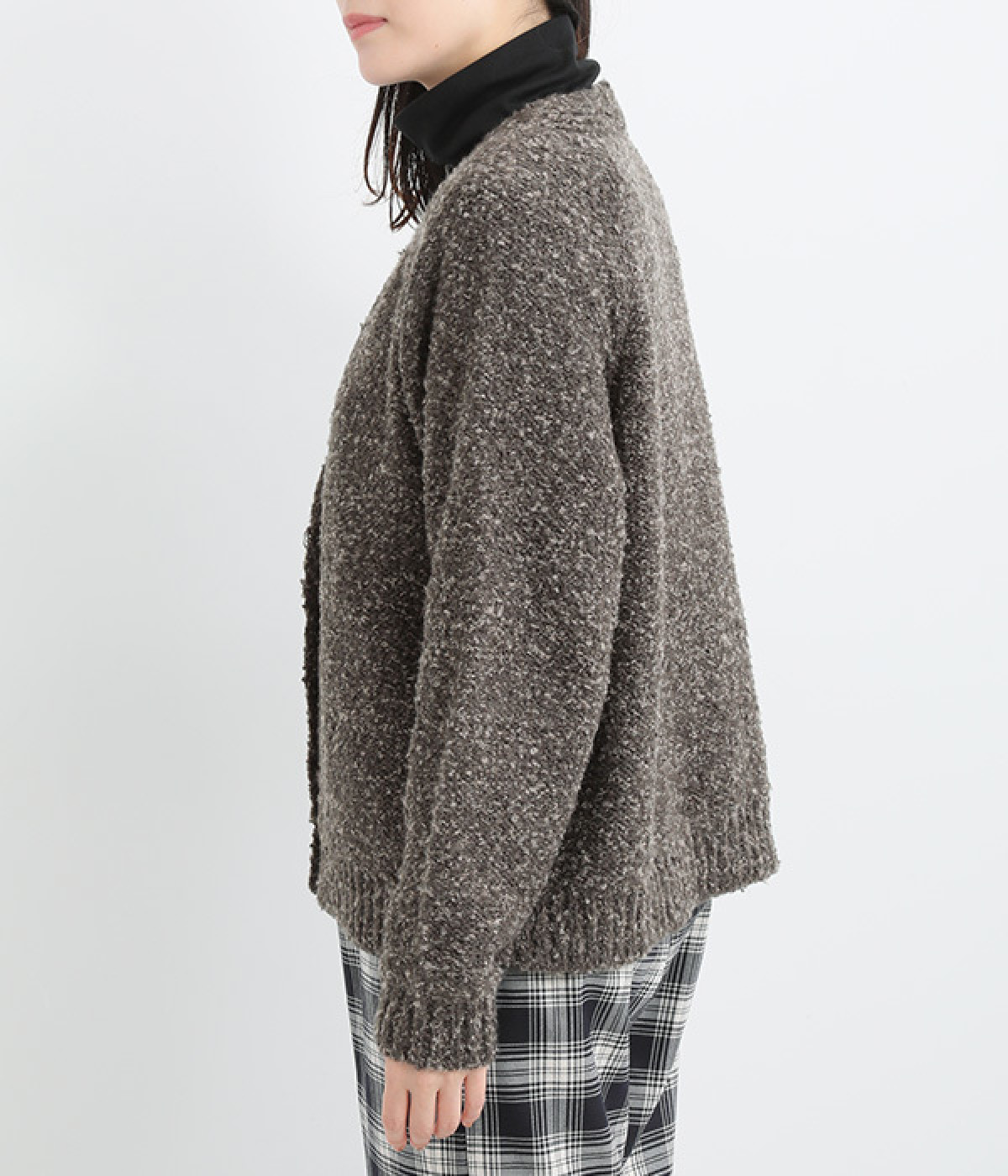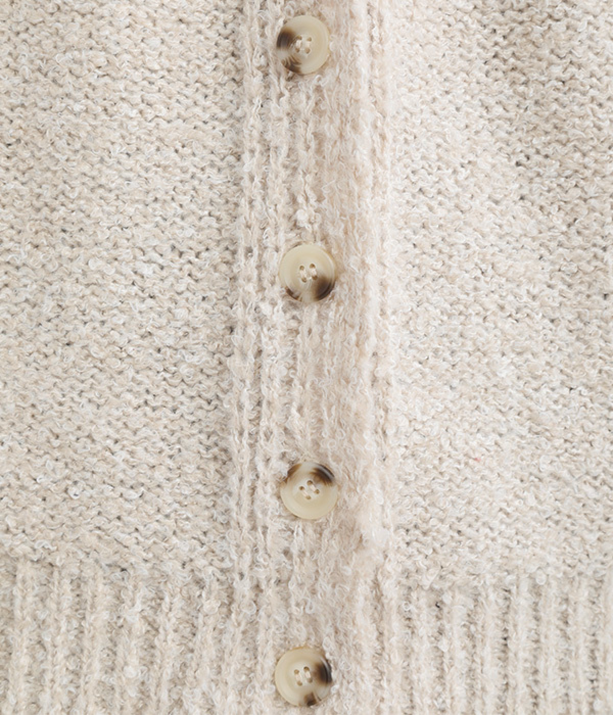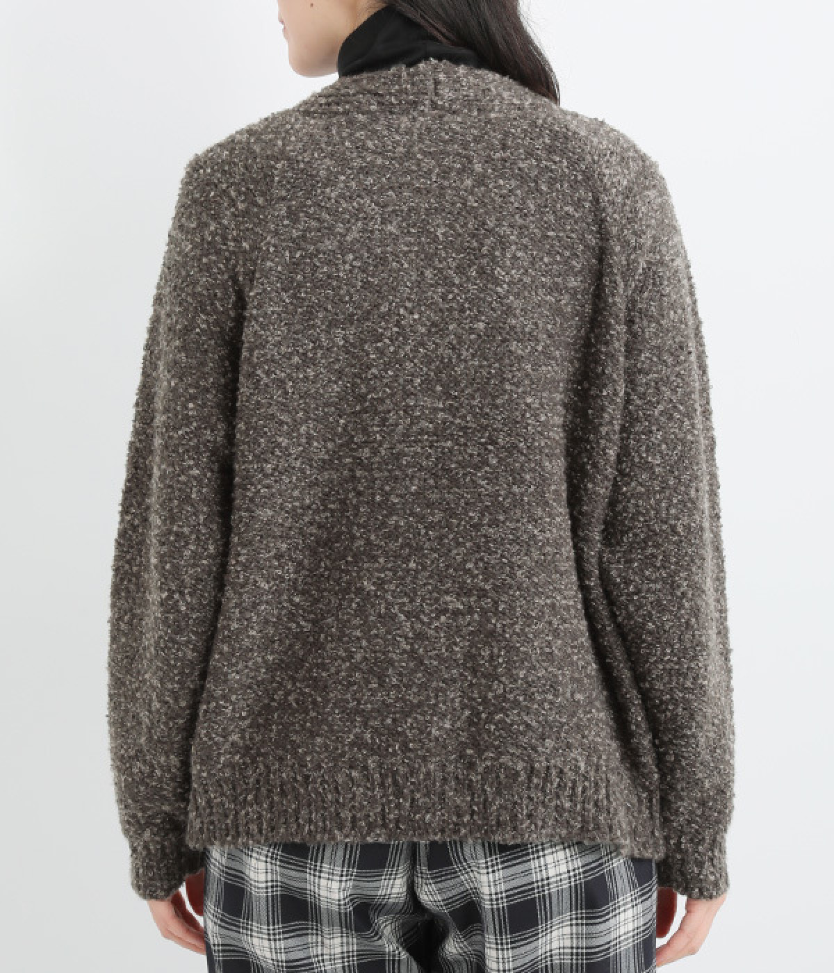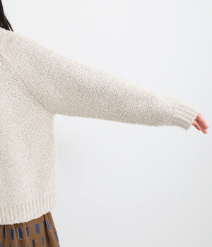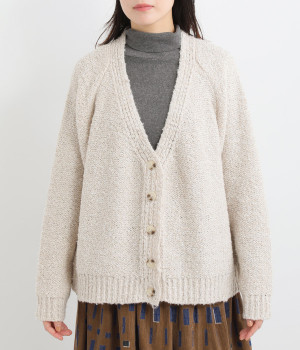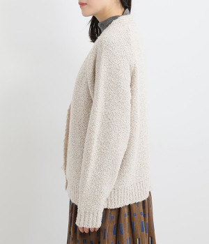 もこもこした起毛感のあるブークレーヤーンを使用