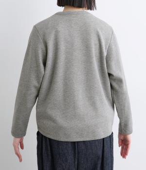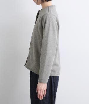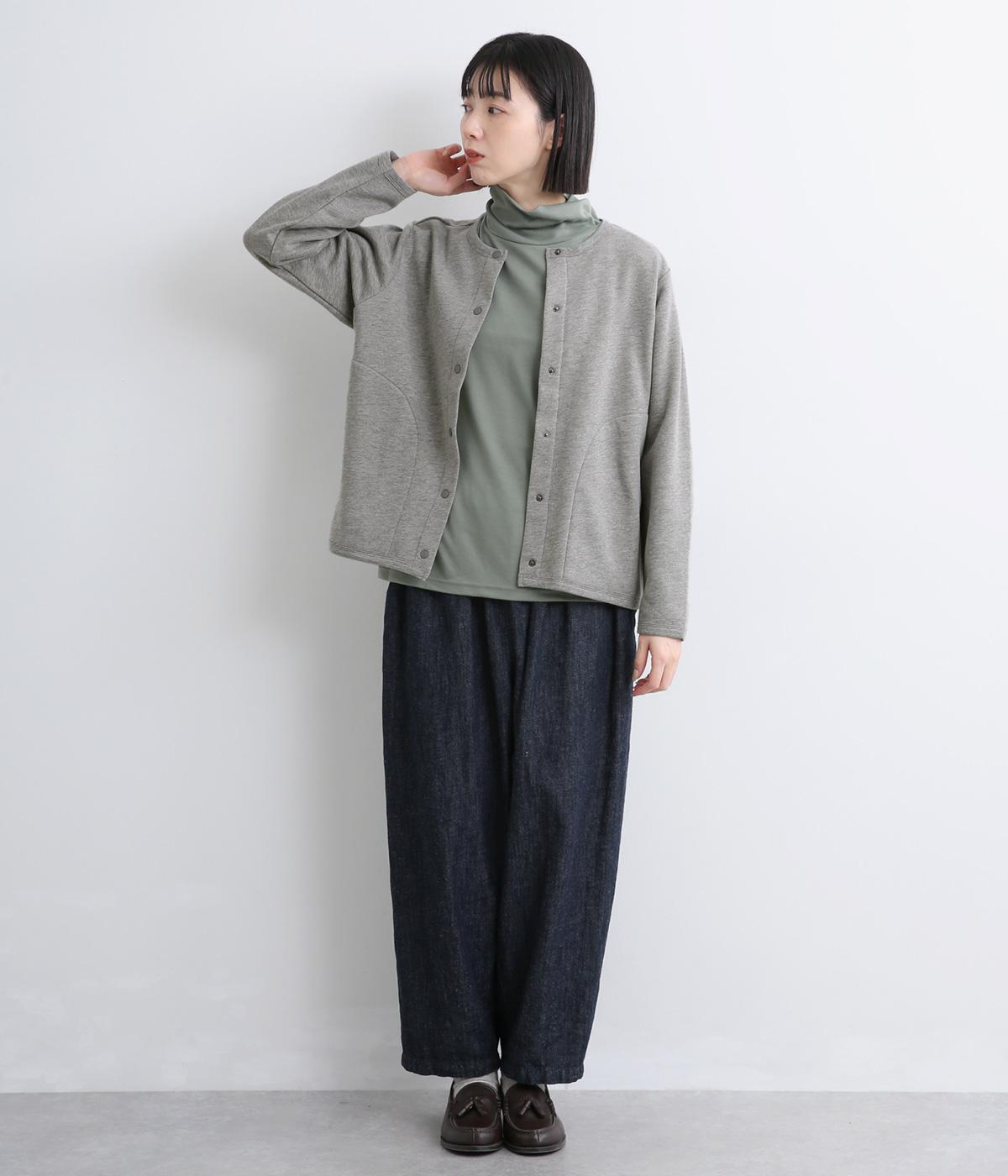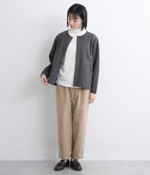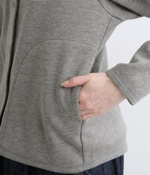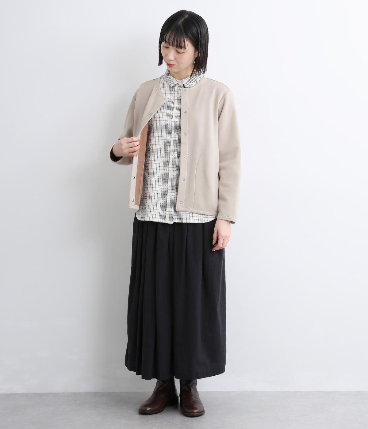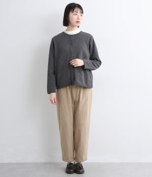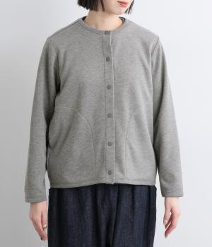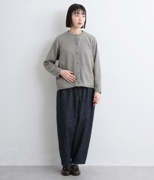 もちっとしたほどよい厚みのミックス生地に、フリース素材の裏地を合わせました。滑らかでやさしい肌ざわりの表面感でデイリーに扱いやすい素材感です。