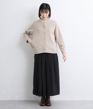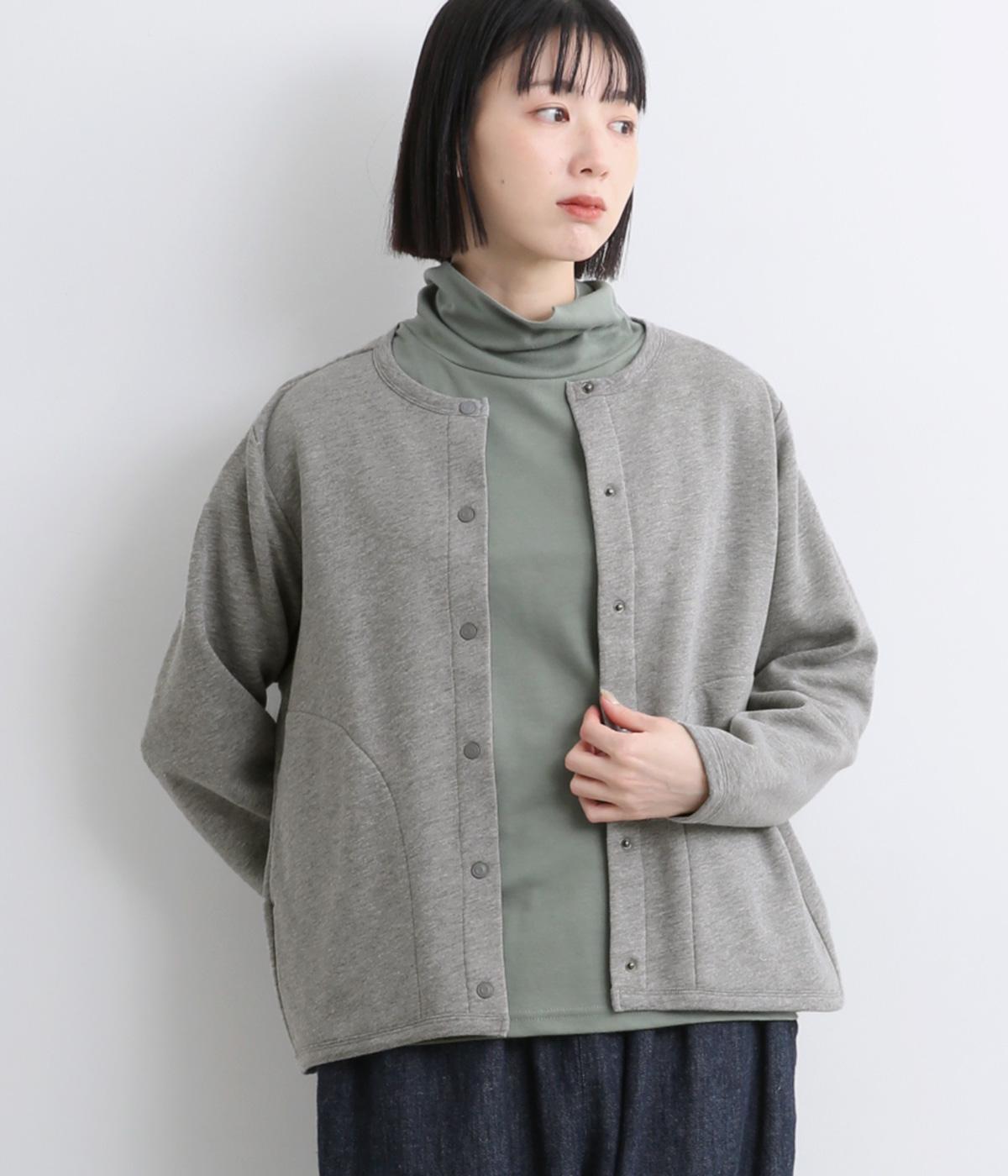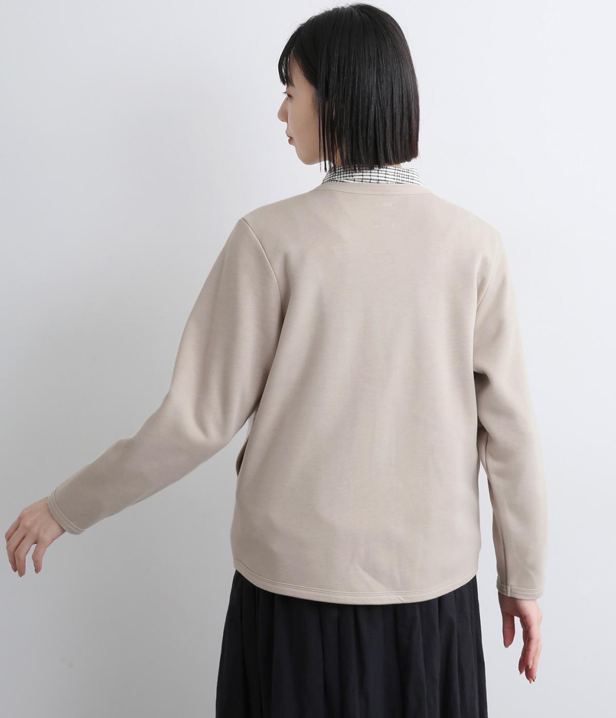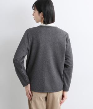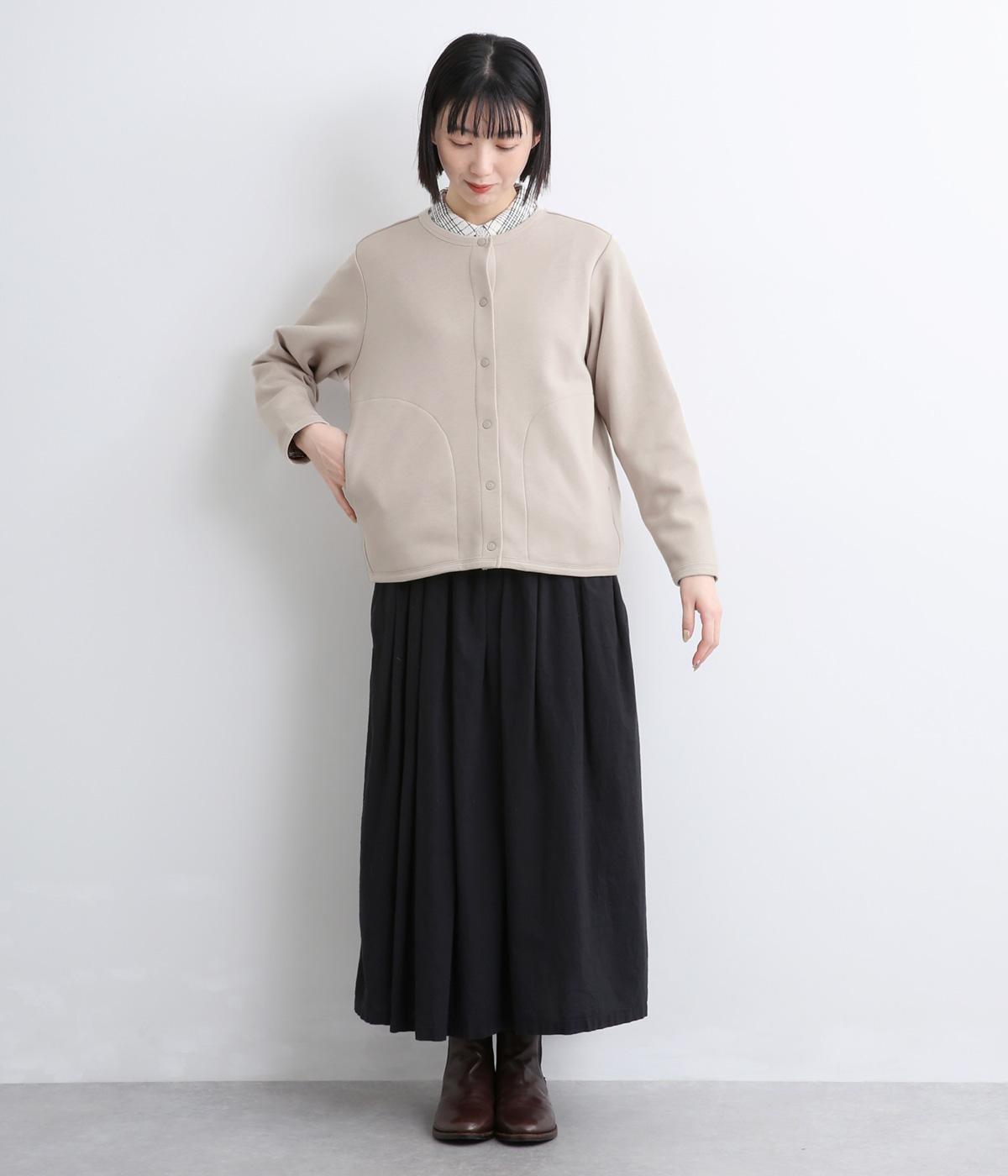 もちっとしたほどよい厚みのミックス生地に、フリース素材の裏地を合わせました。滑らかでやさしい肌ざわりの表面感でデイリーに扱いやすい素材感です。