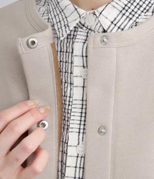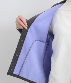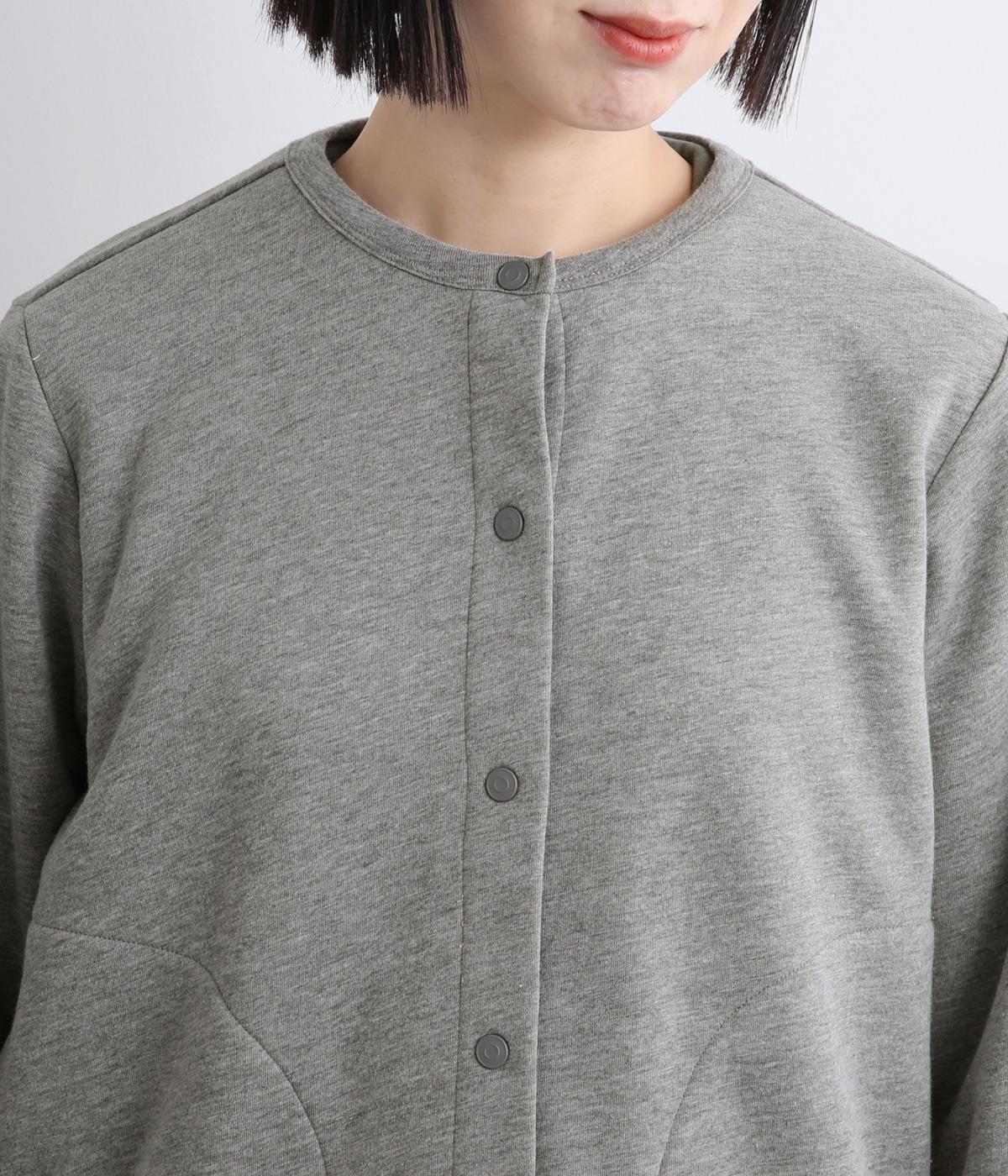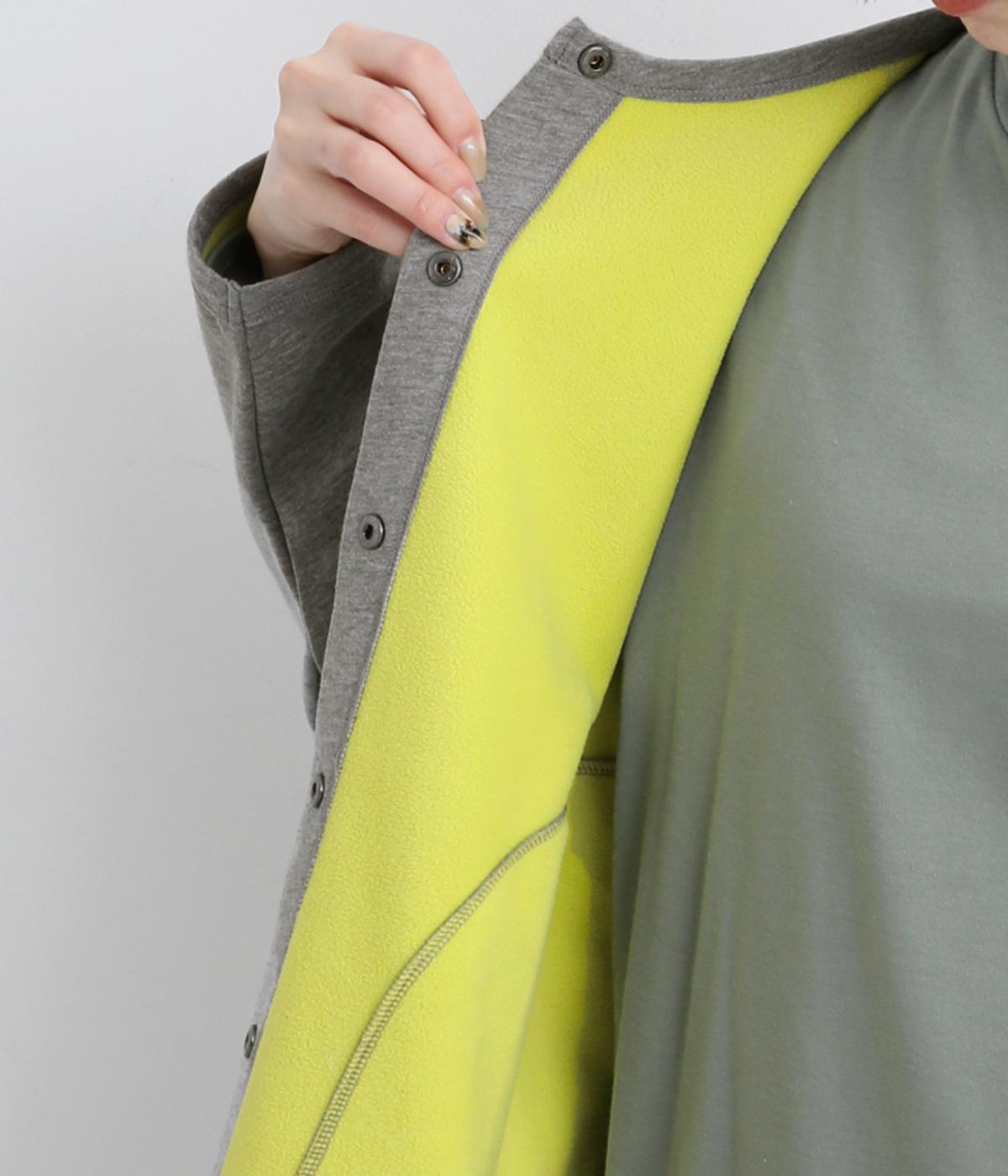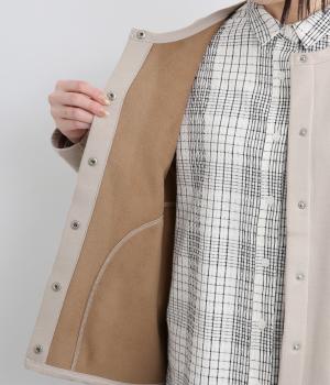フリースの裏地を配色で仕立てて、前開きで羽織るとちらりとのぞくアクセントに。曲線を描くポケットのステッチやスナップボタンがカジュアル感を添えています。さまざまなボトムスと合わせやすい丈感で仕上げました。