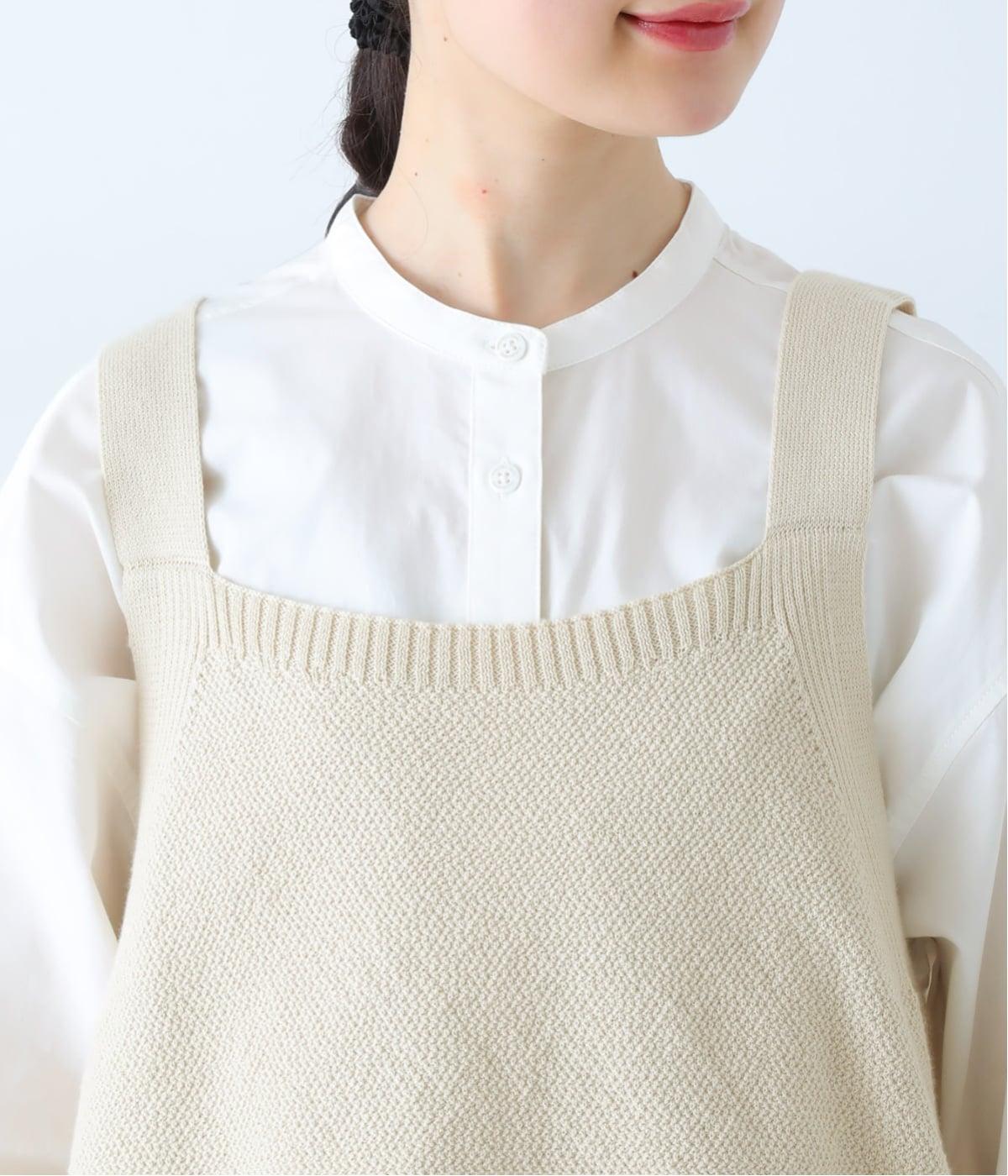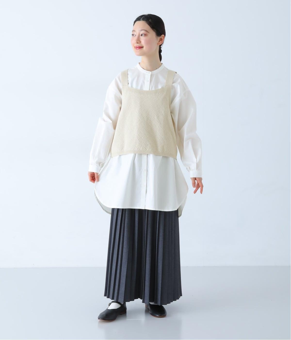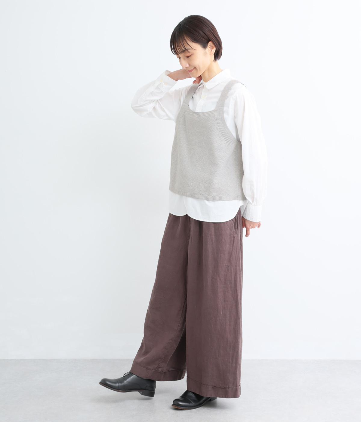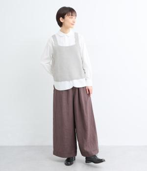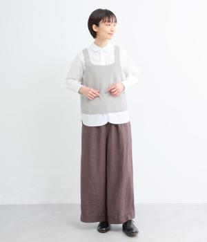 くったりとやわらかい、ポリエステルとコットンのミックス生地です。インナーとも重ねやすい、軽やかで伸縮性がある素材感です。ナチュラルな優しい風合いが魅力です。